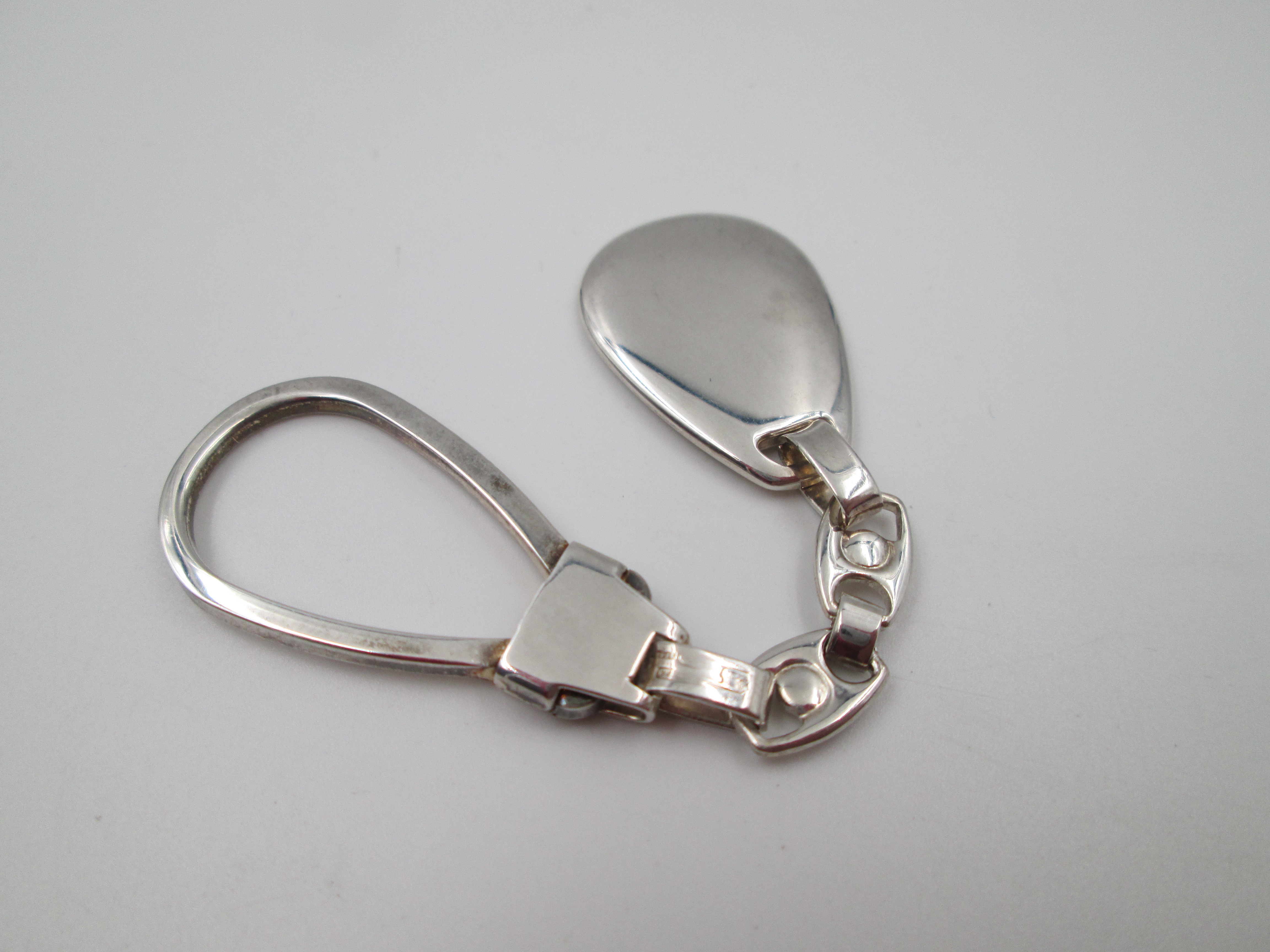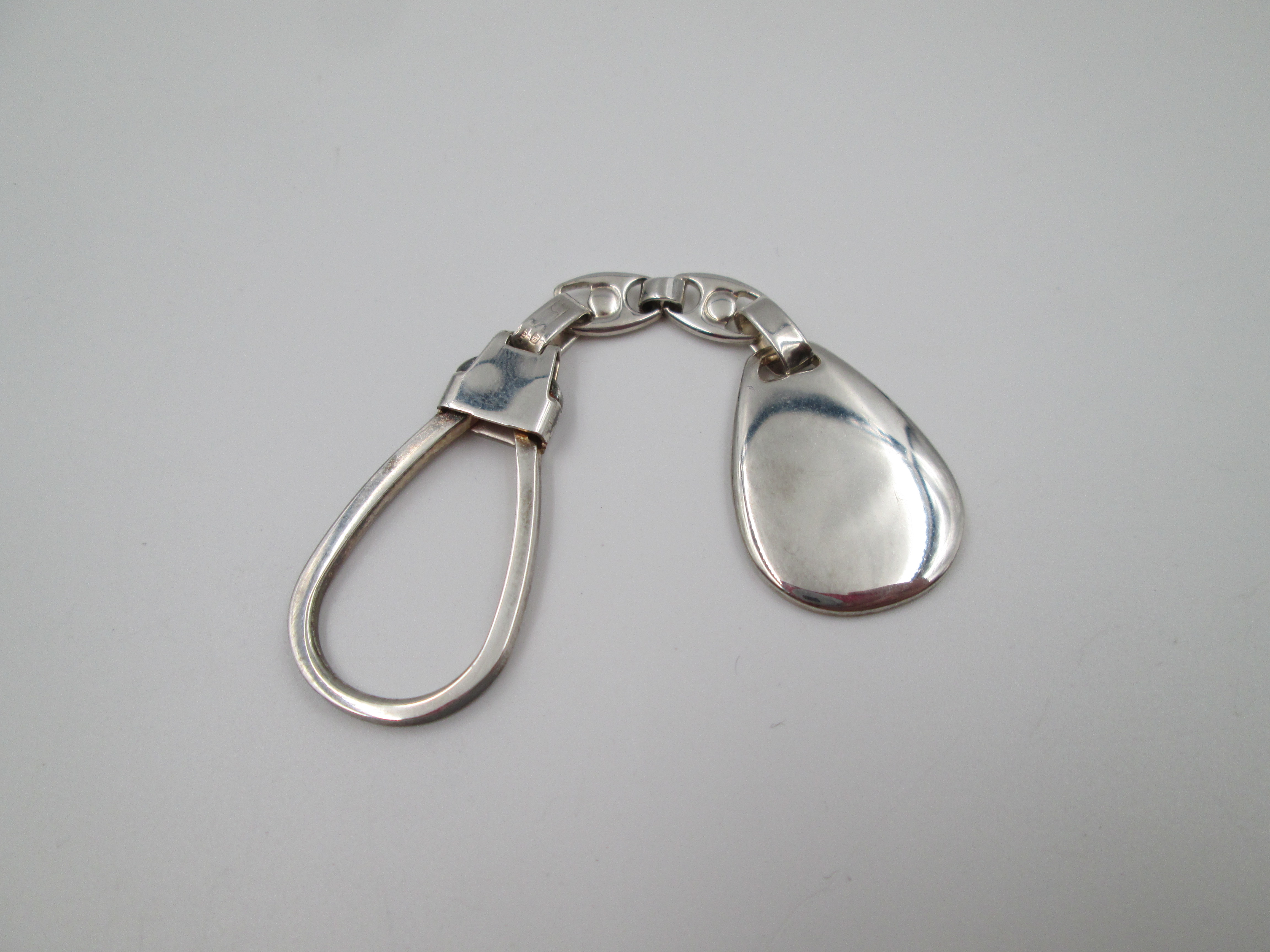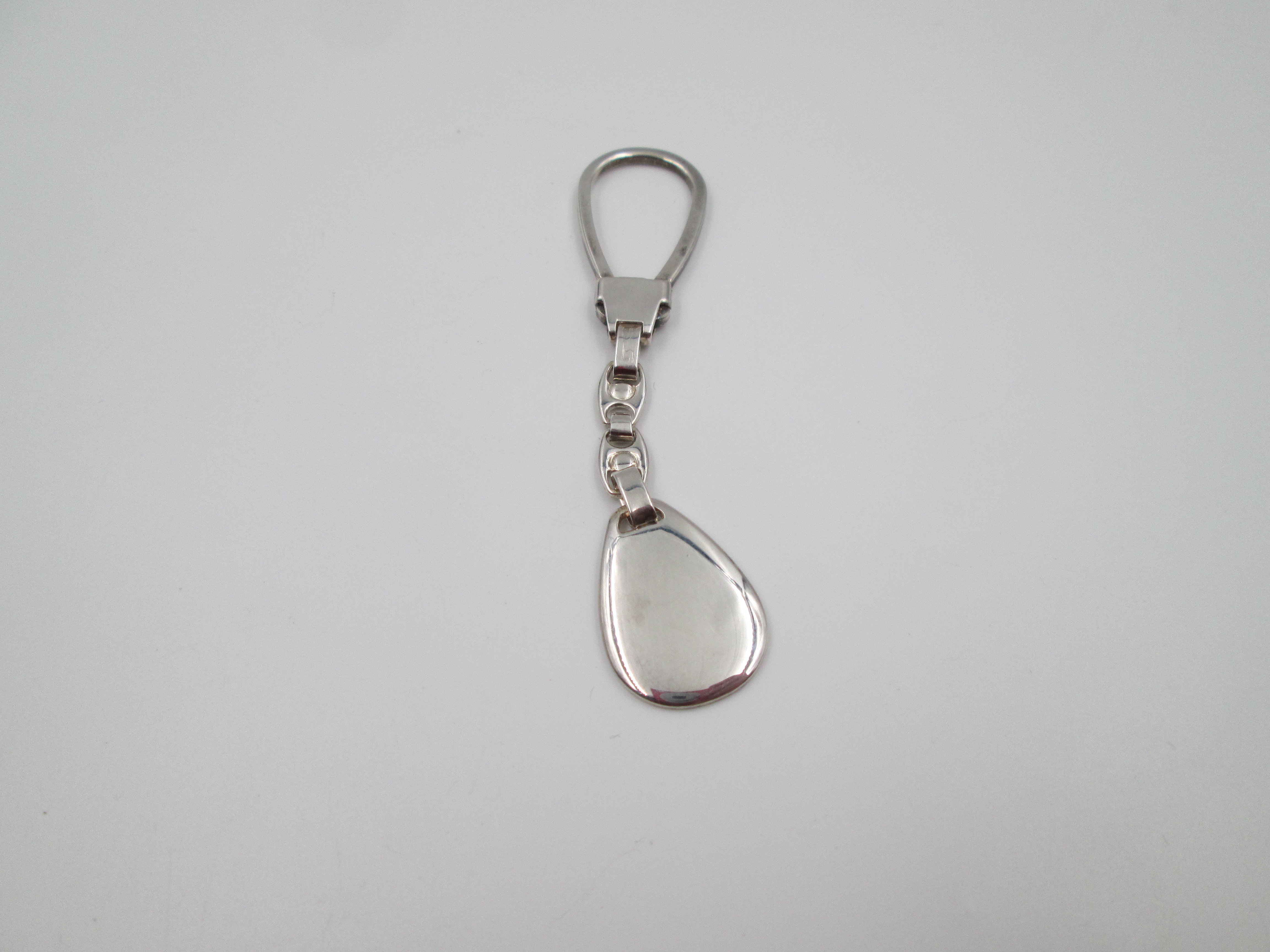 Llavero ovalado para caballero. Plata de ley 925. Placa grabar iniciales. Italia. 1990