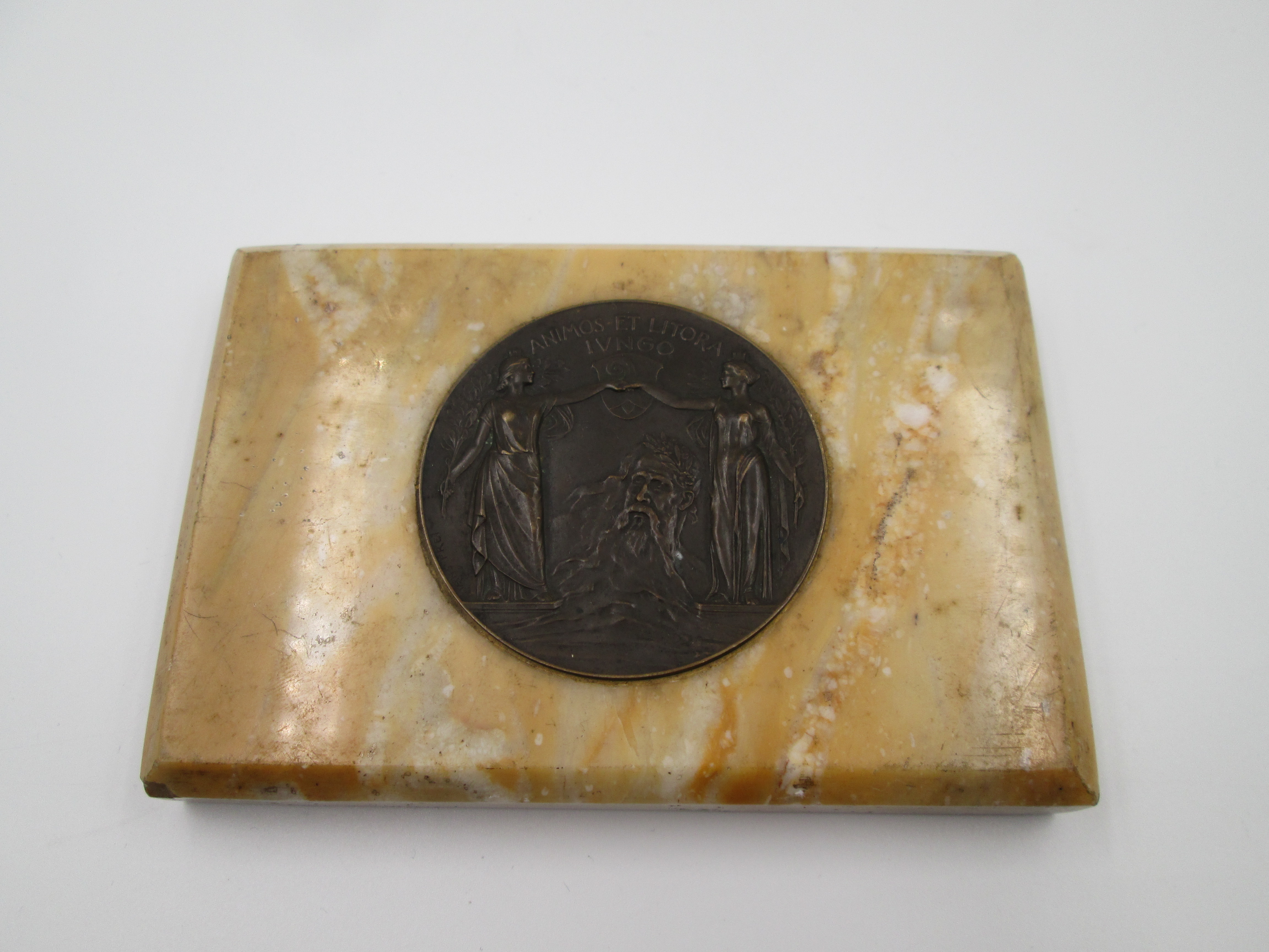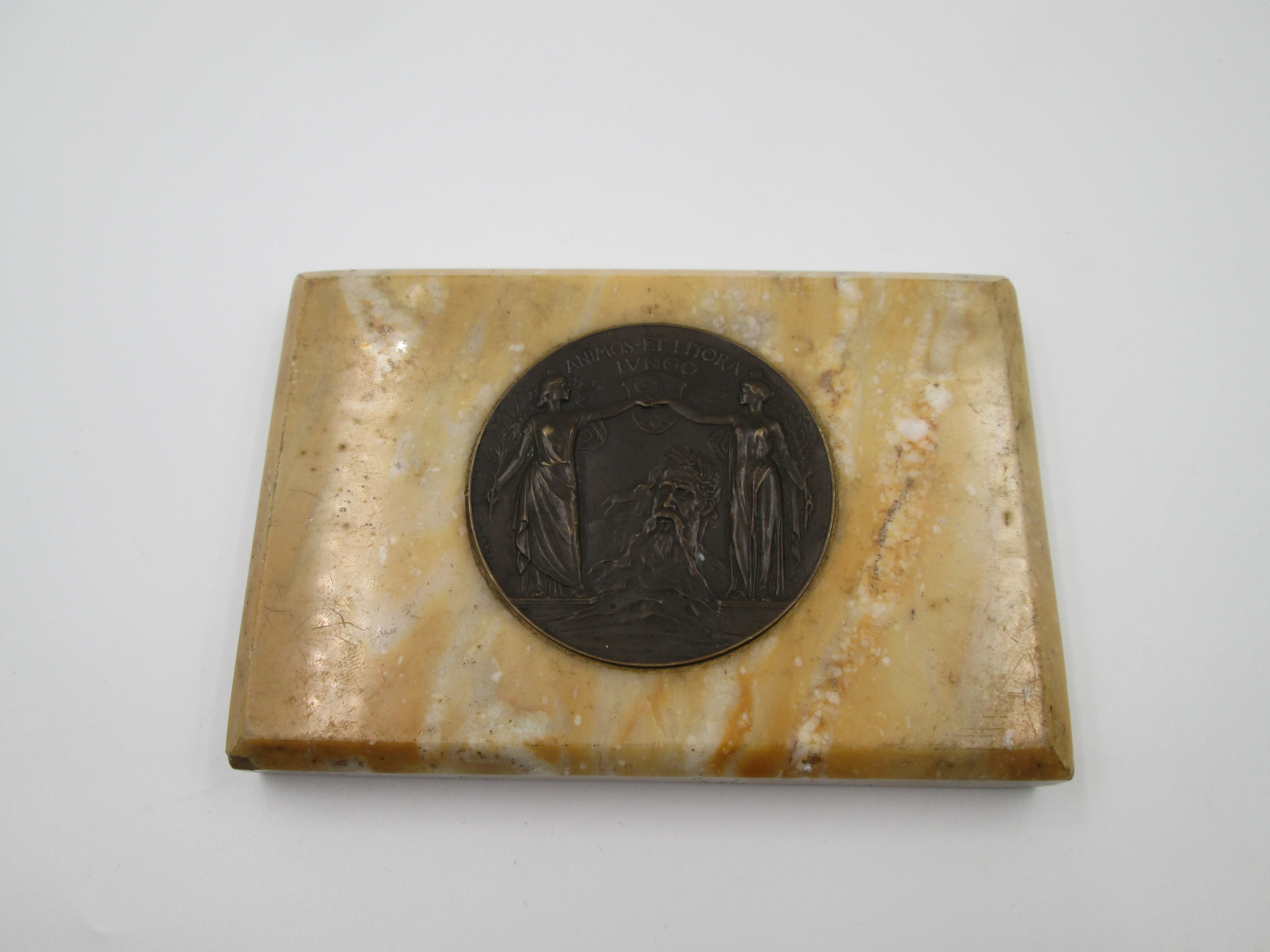 Medalla bronce inauguración puente de Basilea 1905. Base de mármol. Autor Hans Frei