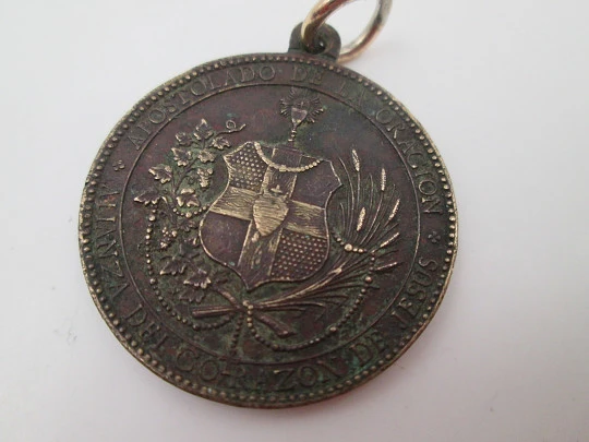 Medalla de bronce. Sagrado Corazón de Jesús. Ludovic Penin. Asa y argolla. 1880. Europa