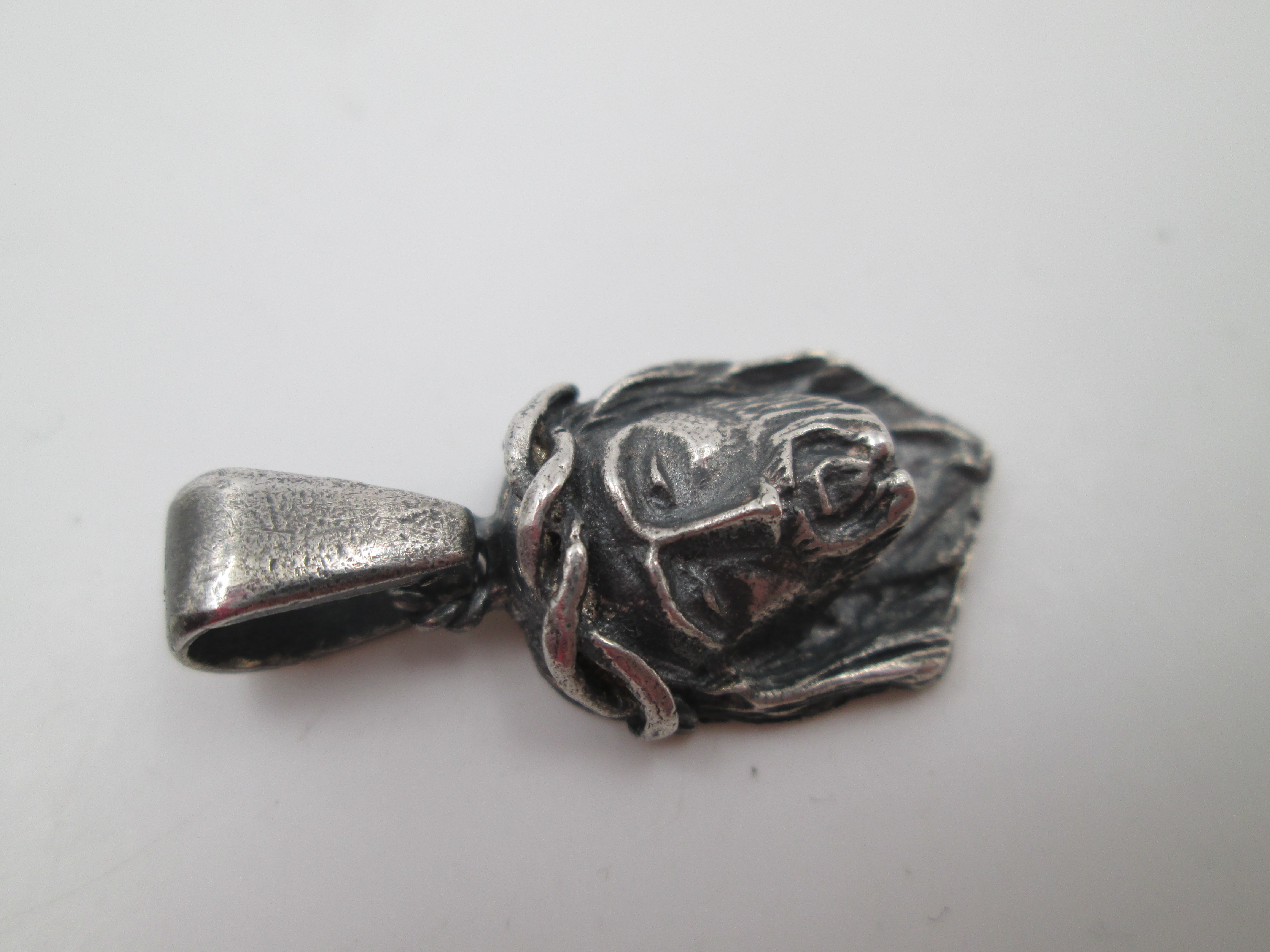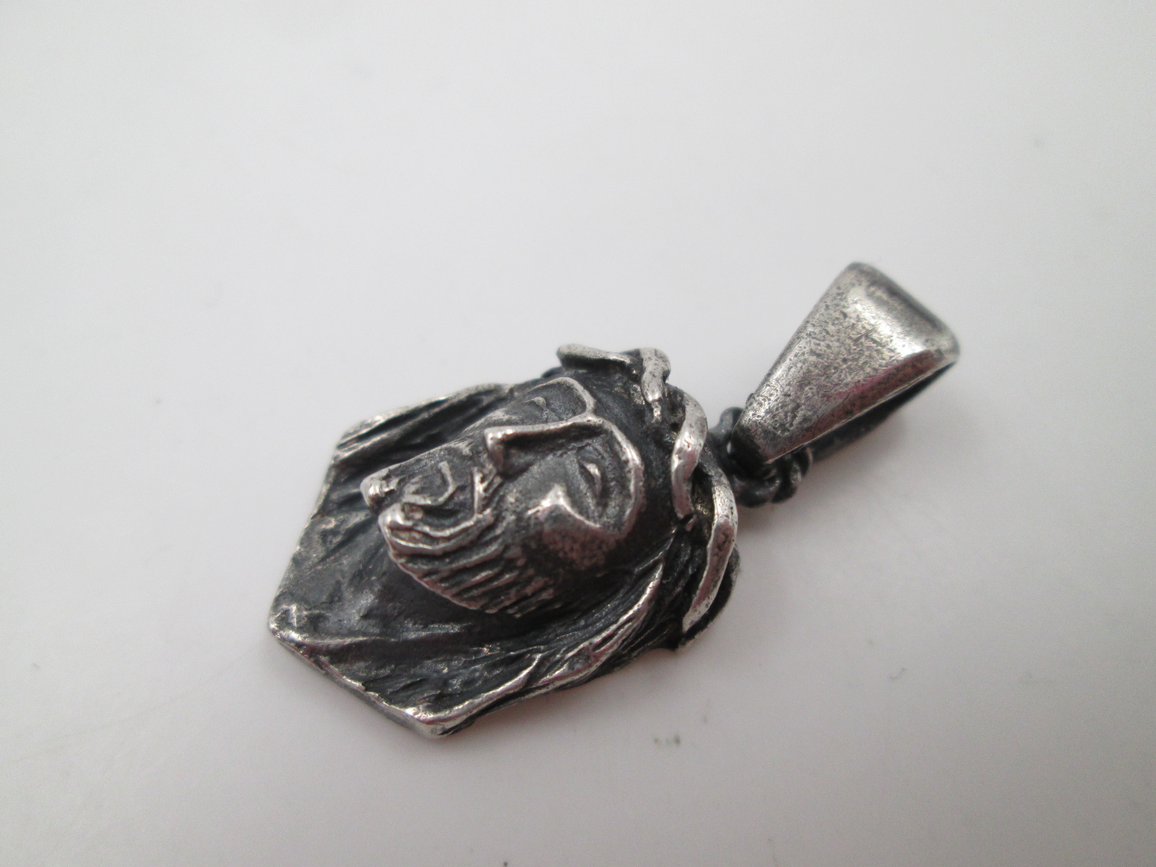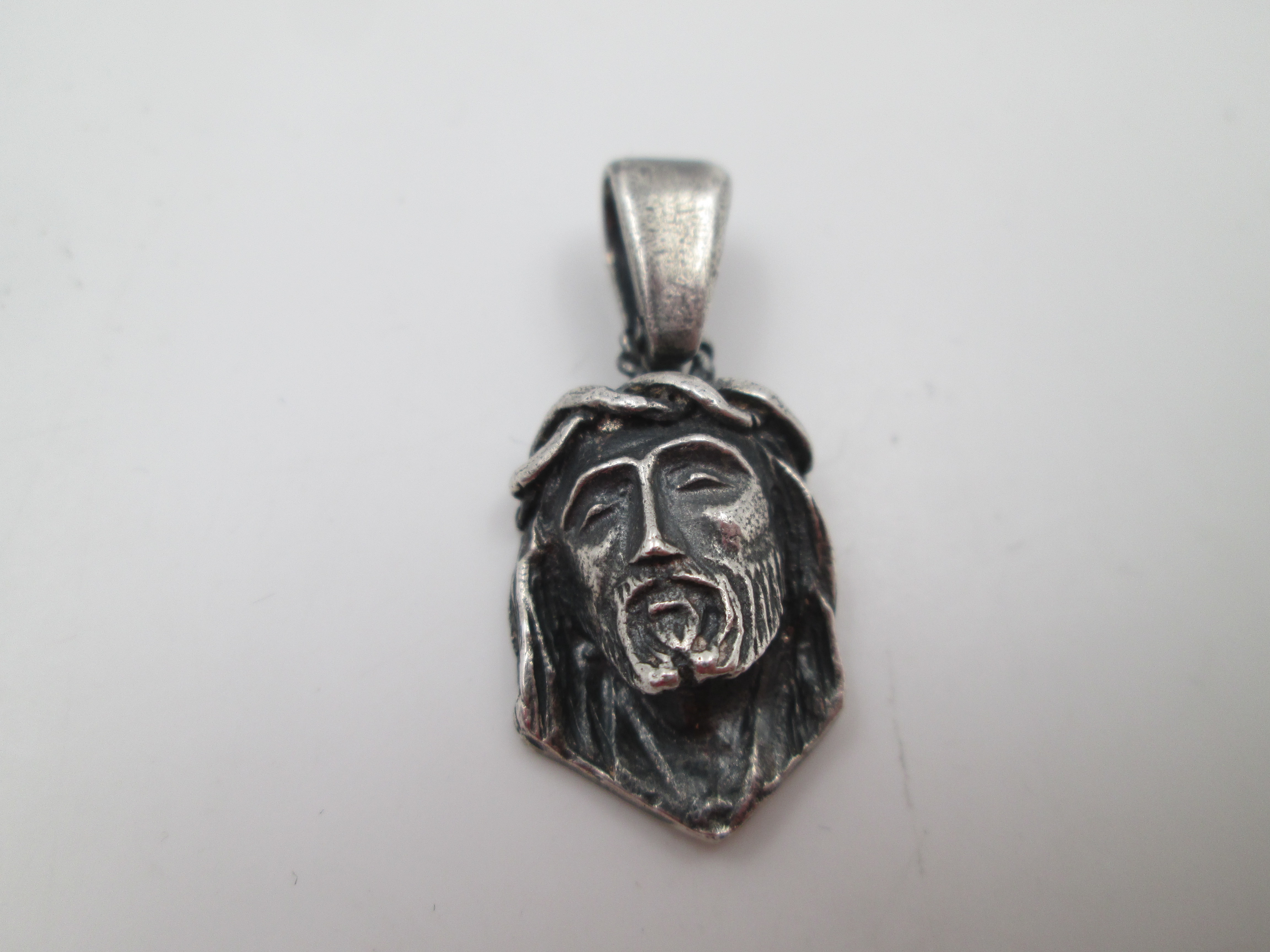 Medalla colgante busto Jesucristo con corona de espinas. Plata de ley. Argolla. 1960