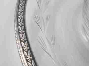 Mermeladero francés con cuchara. Plata de ley y cristal tallado. Años 30