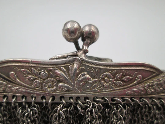 Monedero / limosnera malla plata 800. Boquilla rectangular. Flores y hojas. 1930