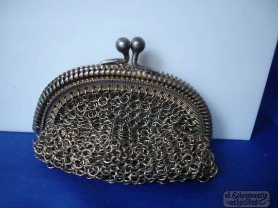 Monedero malla. Plata 800 vermeil. Doble. 1920. Cierre bolas. Francia