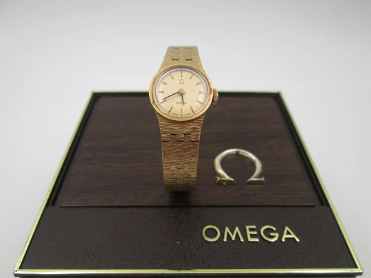 Omega mujer. Chapado oro y acero. Cuerda manual. Brazalete. Estuche. 1970