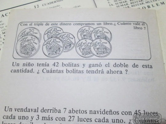 Colección de once cuadernos de problemas y operaciones escolares publicados en el año 1977.
