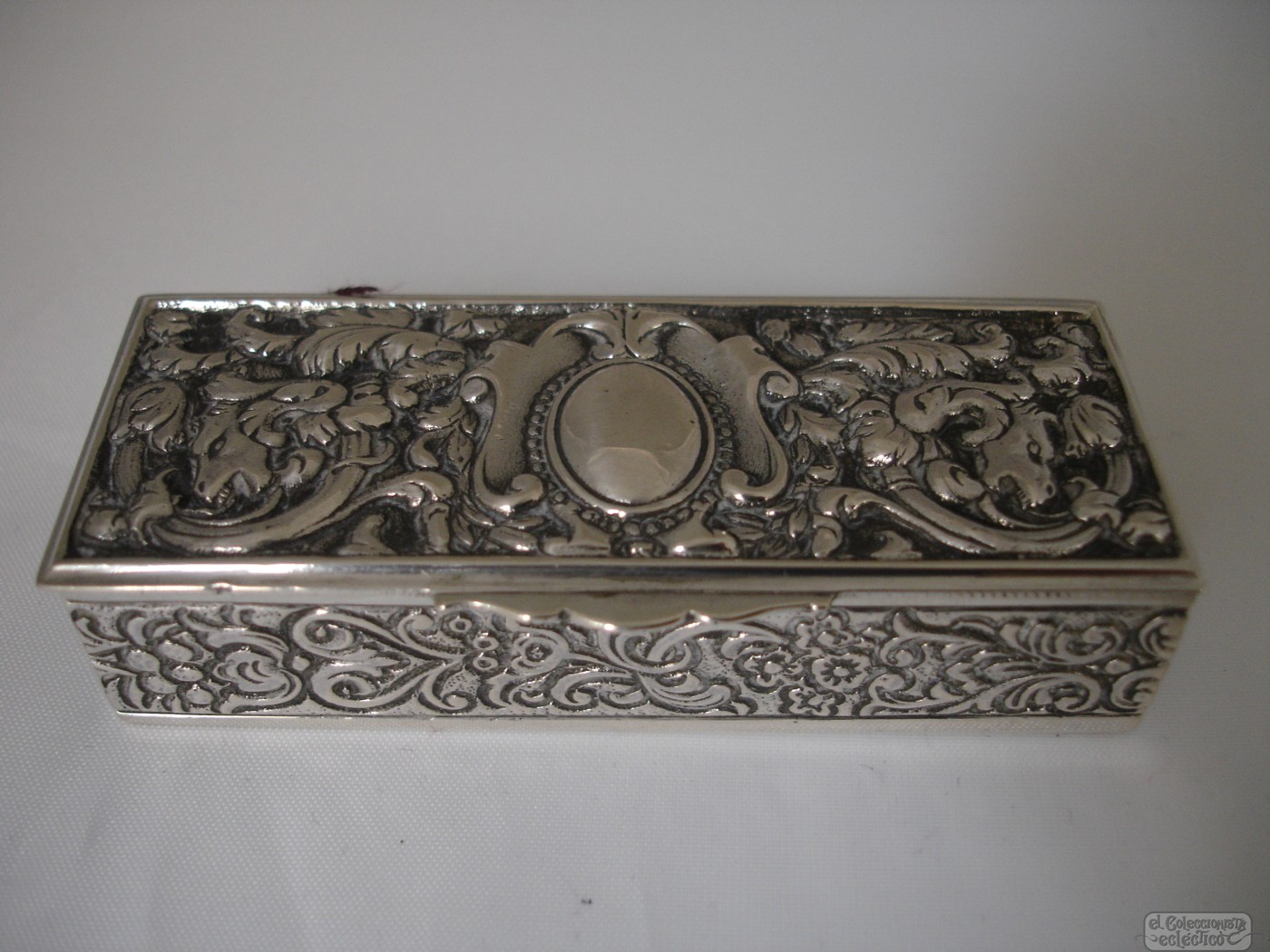 La unidad, realizada en plata de ley contrastada con el interior rematado en vermeil, tiene forma rectangular y lleva todas sus caras ornamentadas excepto la base que viene lisa.