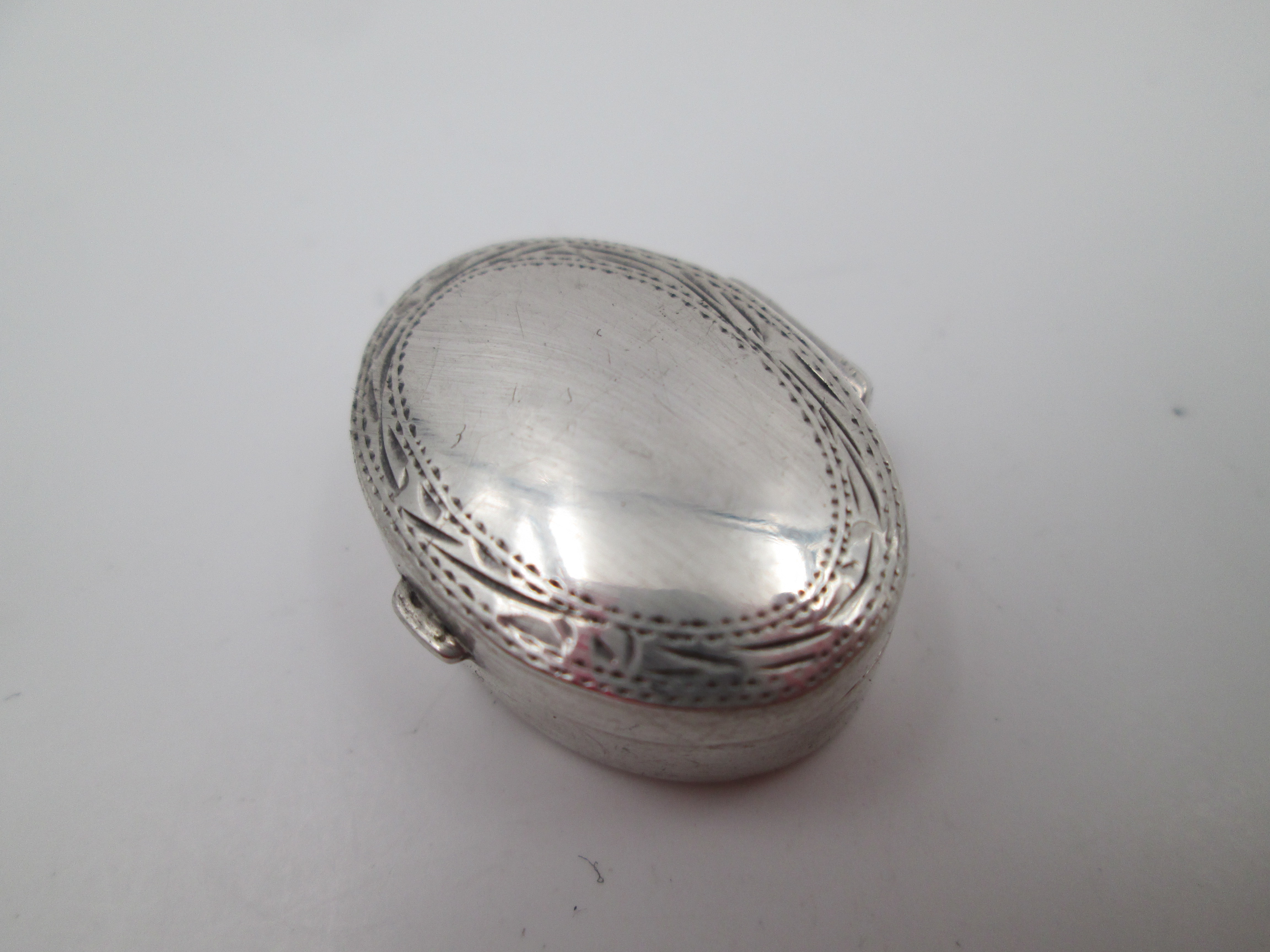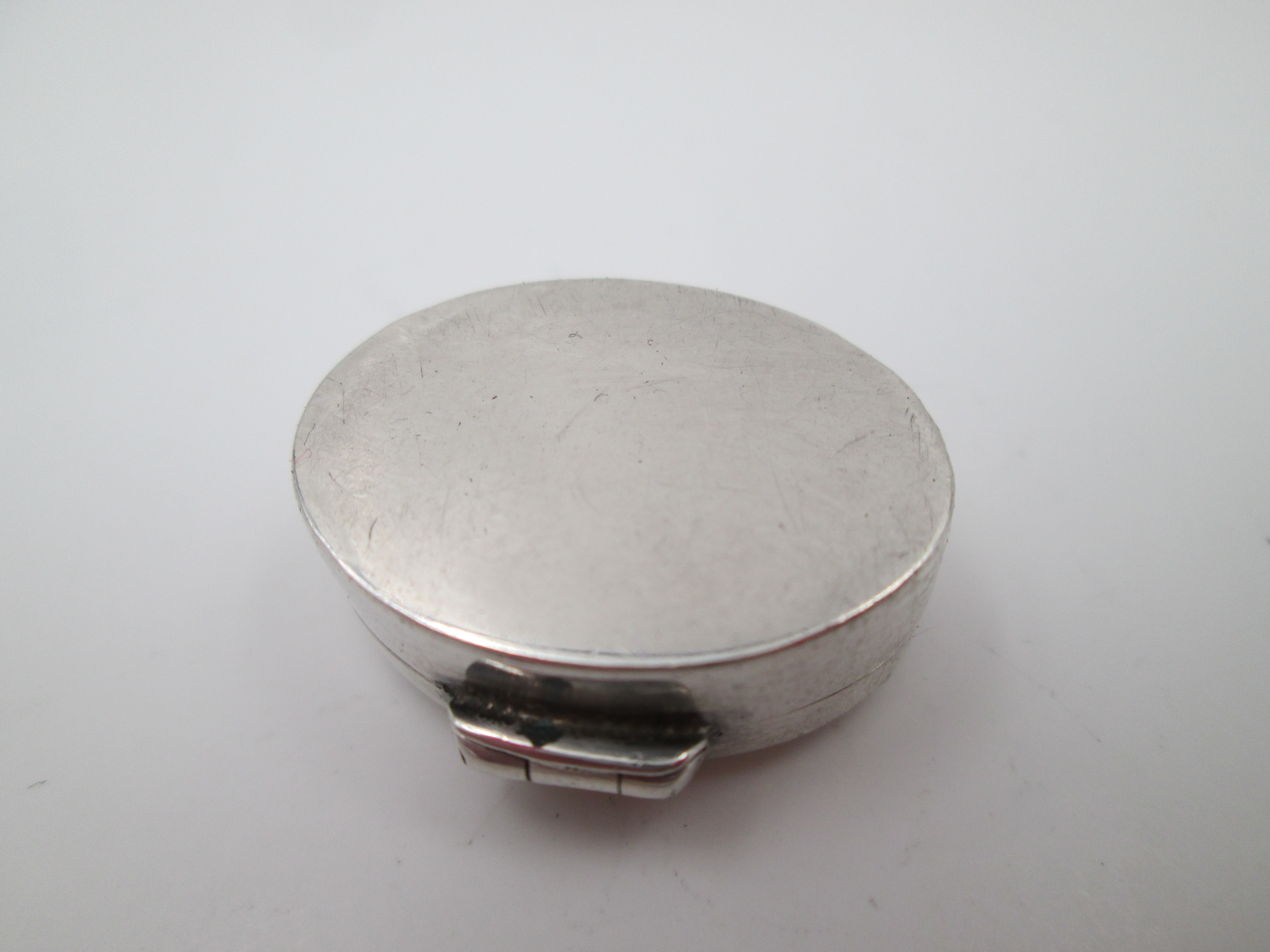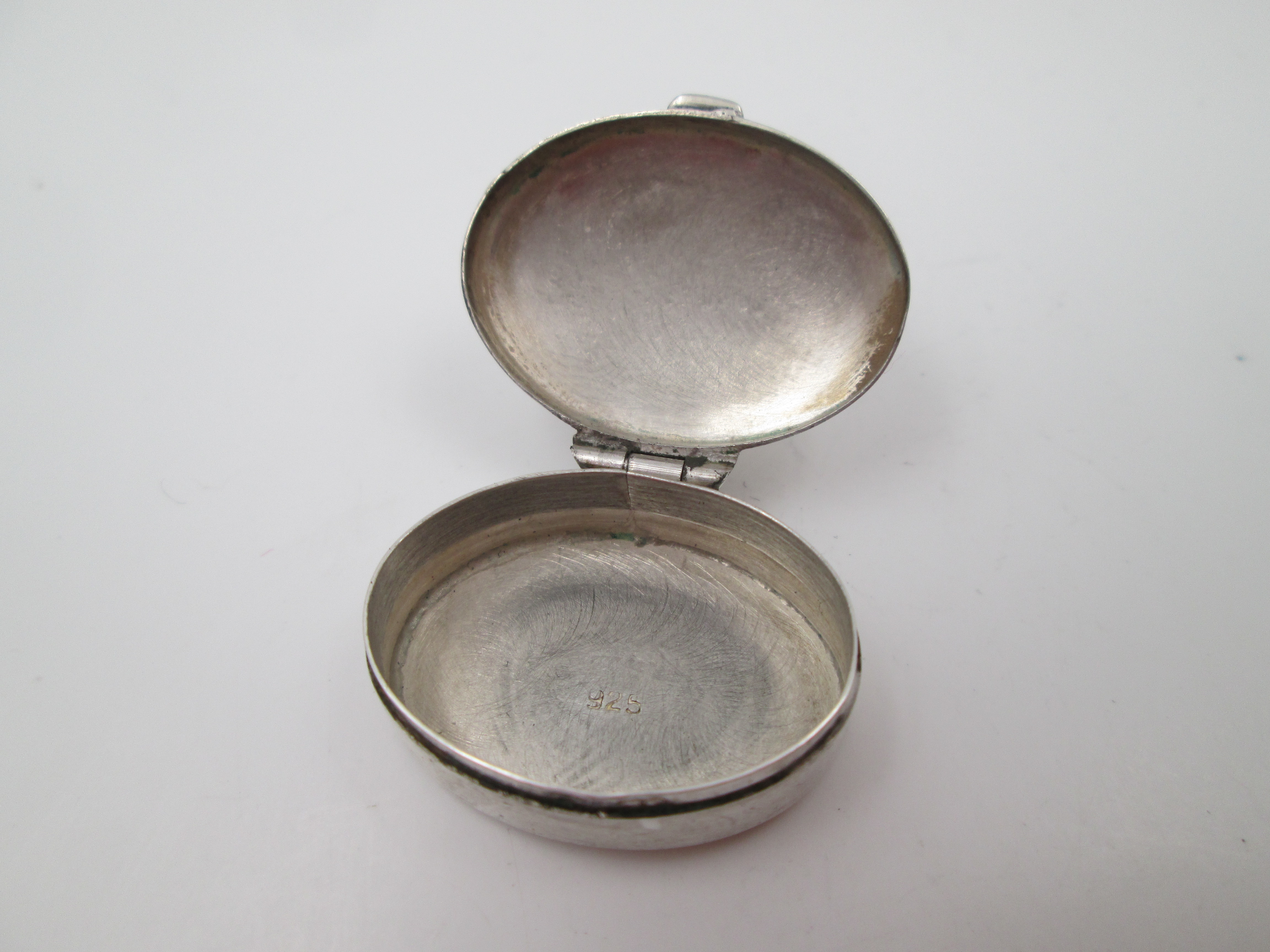 Pequeño pastillero oval en plata de ley 925. Motivos vegetales. Cierre a presión. 1980