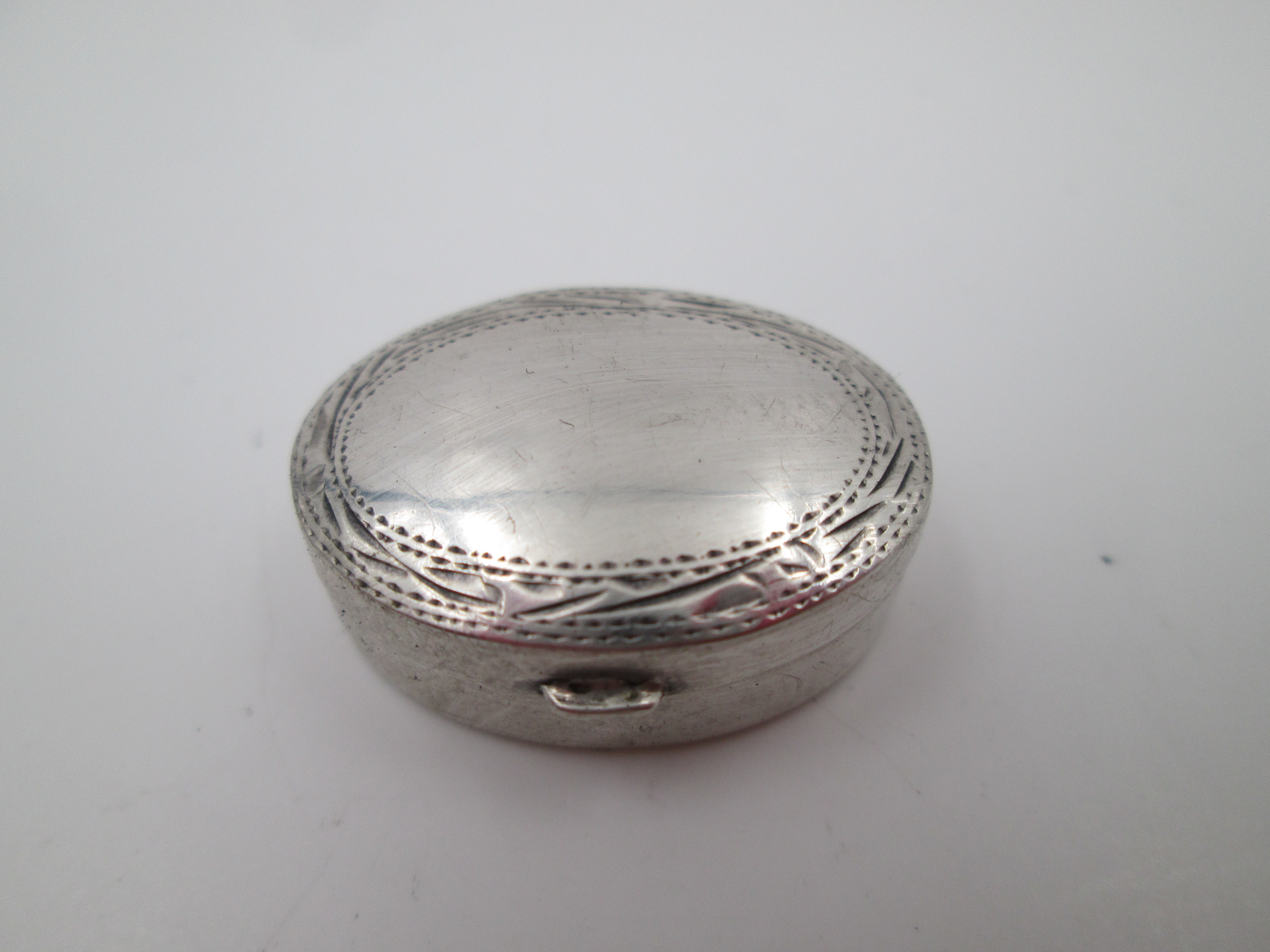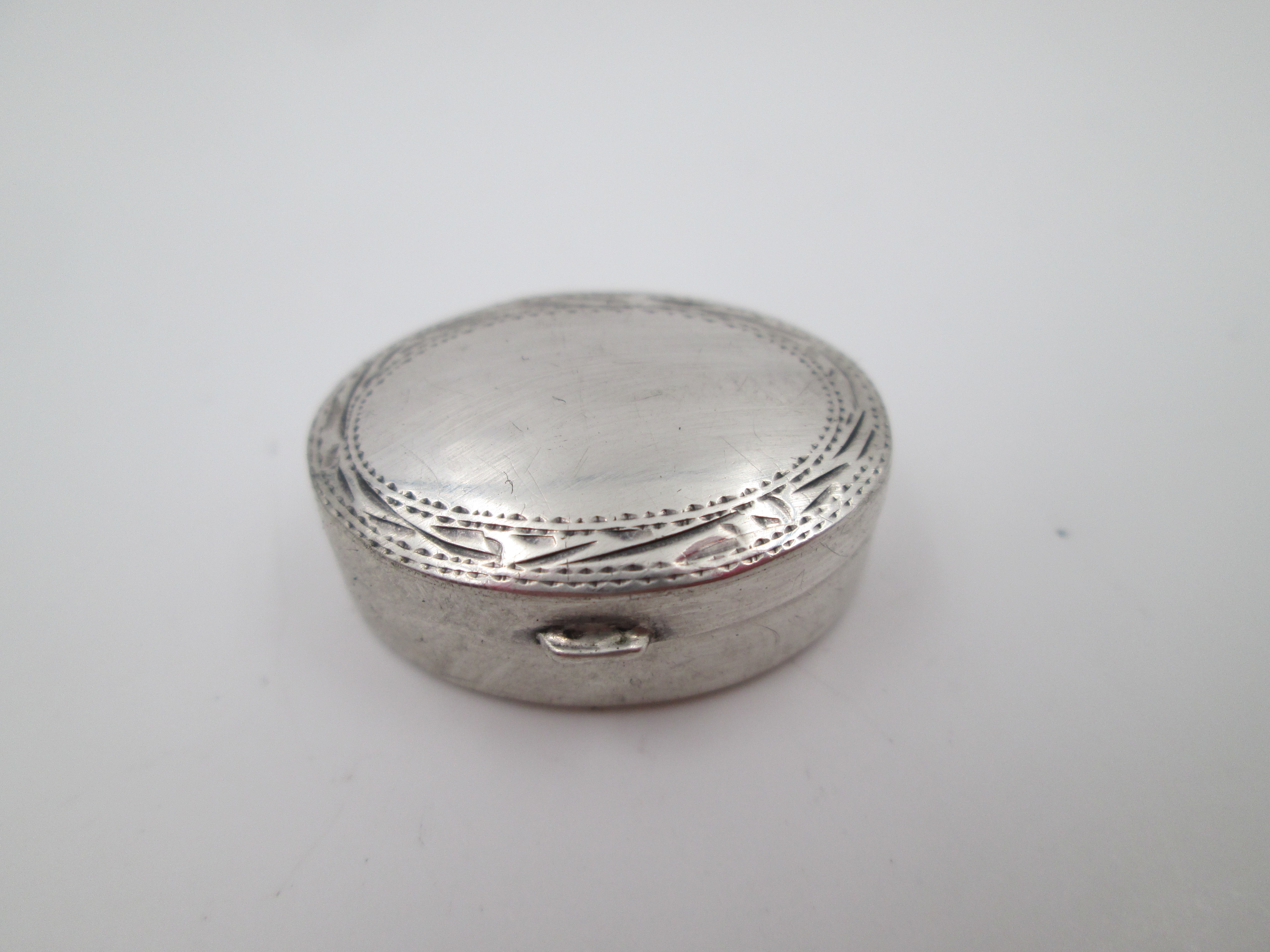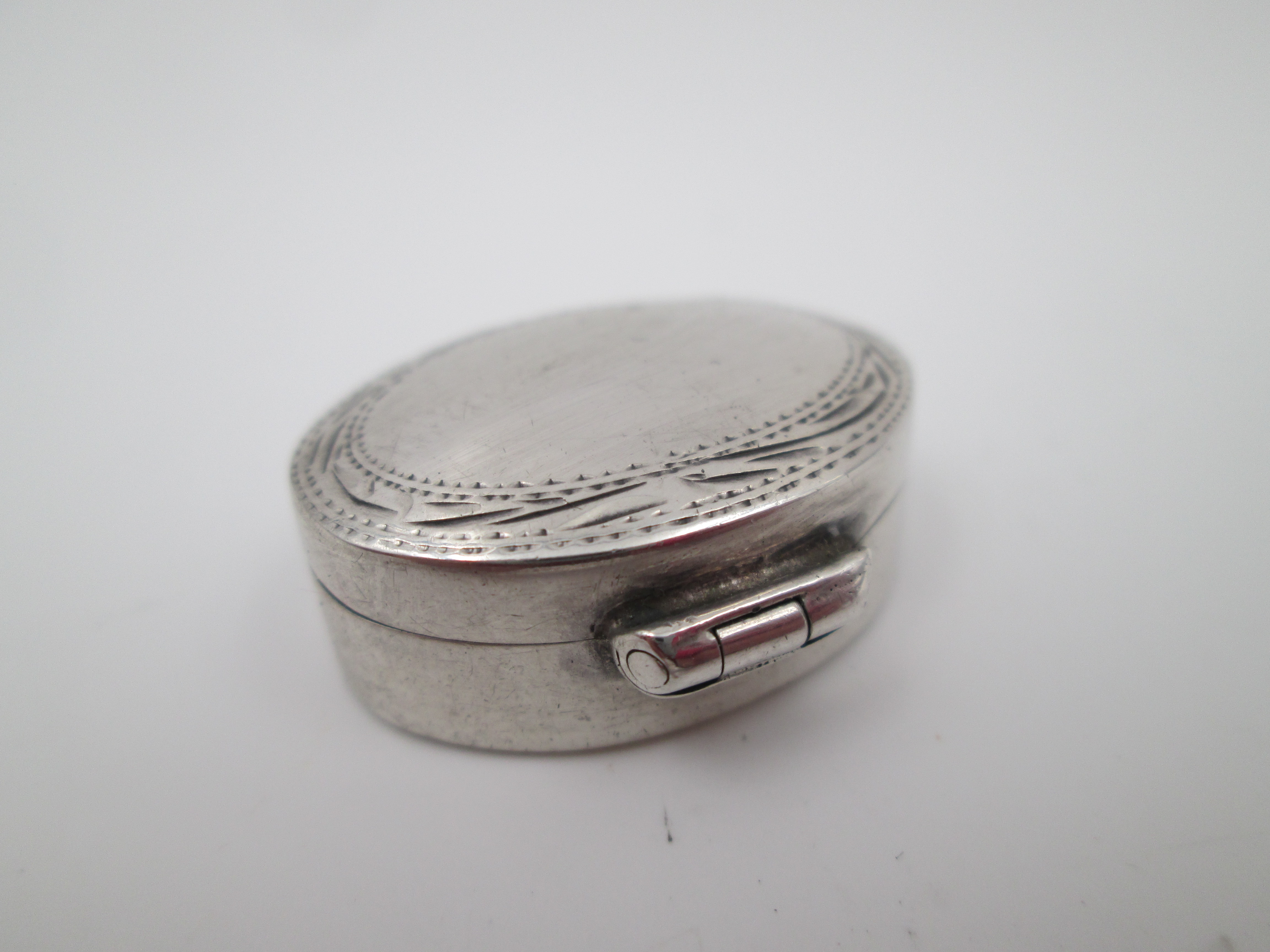 Pequeño pastillero oval en plata de ley 925. Motivos vegetales. Cierre a presión. 1980