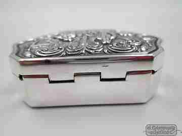 Pastillero. Plata de ley. 1990. Alto relieve. Piedra roja cabujona