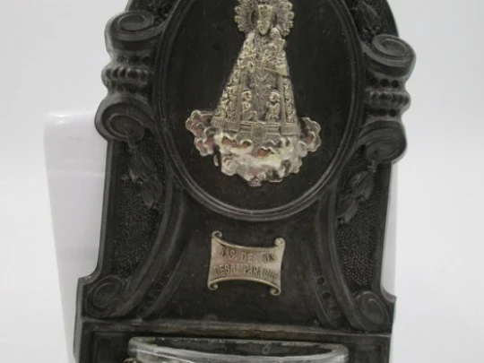 Pila benditera. Cristal, hojalata y metal plateado. 1950. España