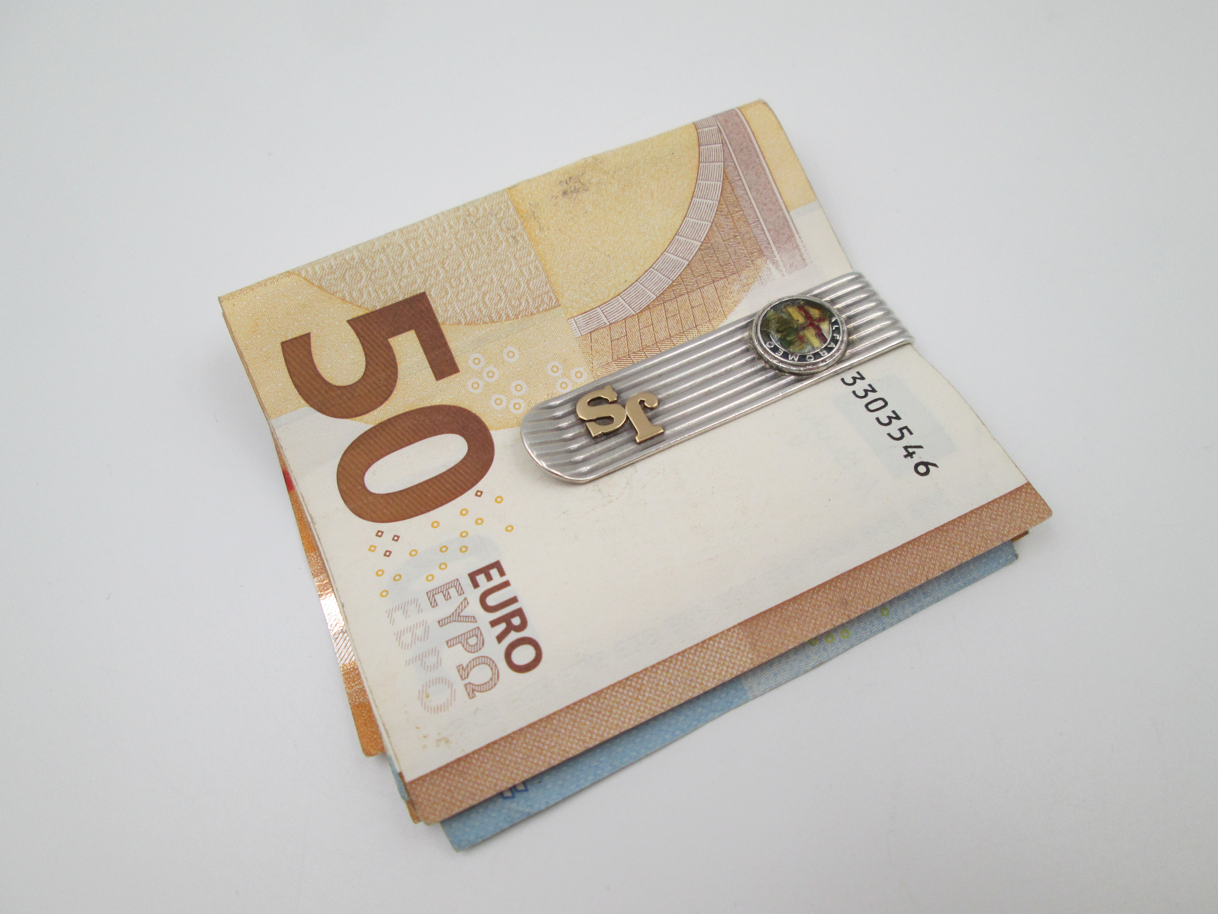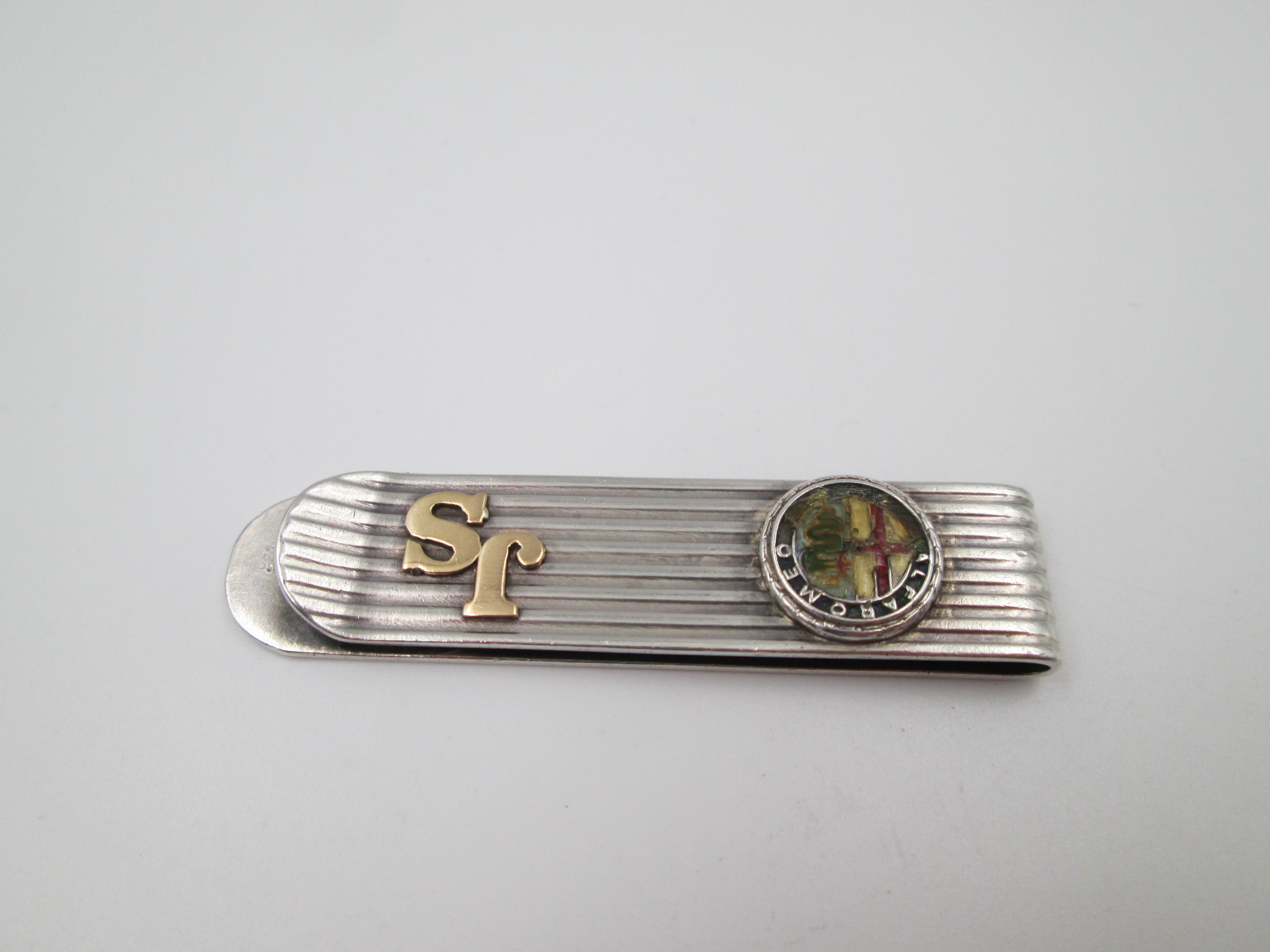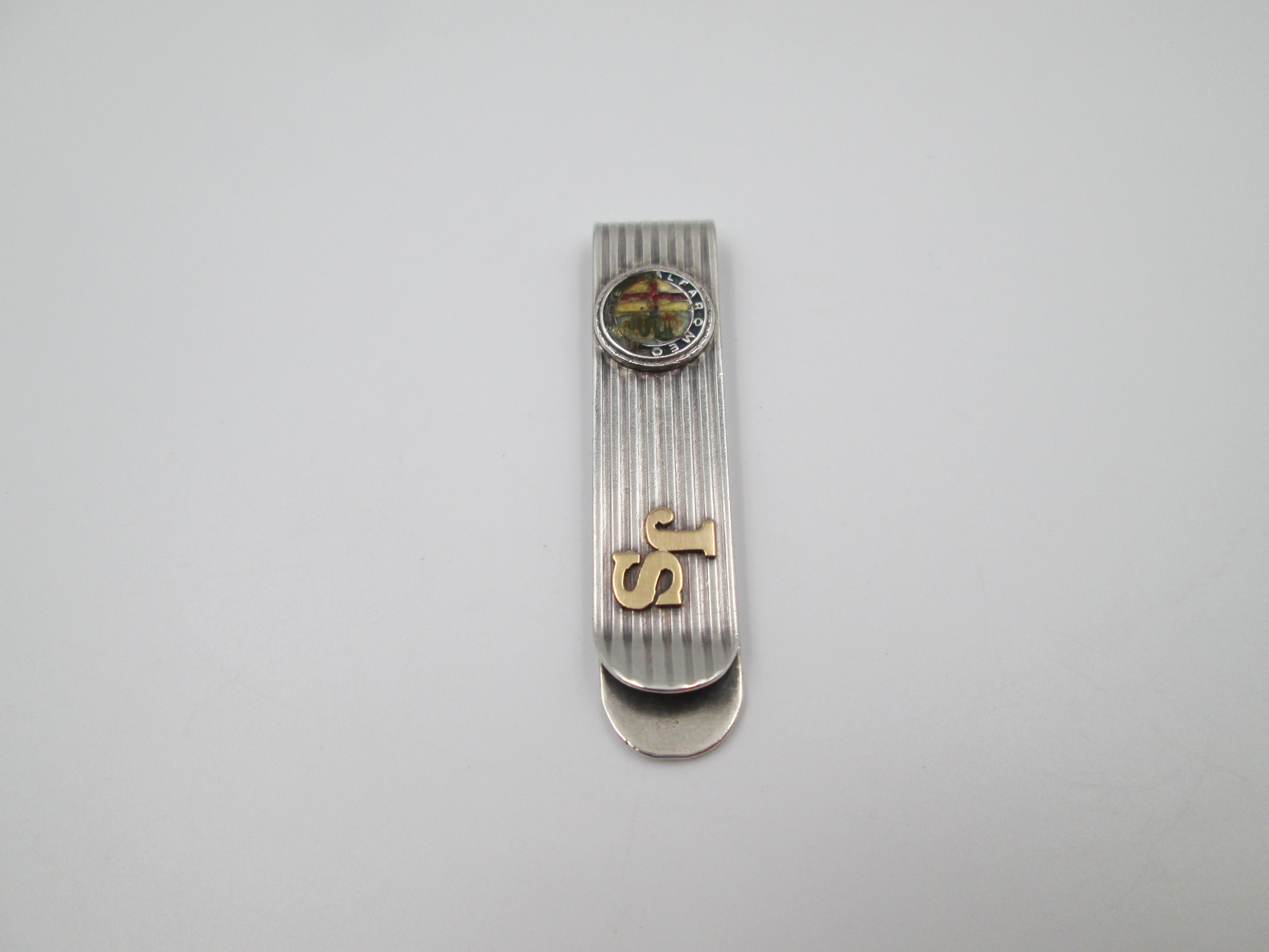Pinza clip sujeta billetes. Plata de ley y oro. Acanalados y escudo Alfa Romeo. 1980