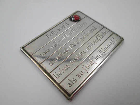 Portafotos para automóvil. Plata ley 830. Mariquita en esmalte bicolor. Alemania. 1950