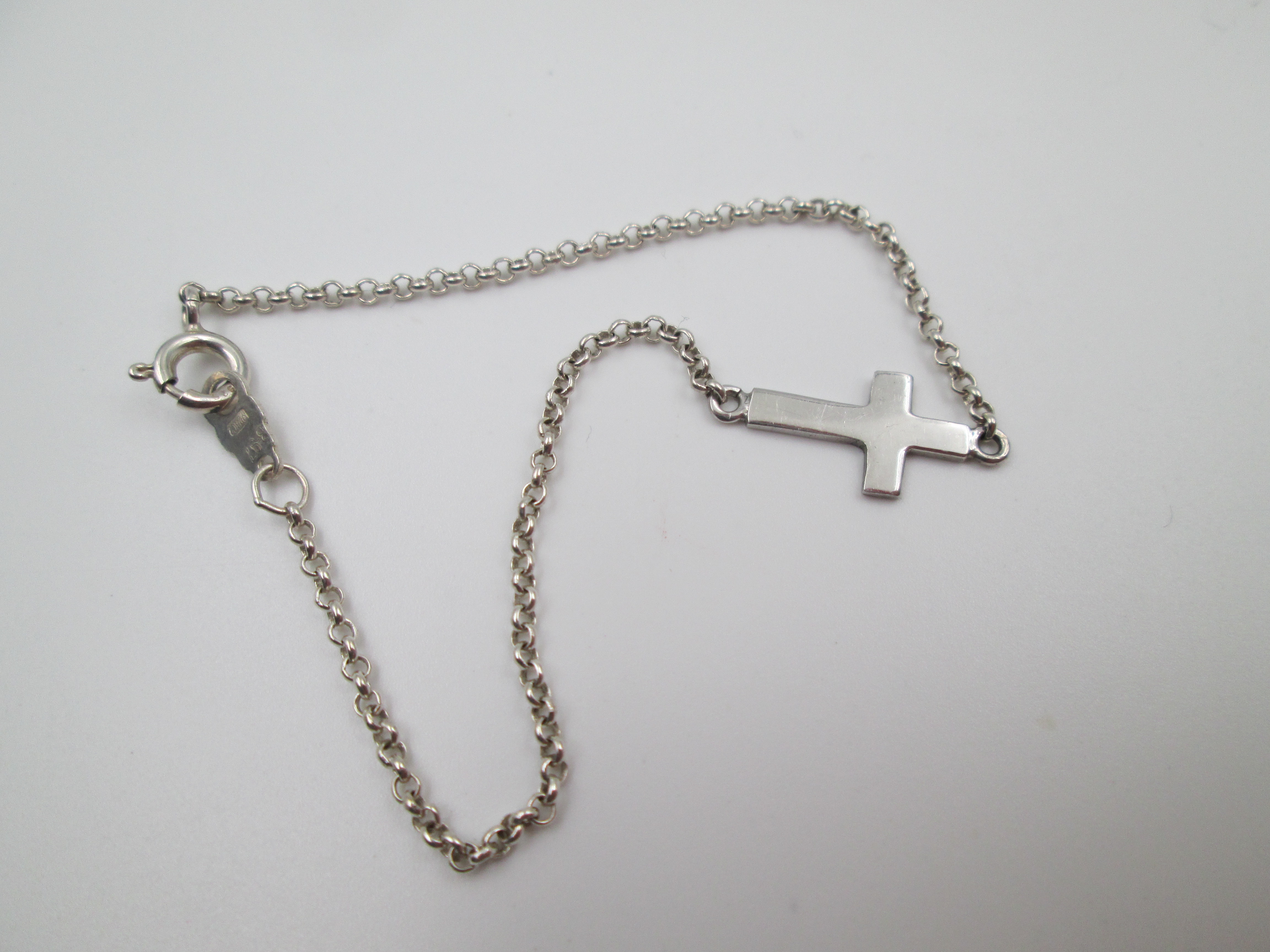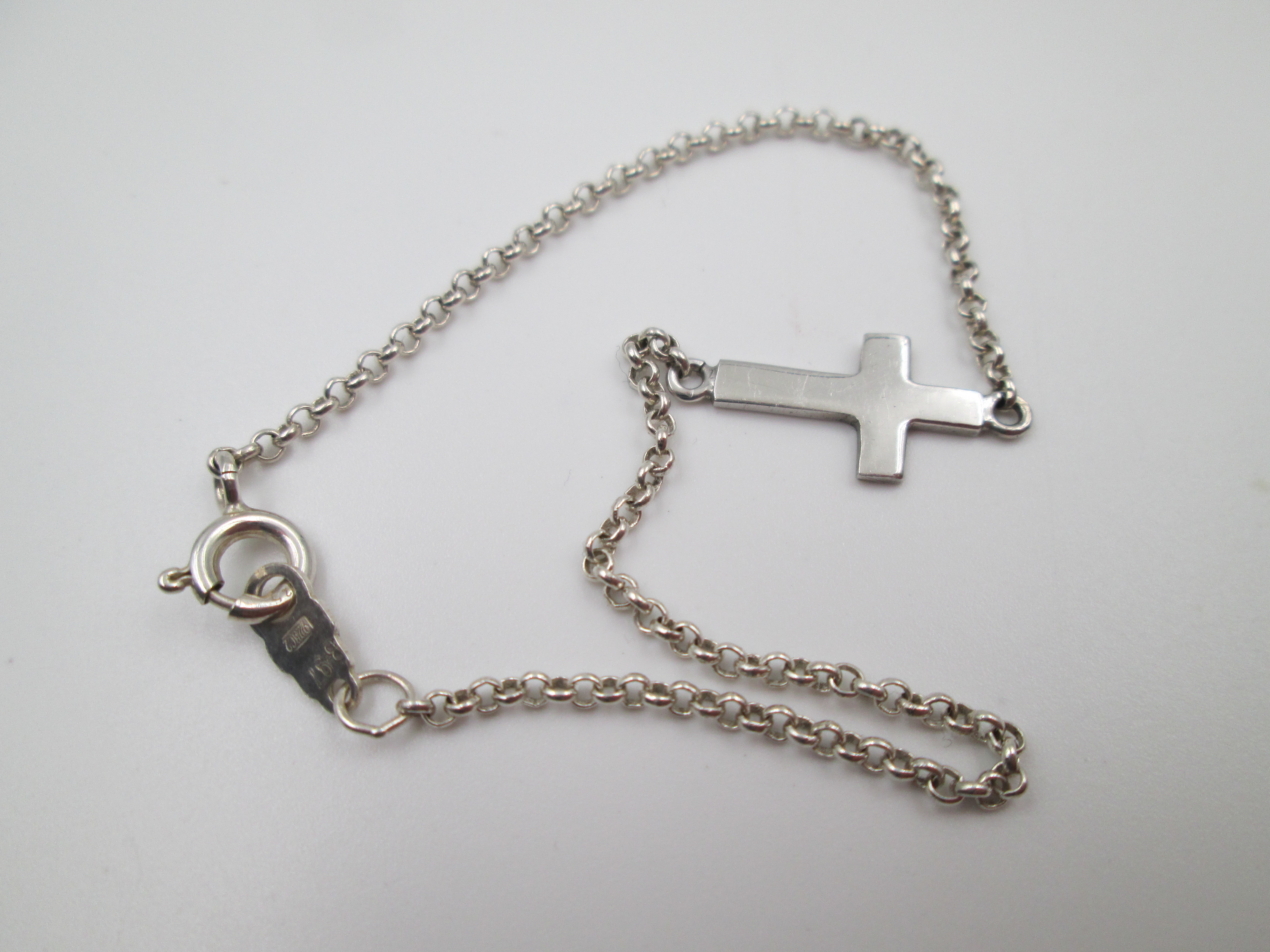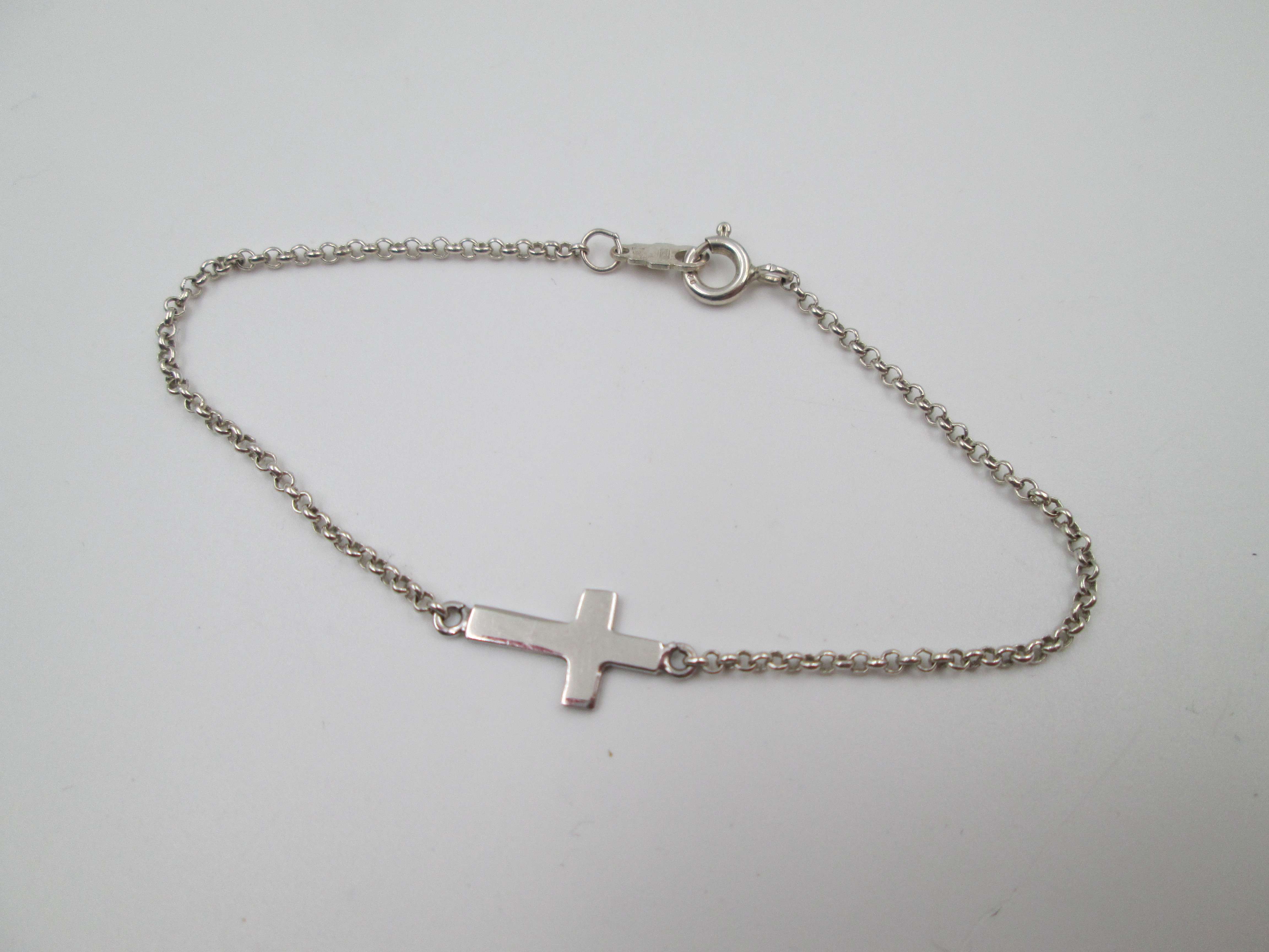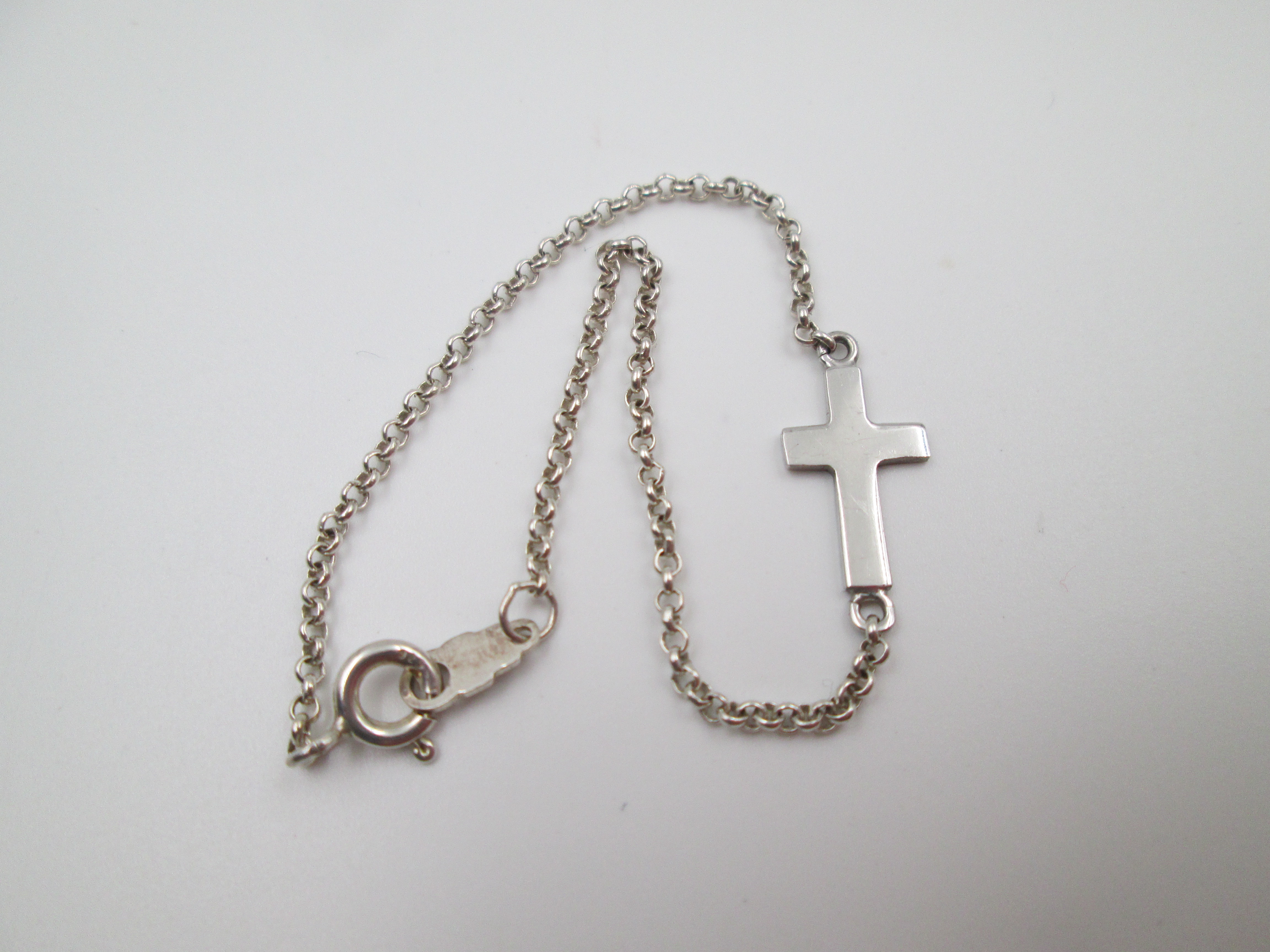 Pulsera de eslabones abiertos en plata de ley con motivo de cruz. Cierre de argolla. 1990