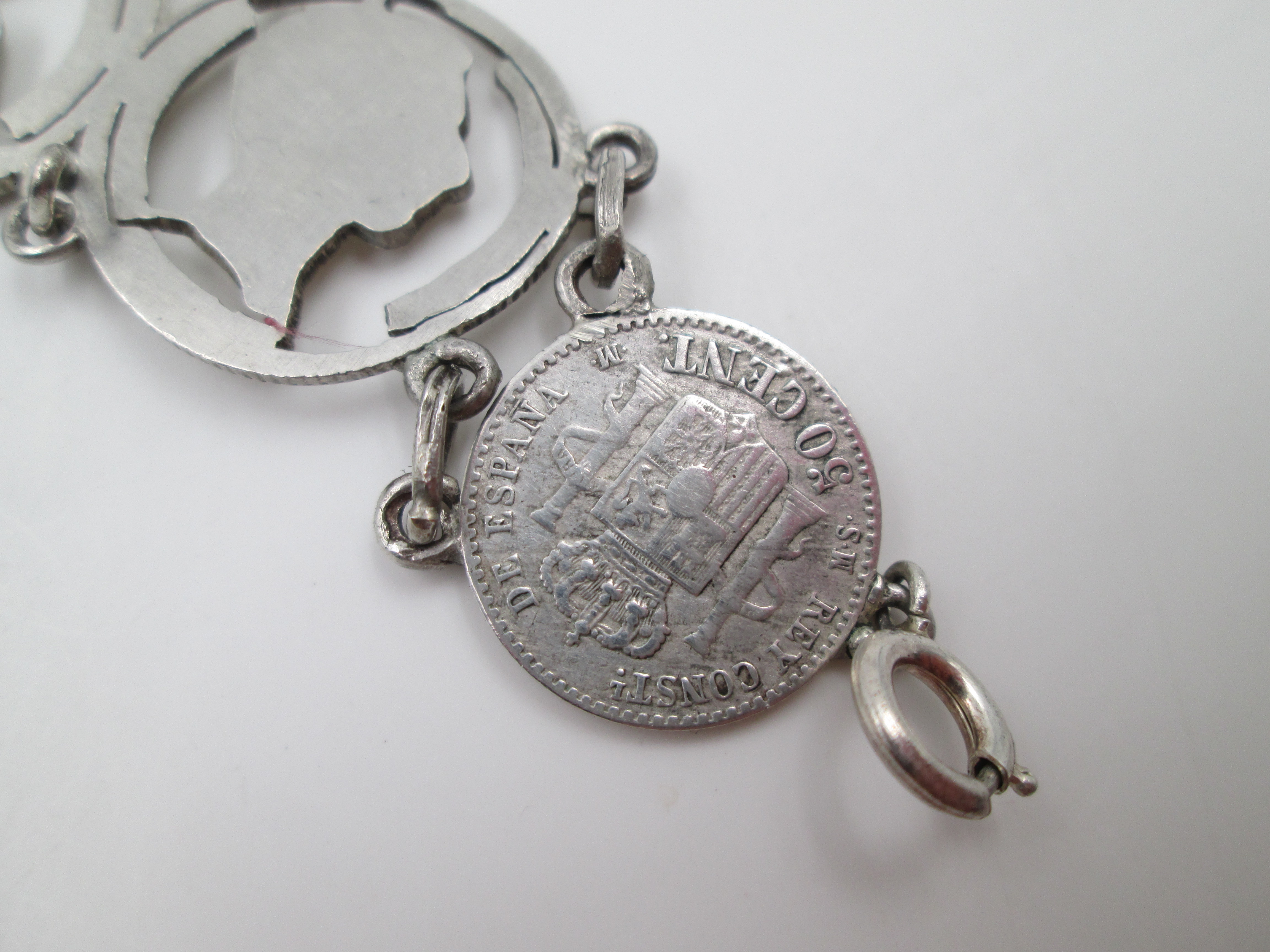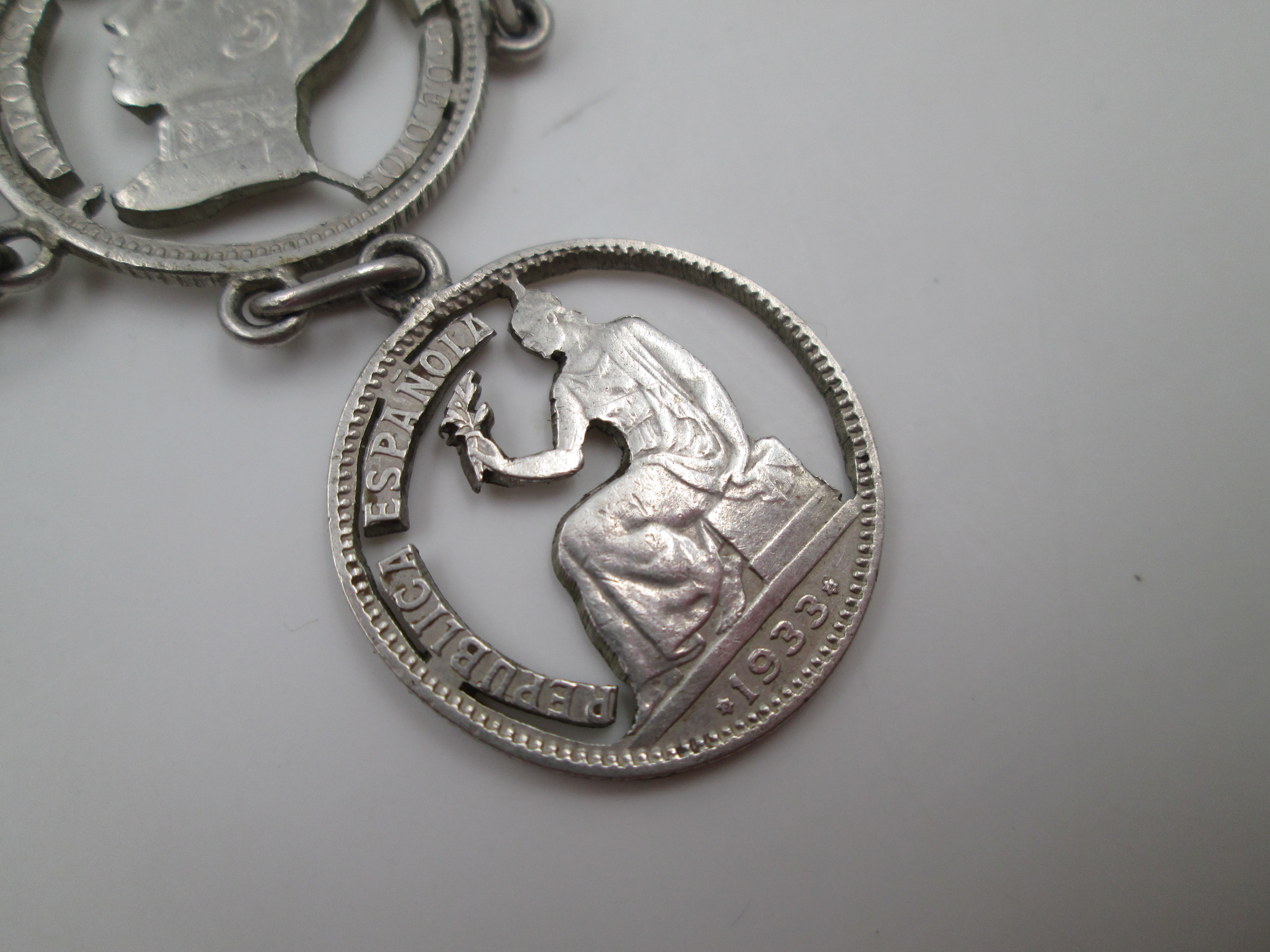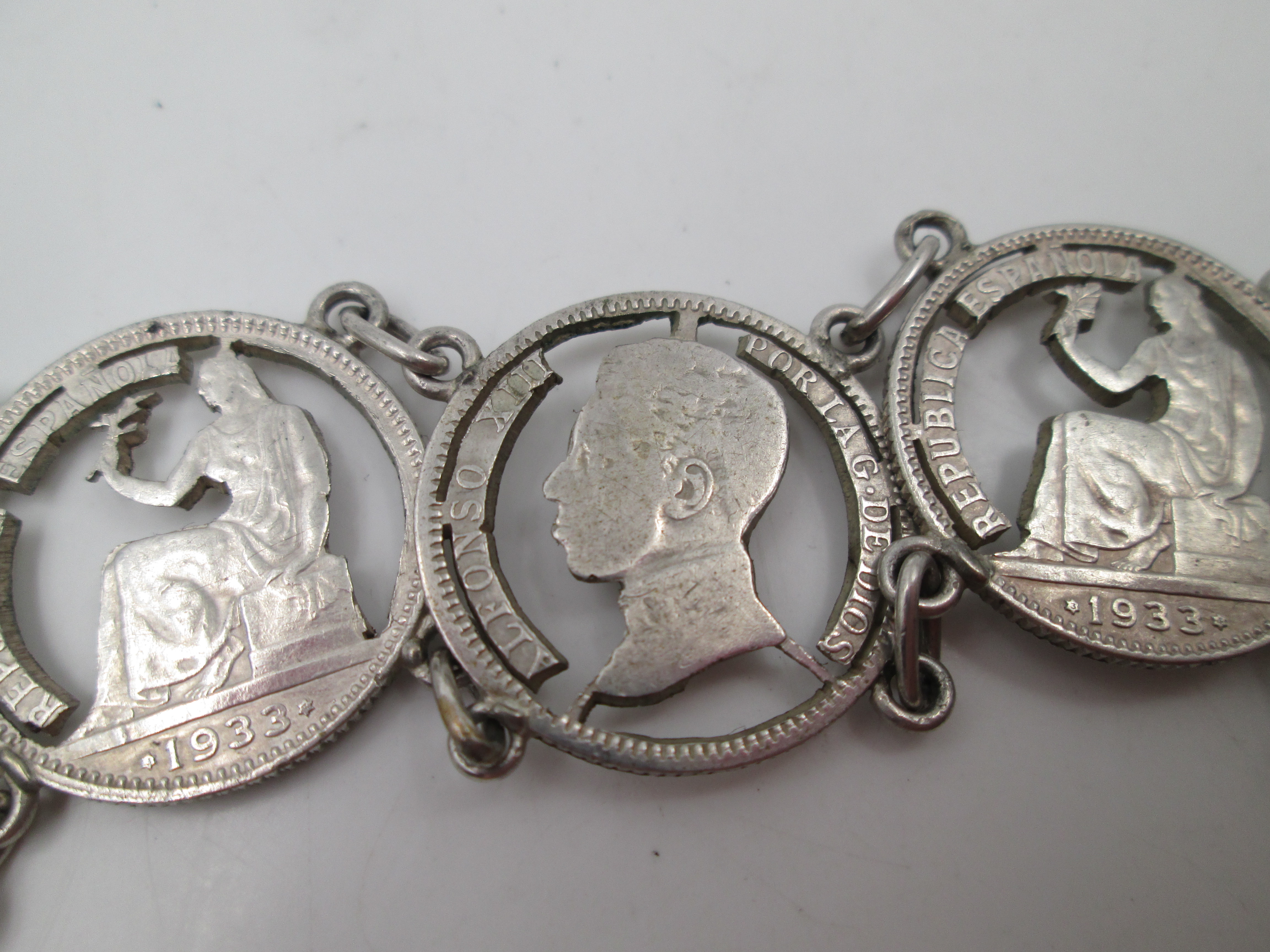 Pulsera mujer monedas españolas Alfonso XII-XIII y Segunda República. Plata. 1940