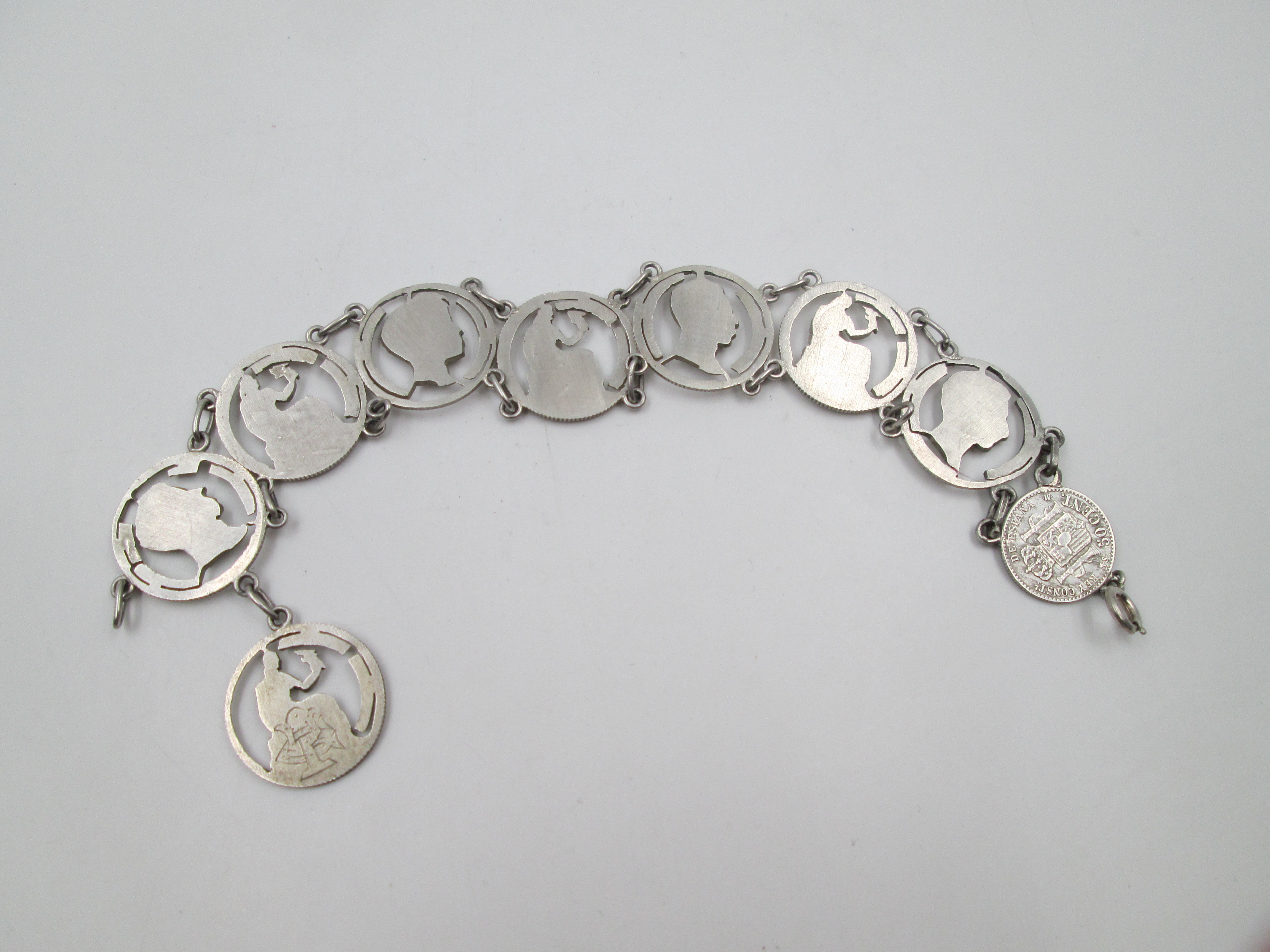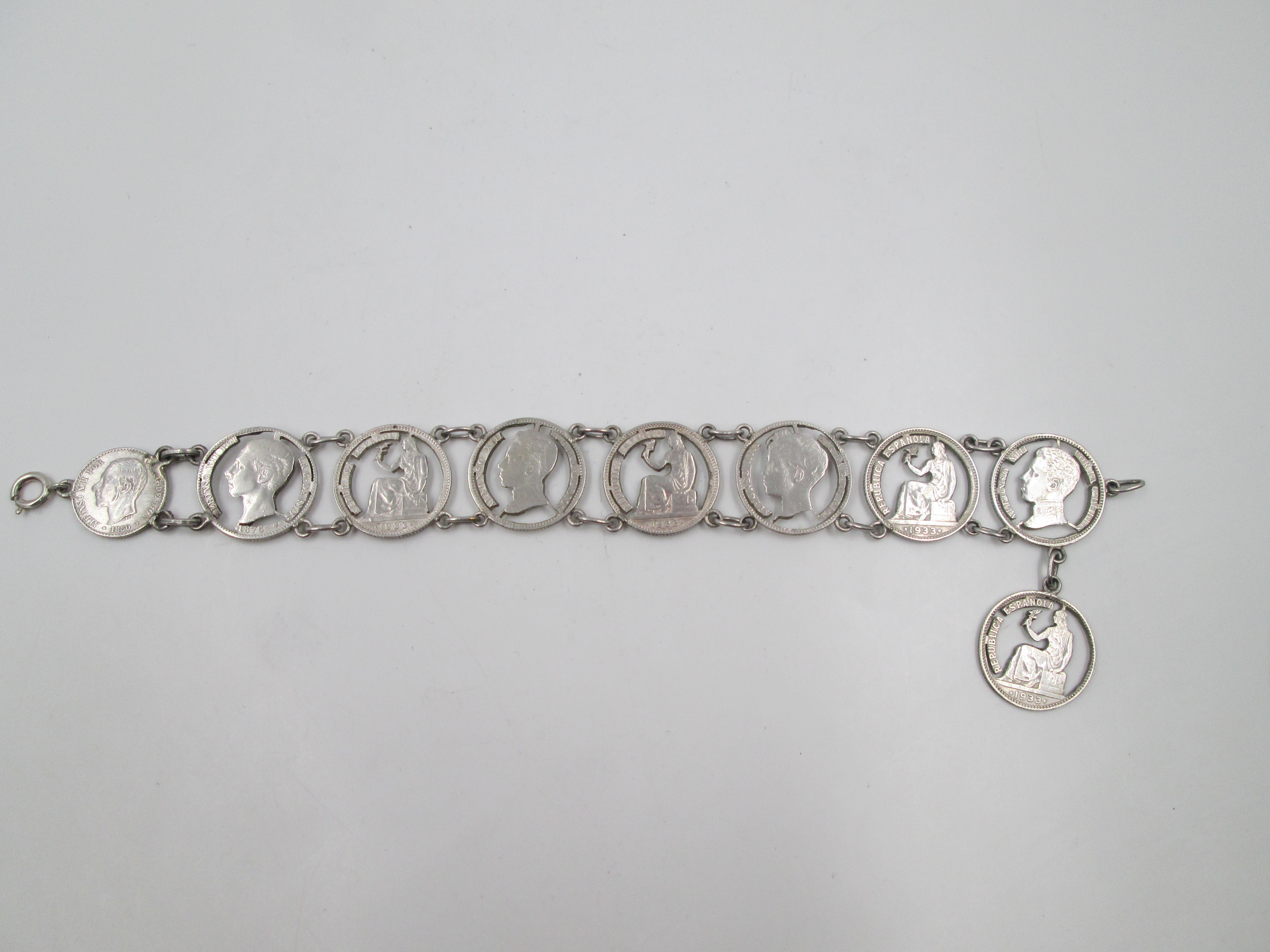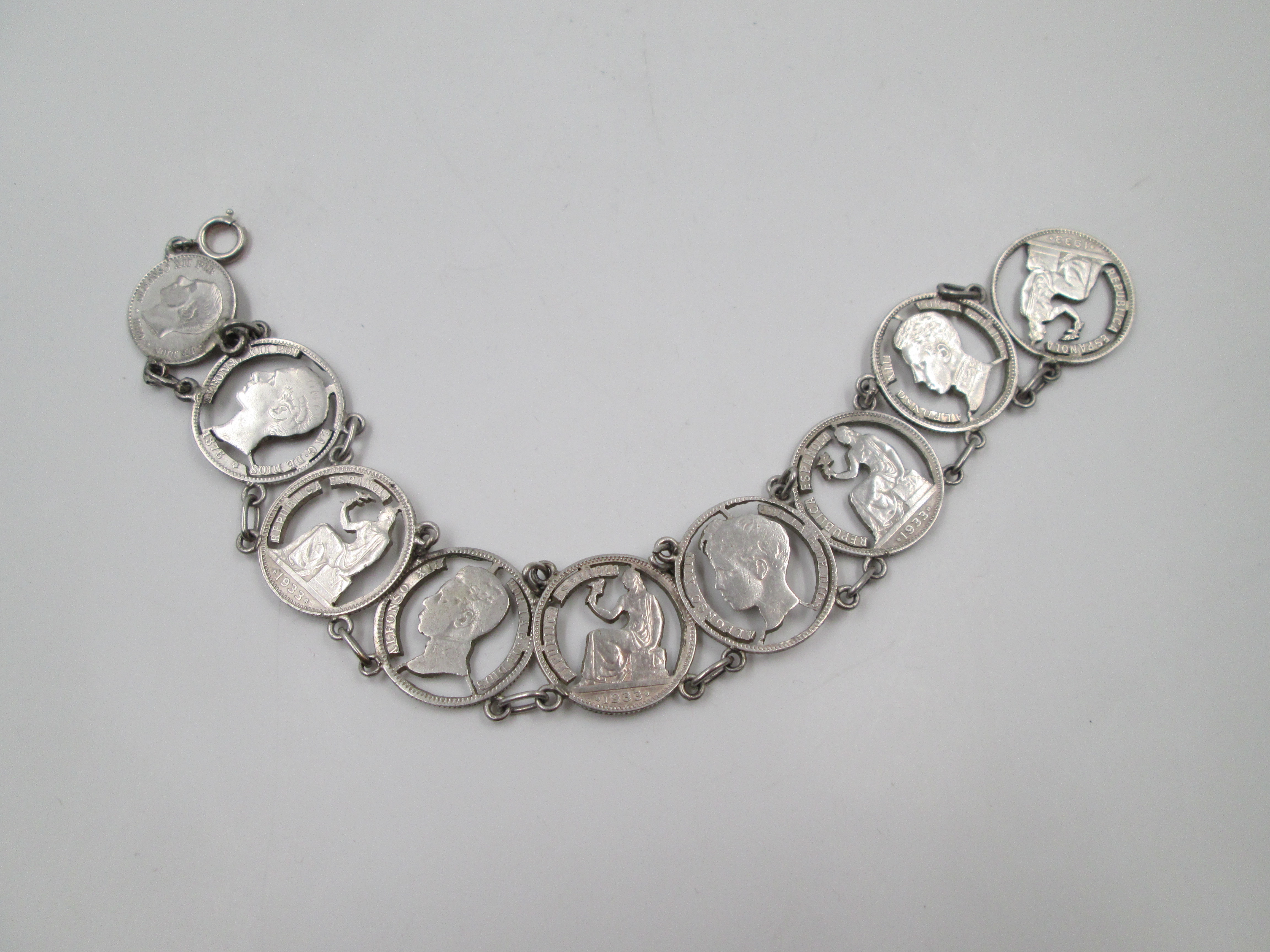 Pulsera mujer monedas españolas Alfonso XII-XIII y Segunda República. Plata. 1940