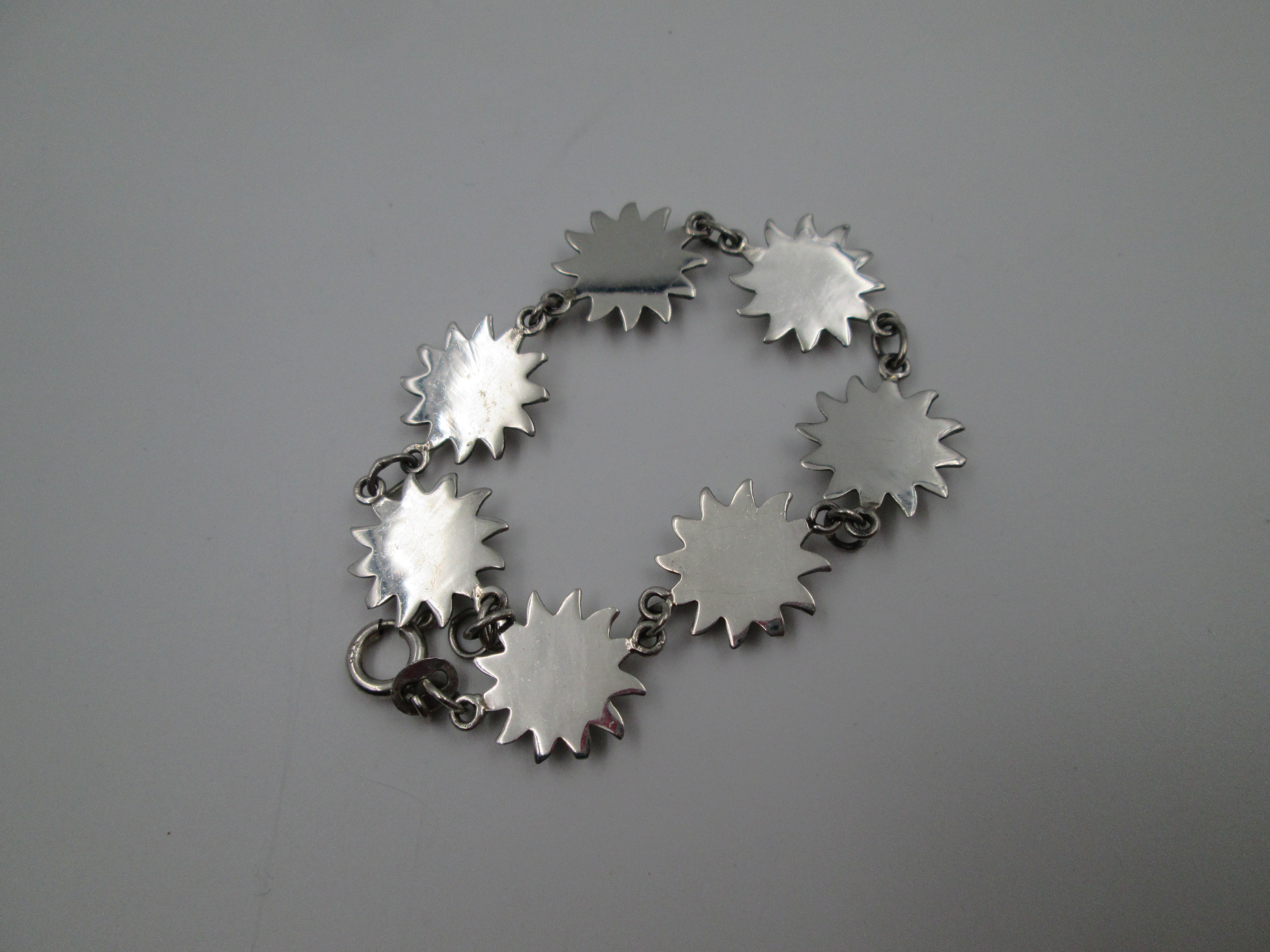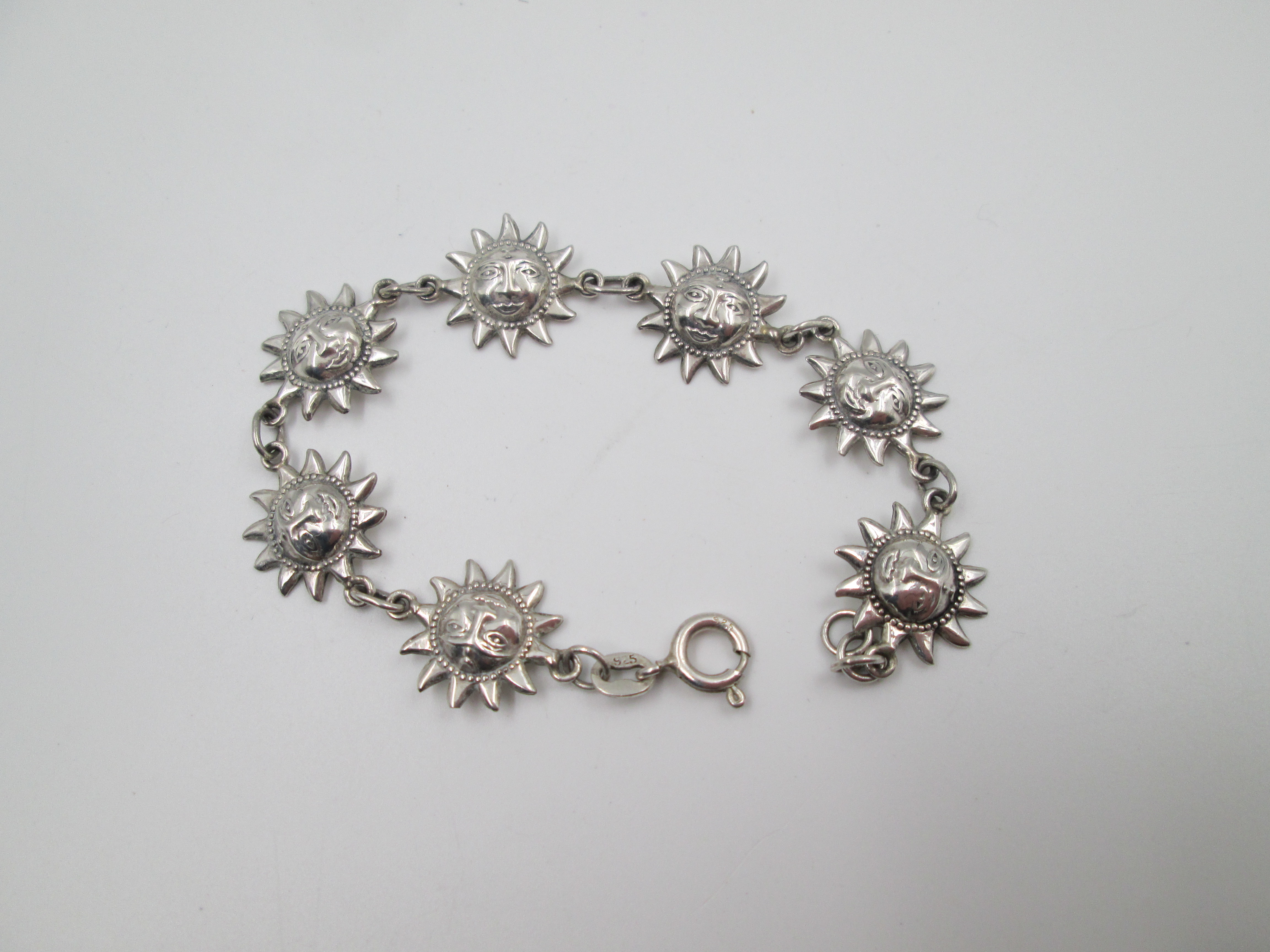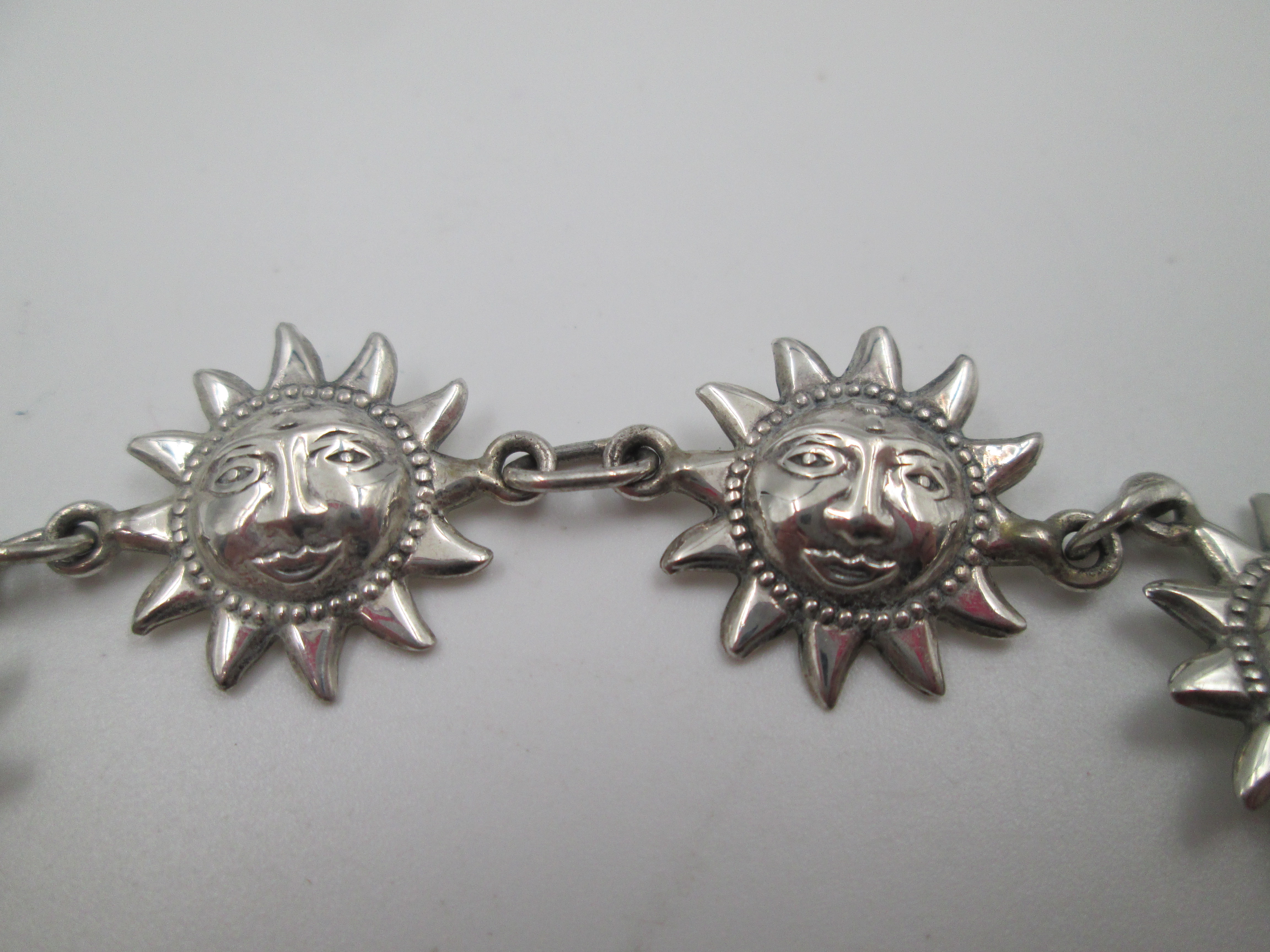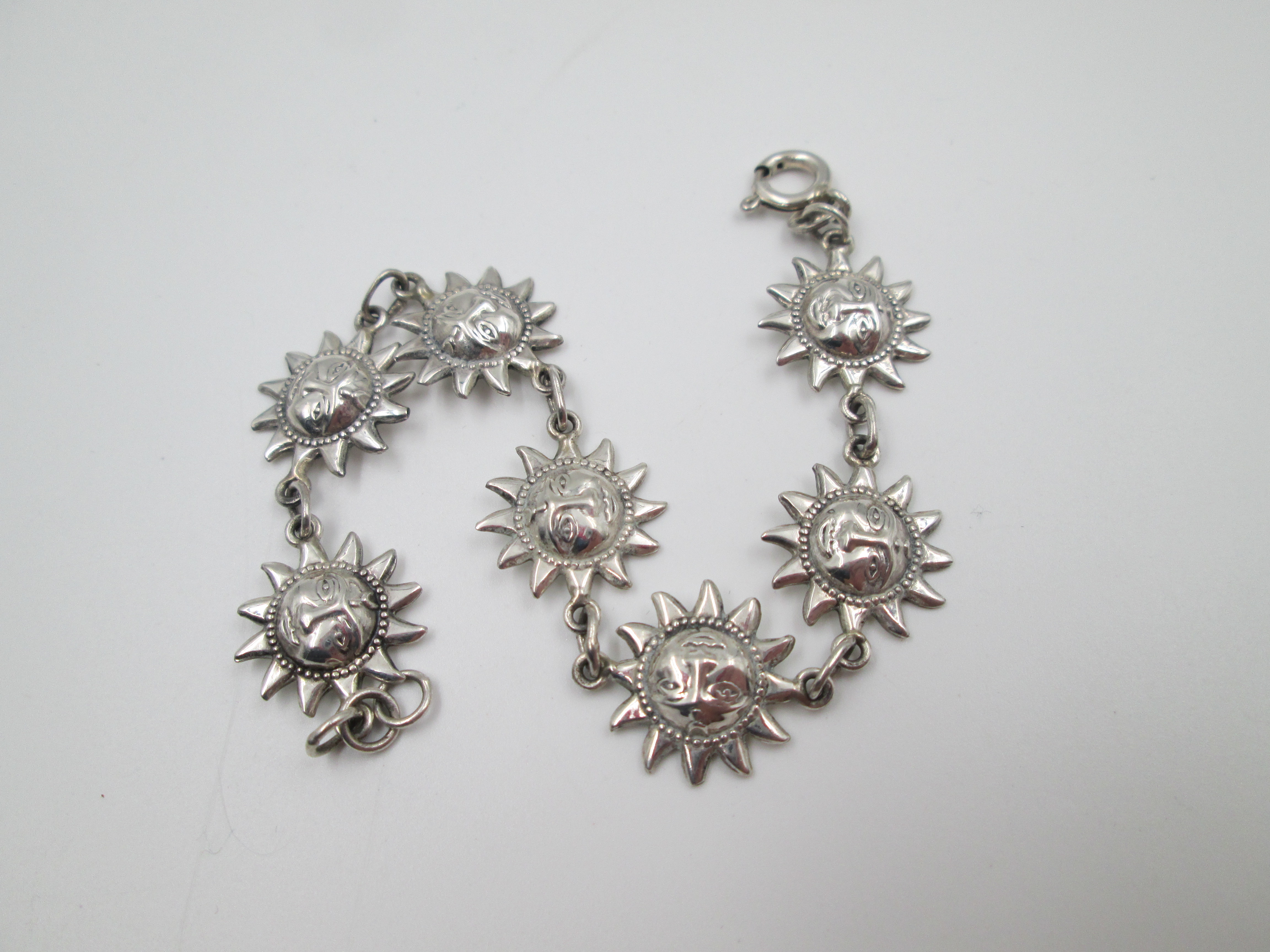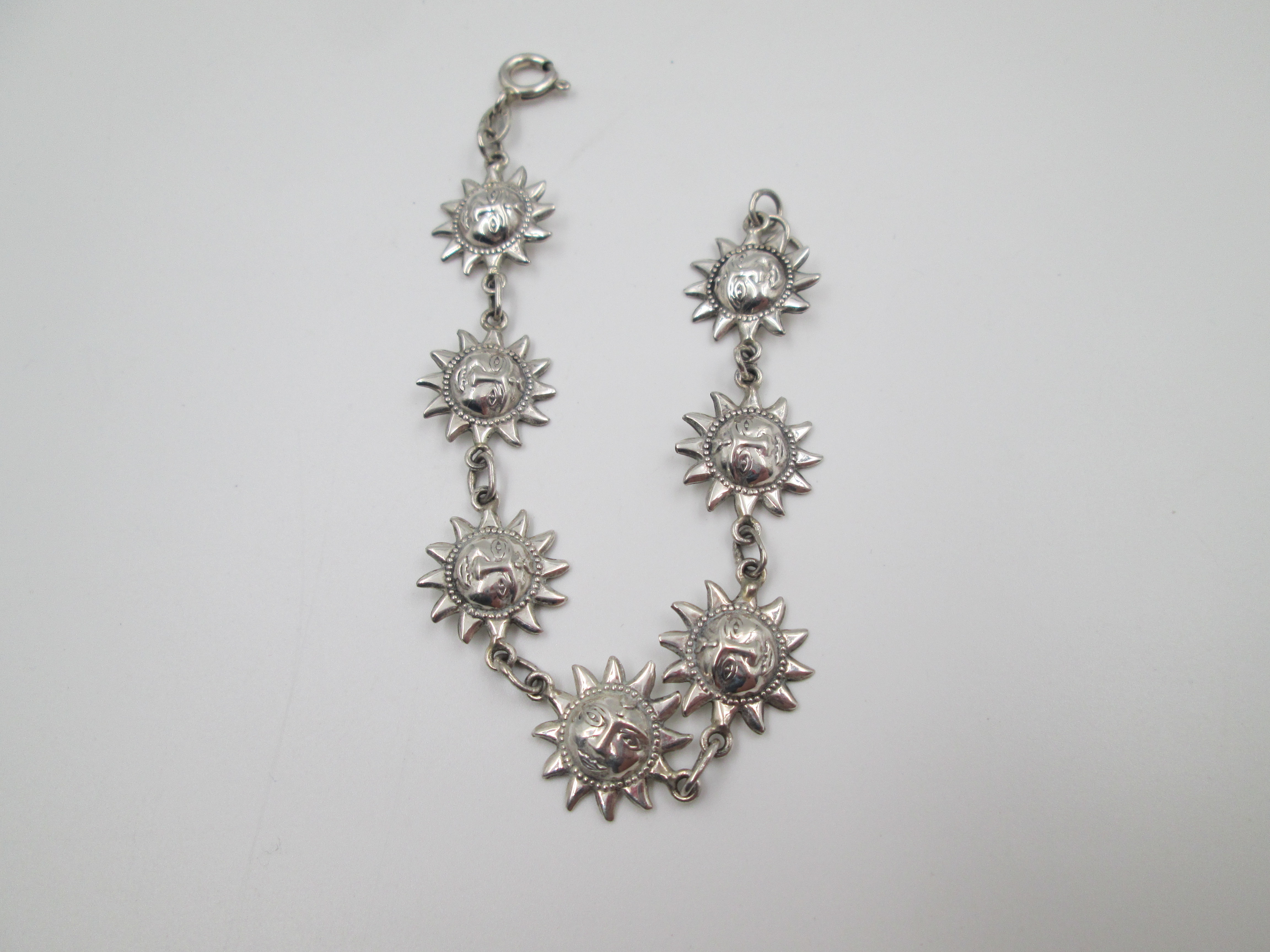 Pulsera para mujer en plata de ley. Motivos decorativos de soles. Cierre de argolla. 1990