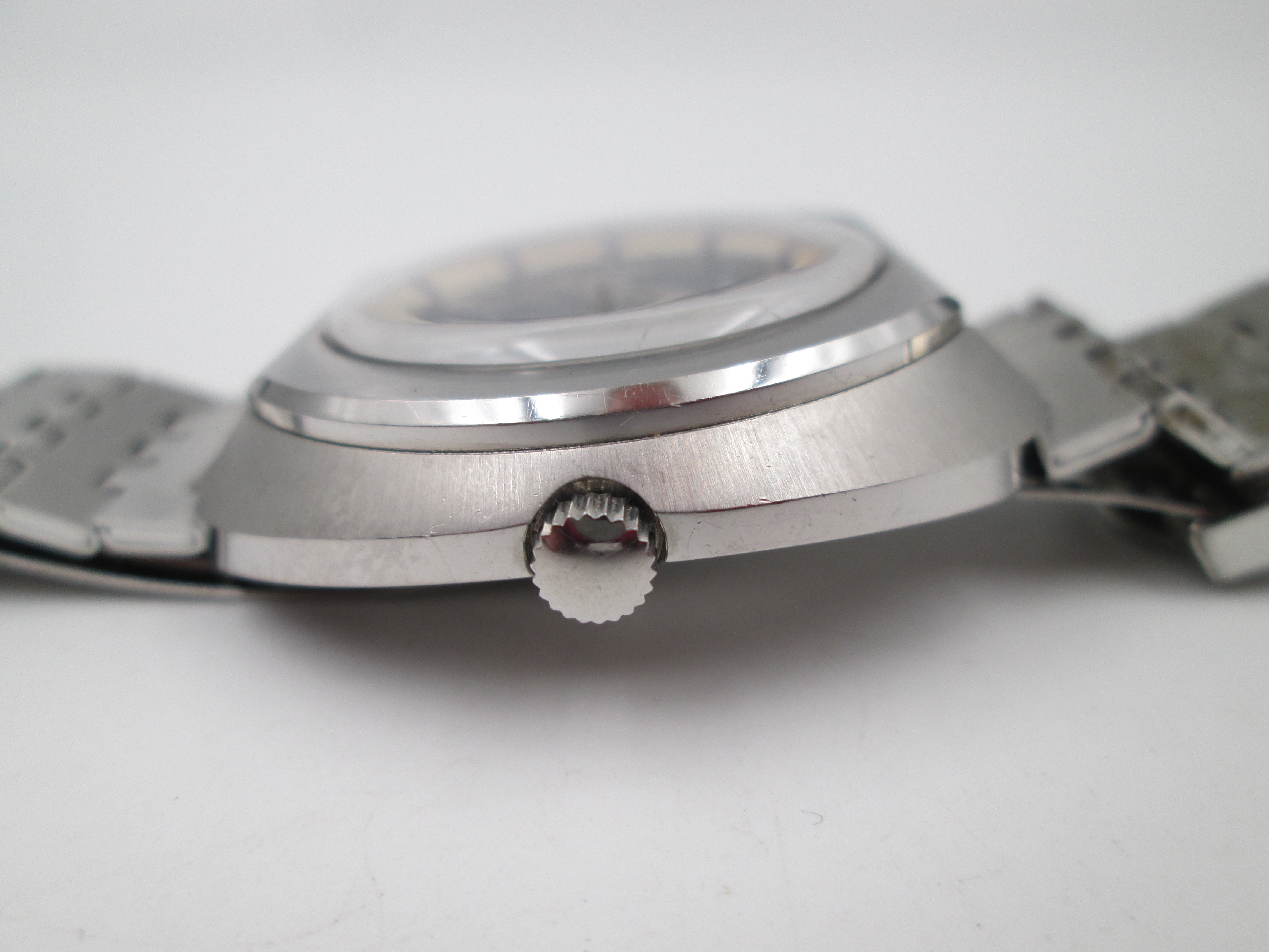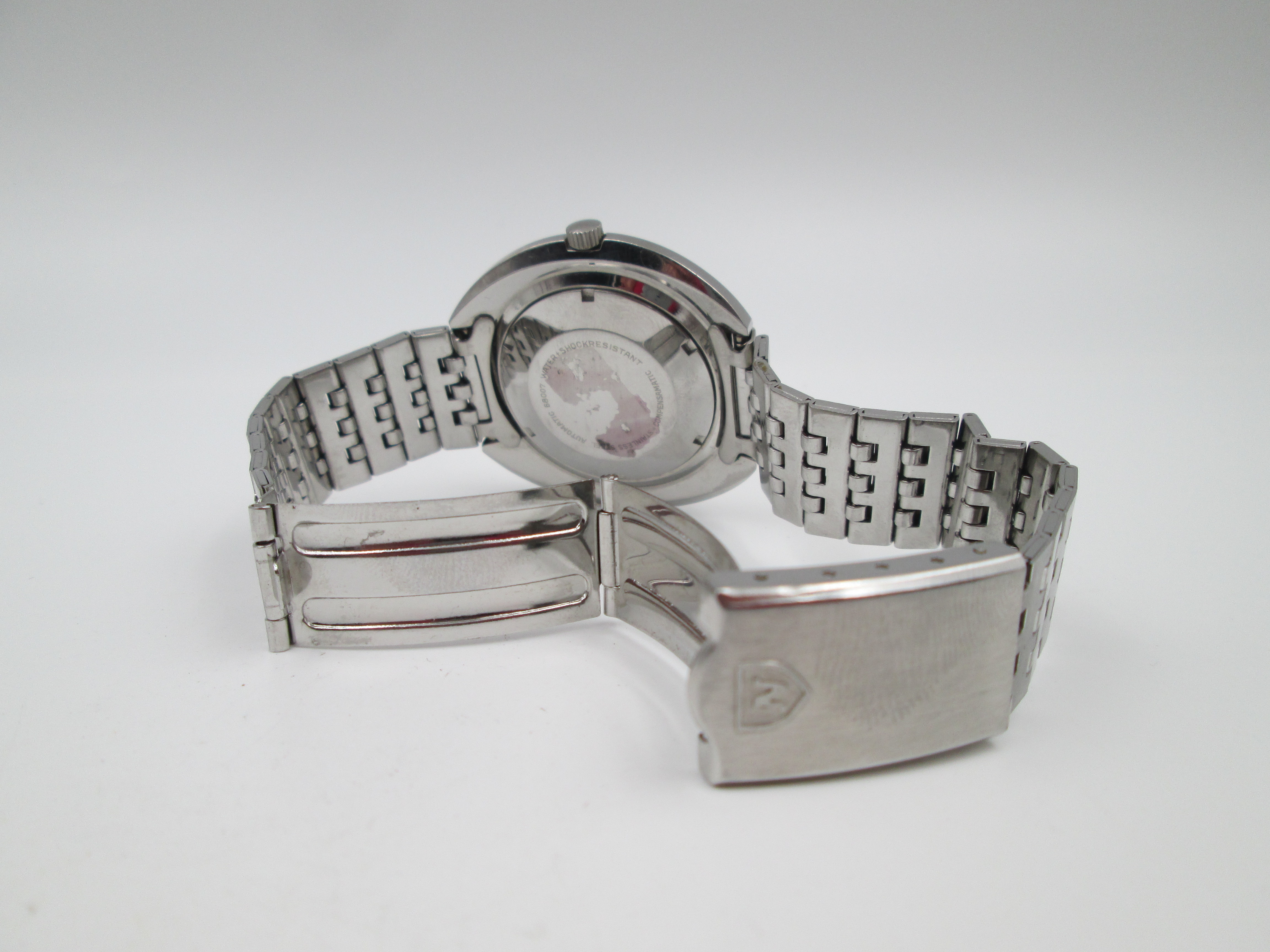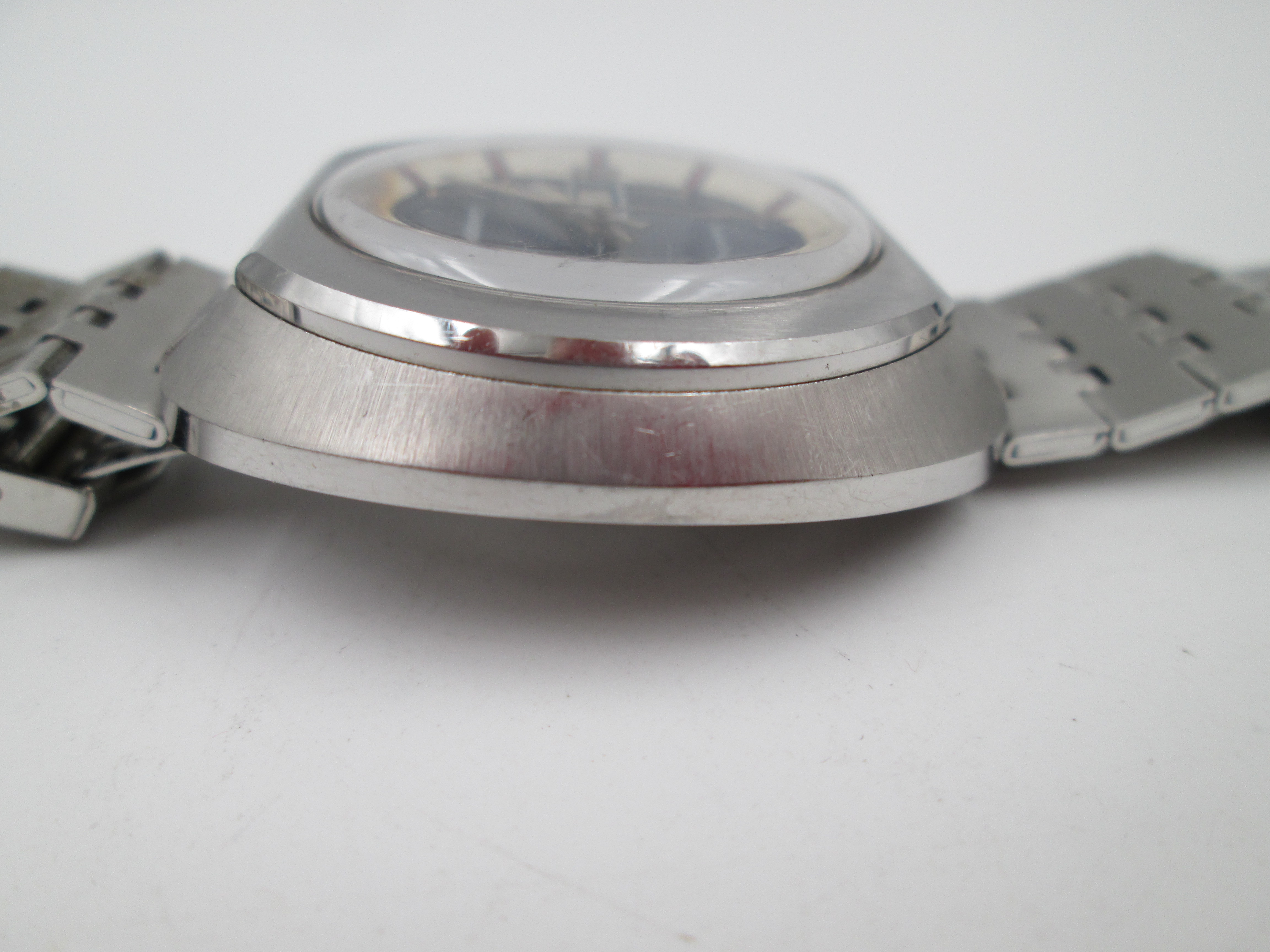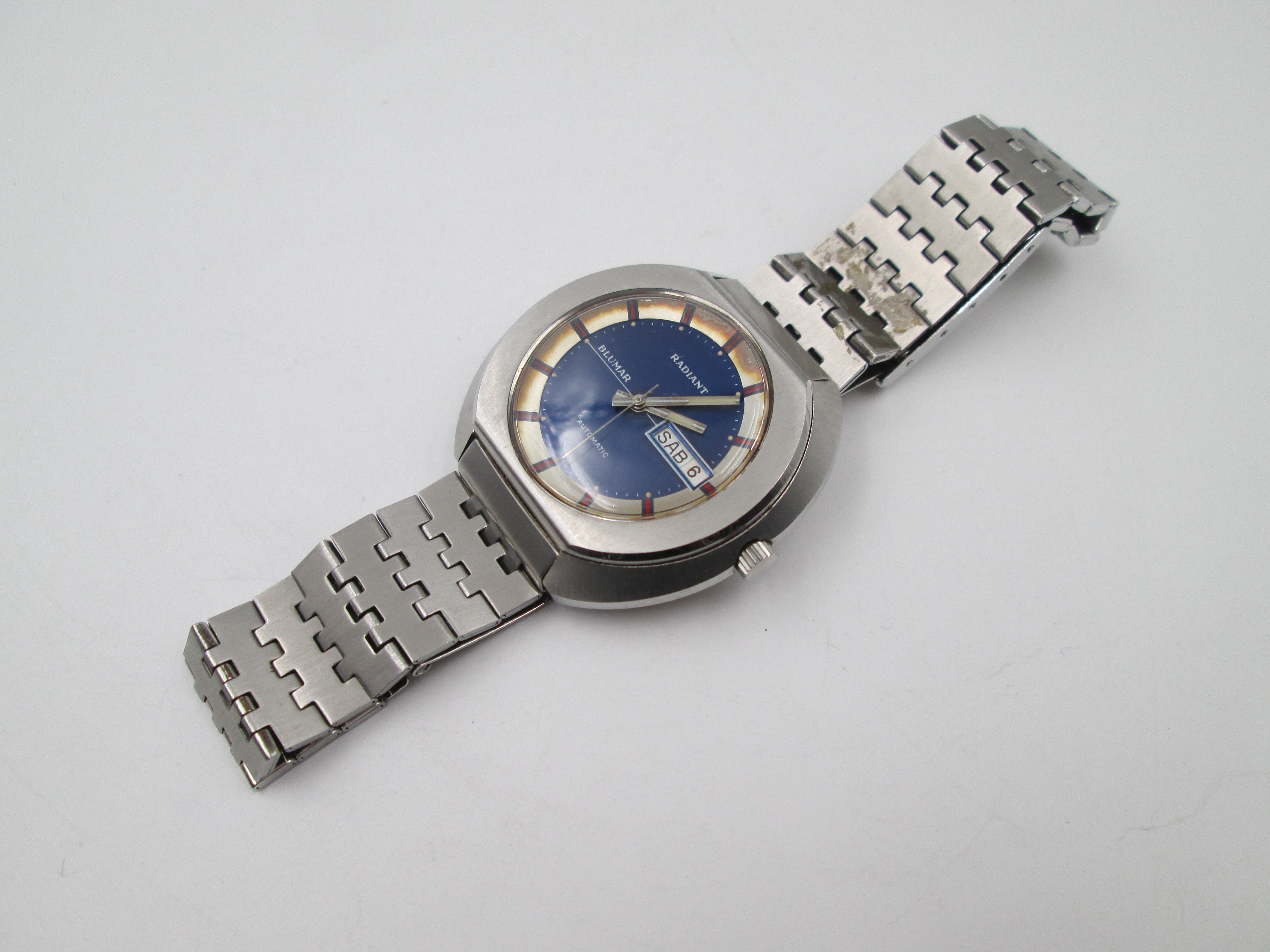 Radiant Blumar. Acero. Caja elíptica. Automático. Calendario. Brazalete. 1970