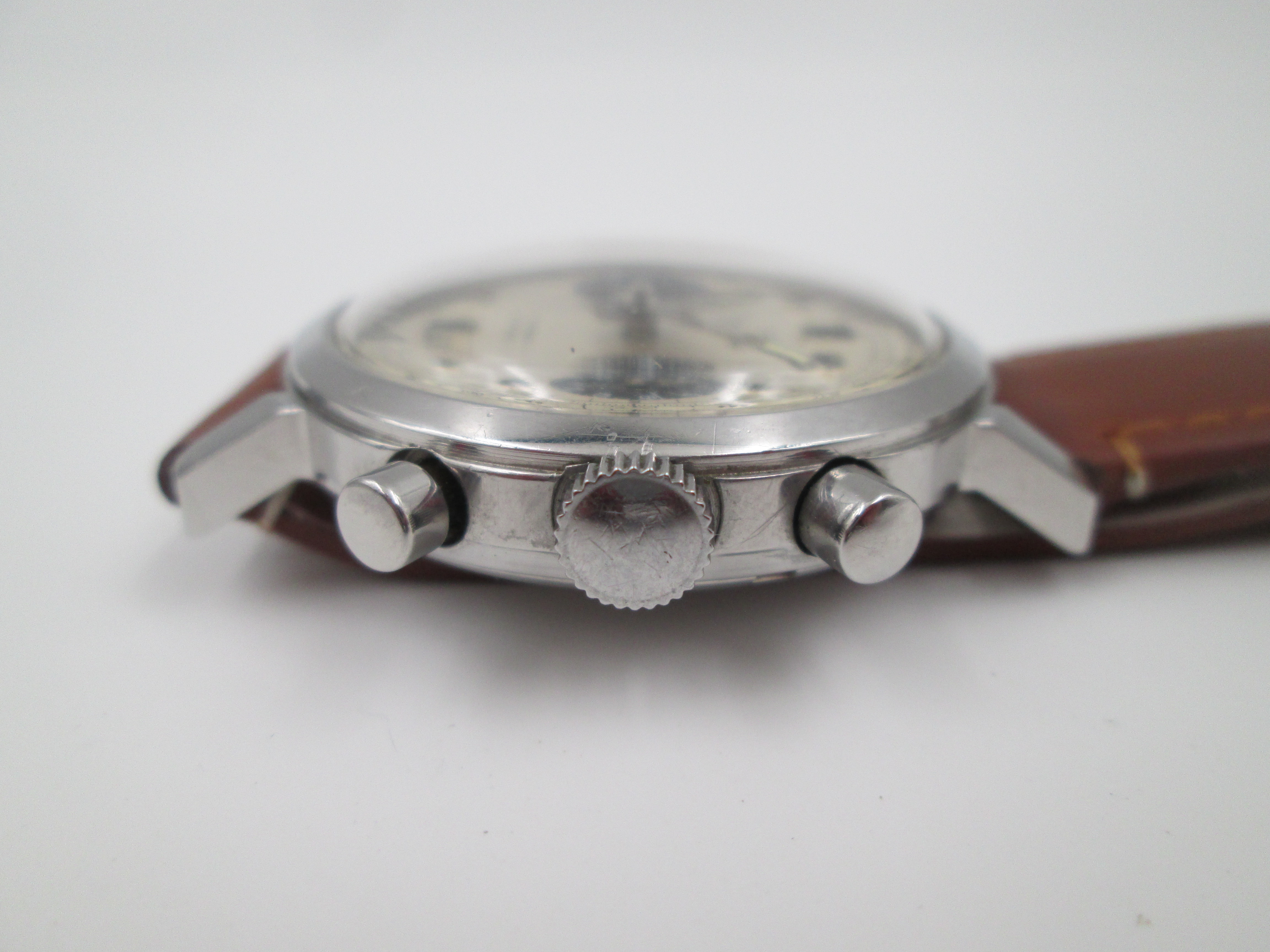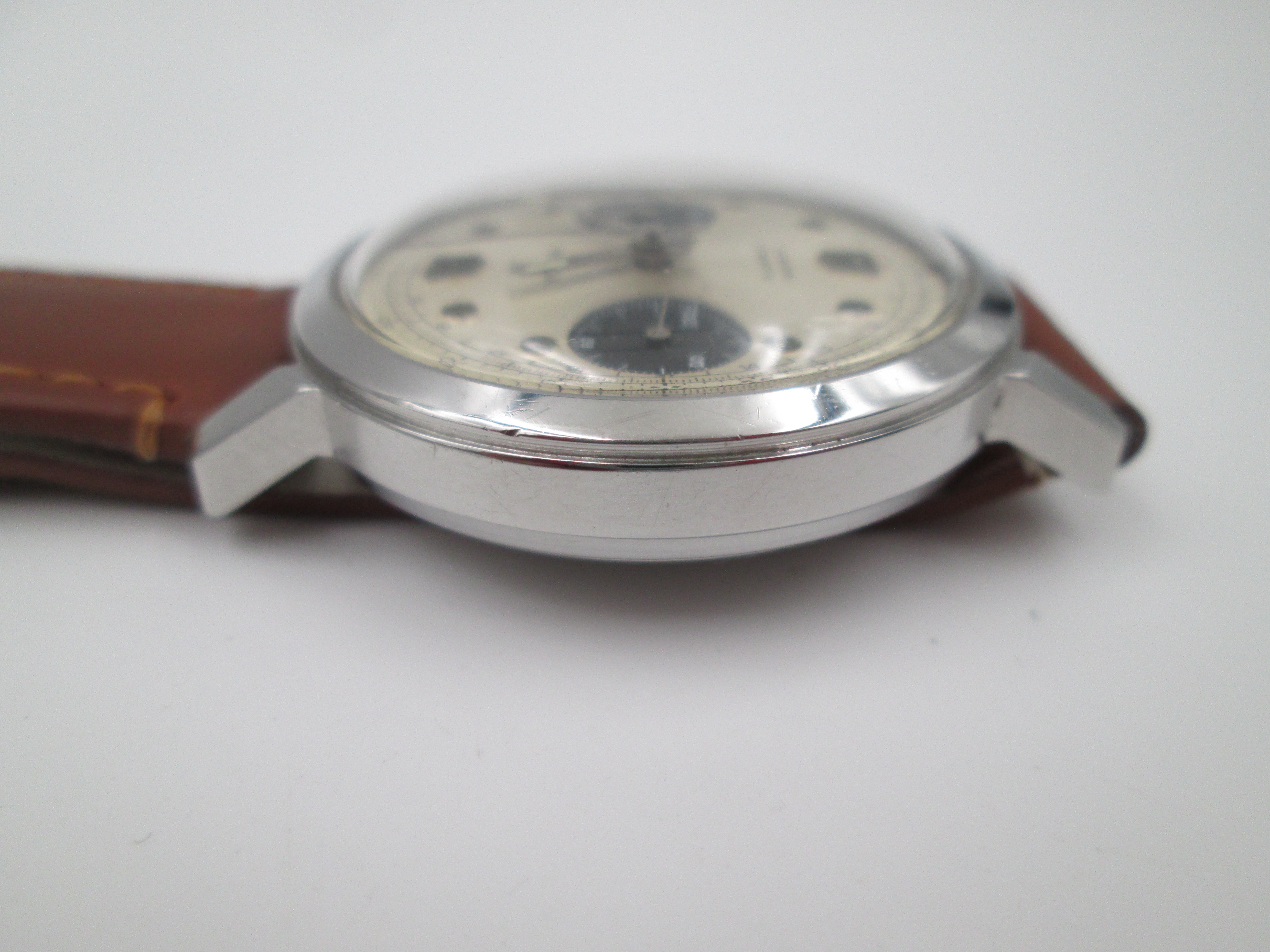 Raro cronógrafo Yema Panda. Acero inoxidable. Cuerda manual. Francia. 1960