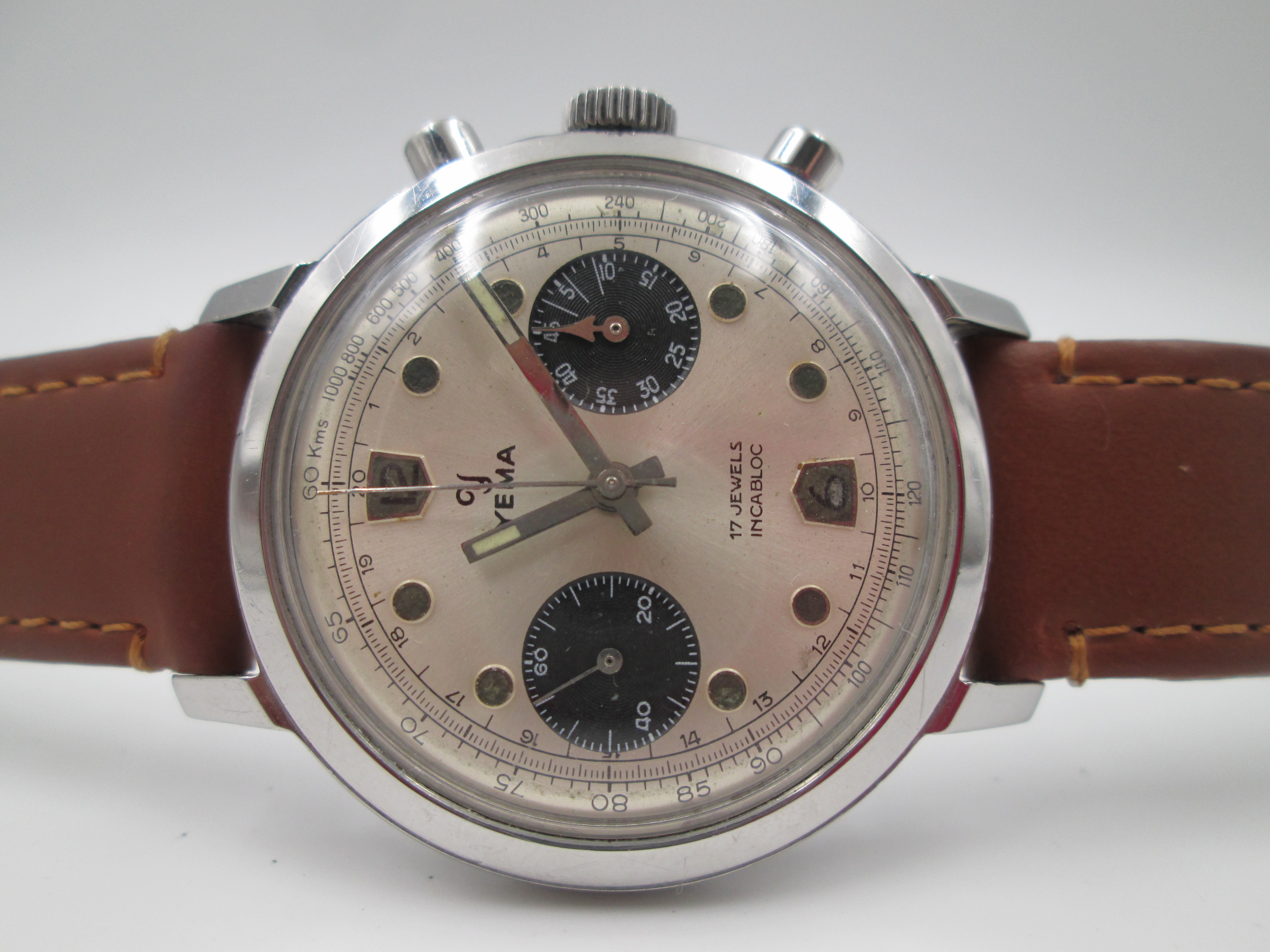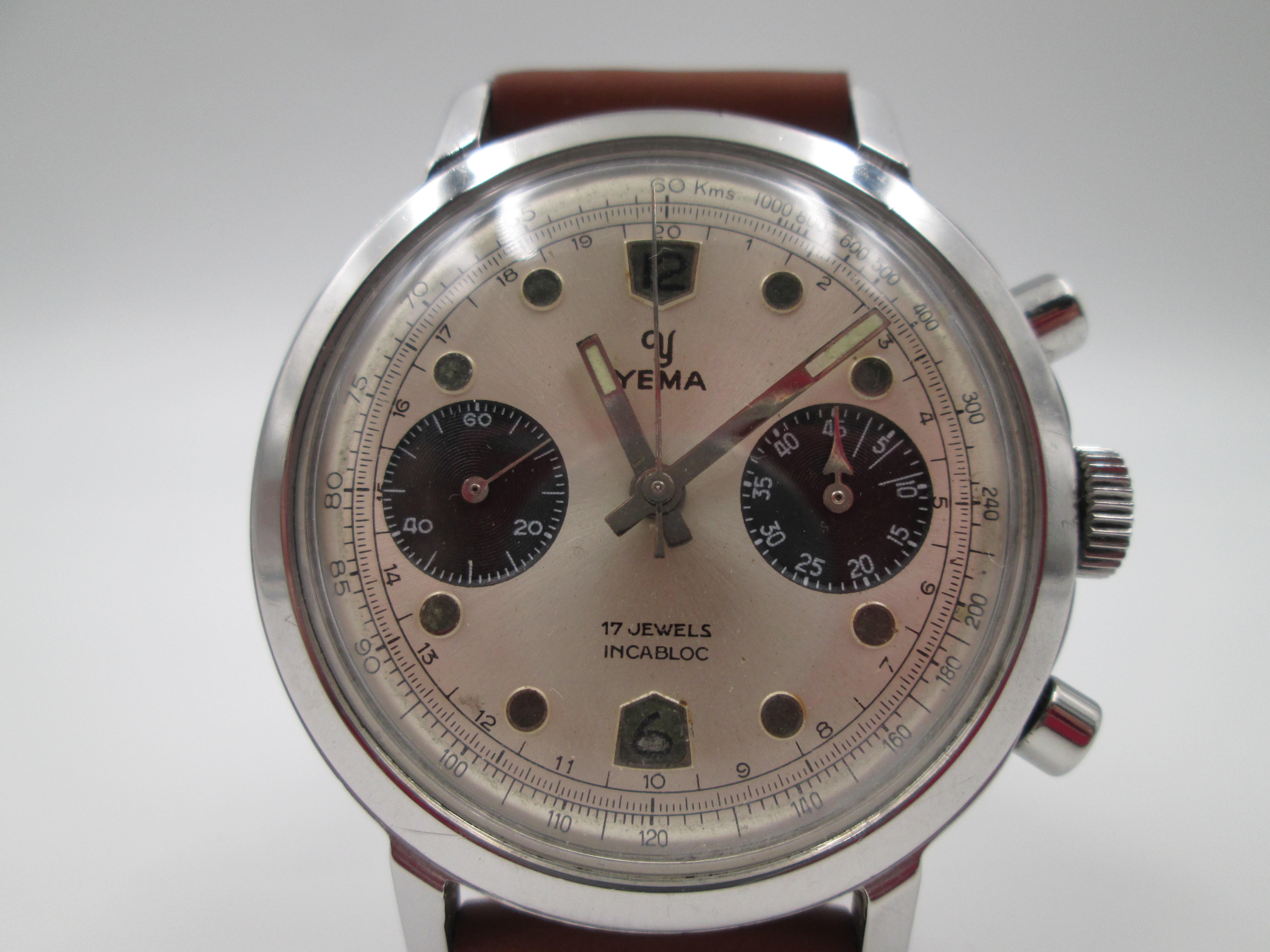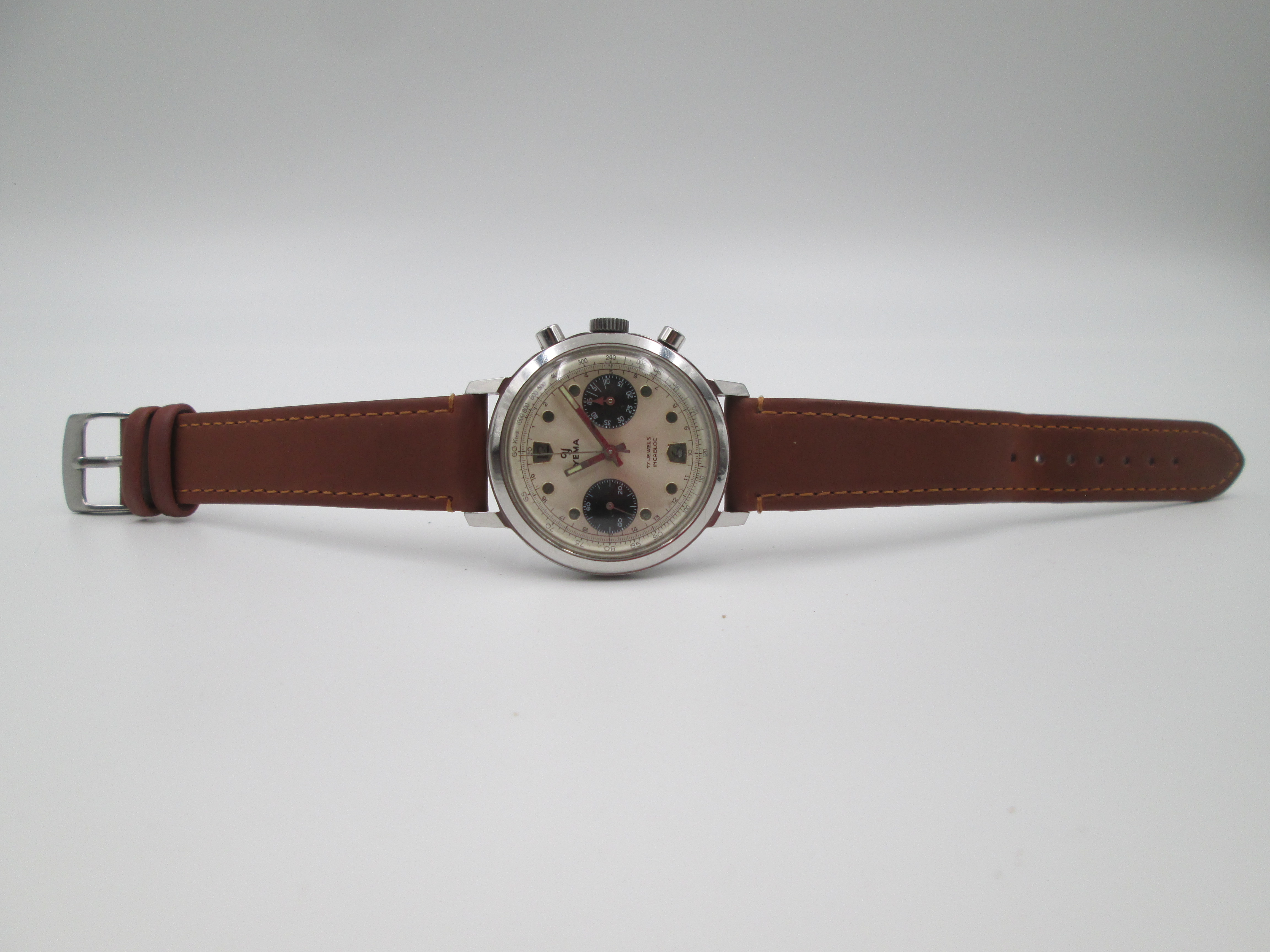 Raro cronógrafo de pulsera para caballero comercializado en los años sesenta por la firma francesa Yema.