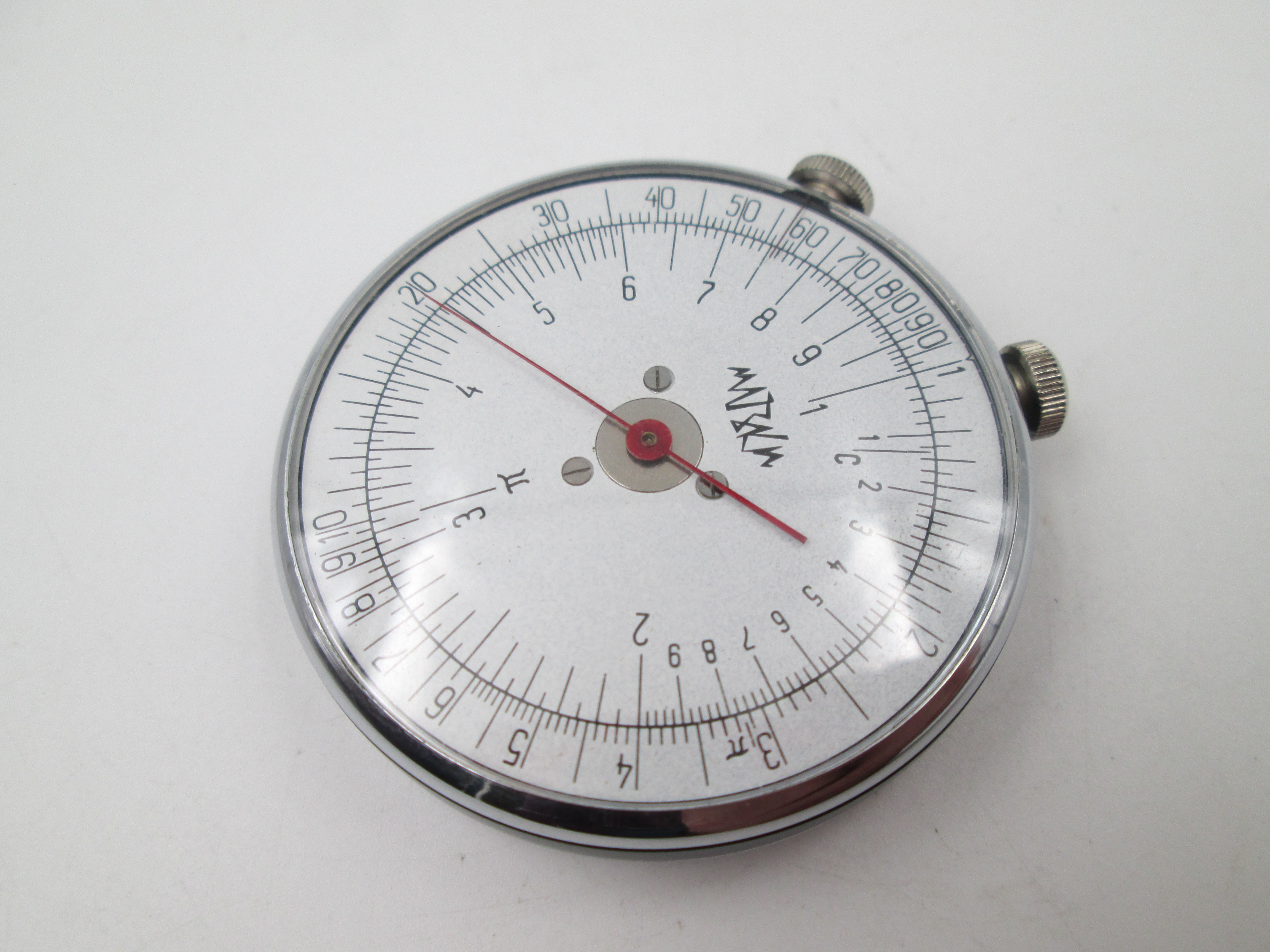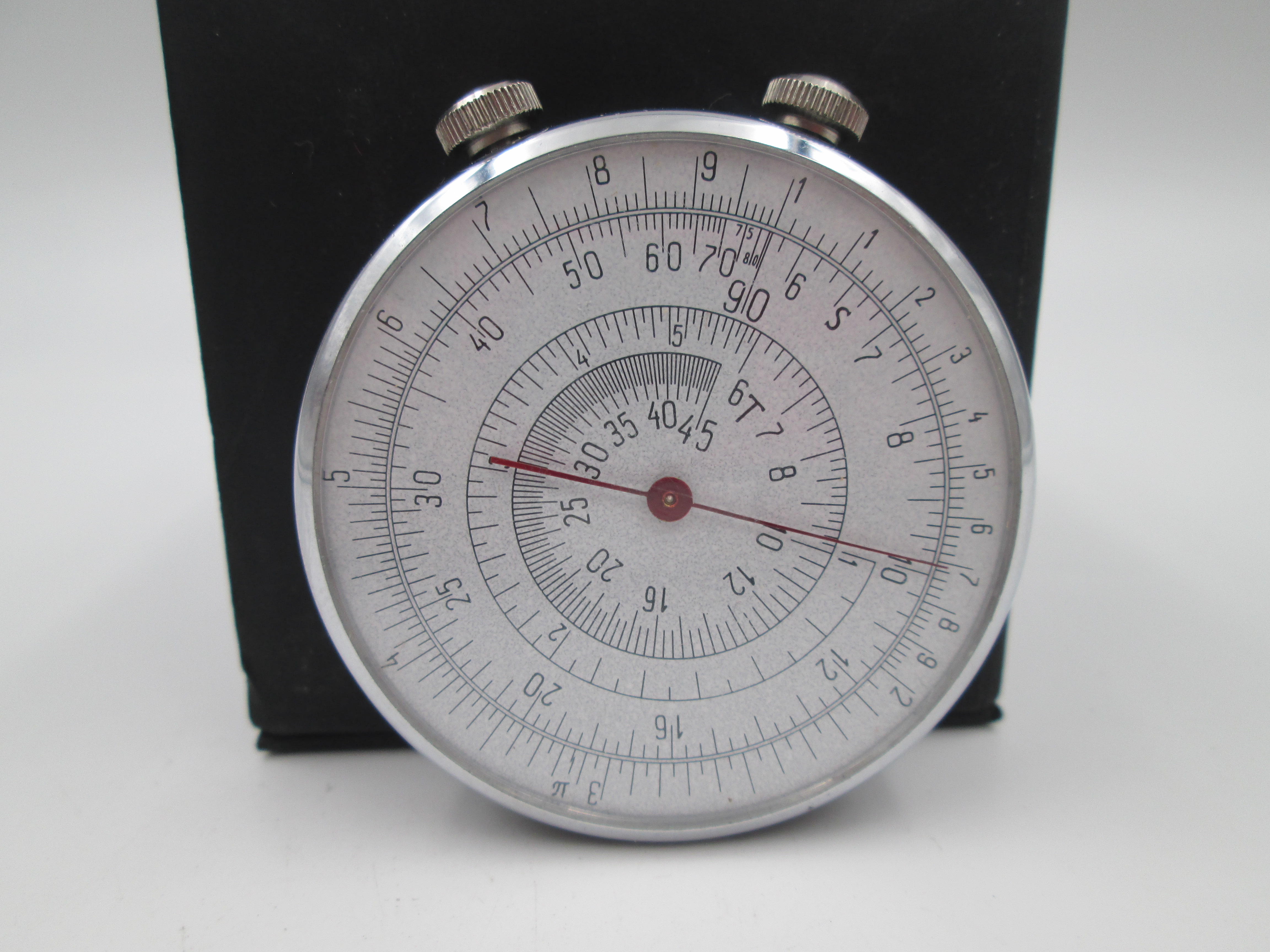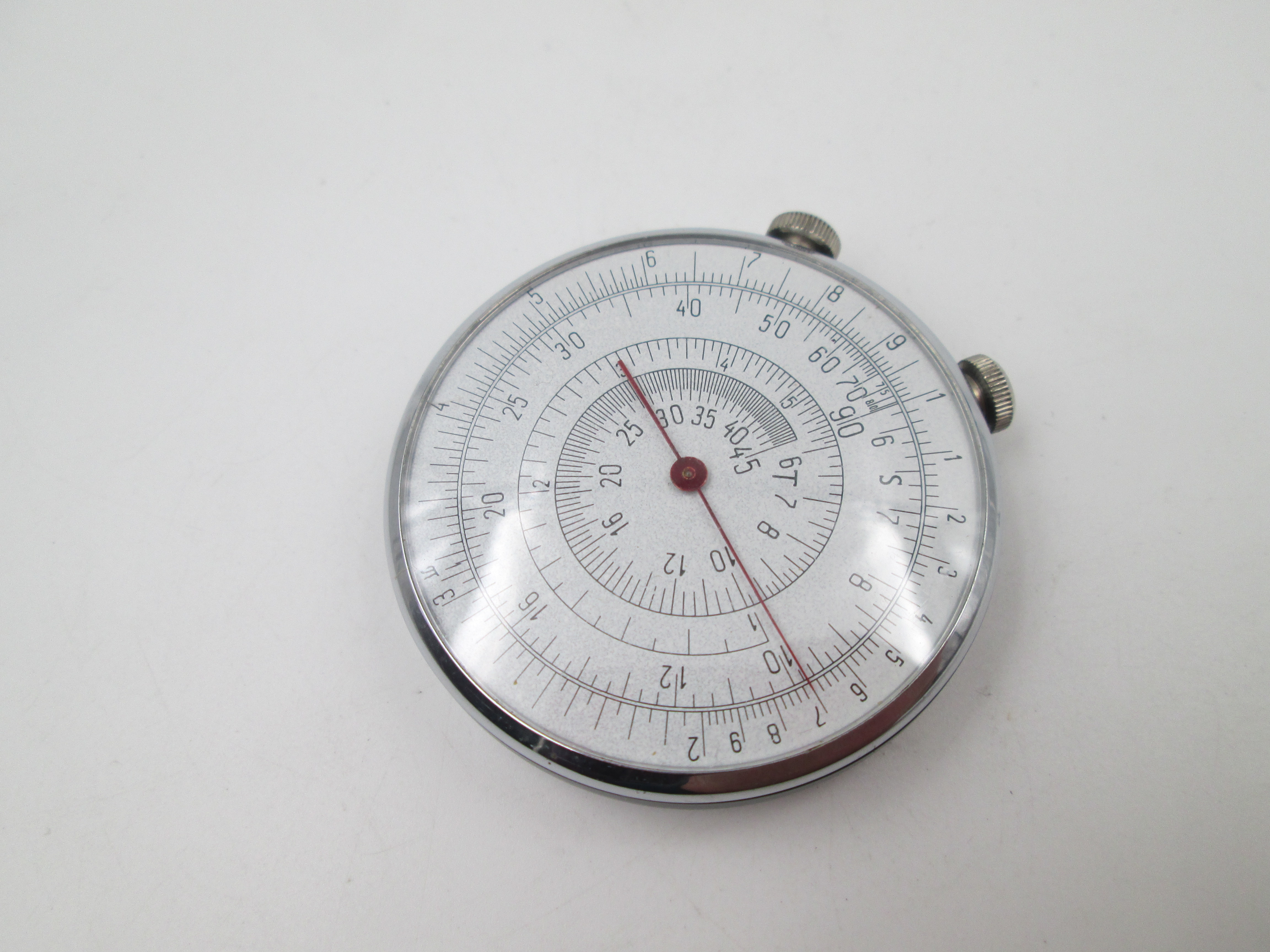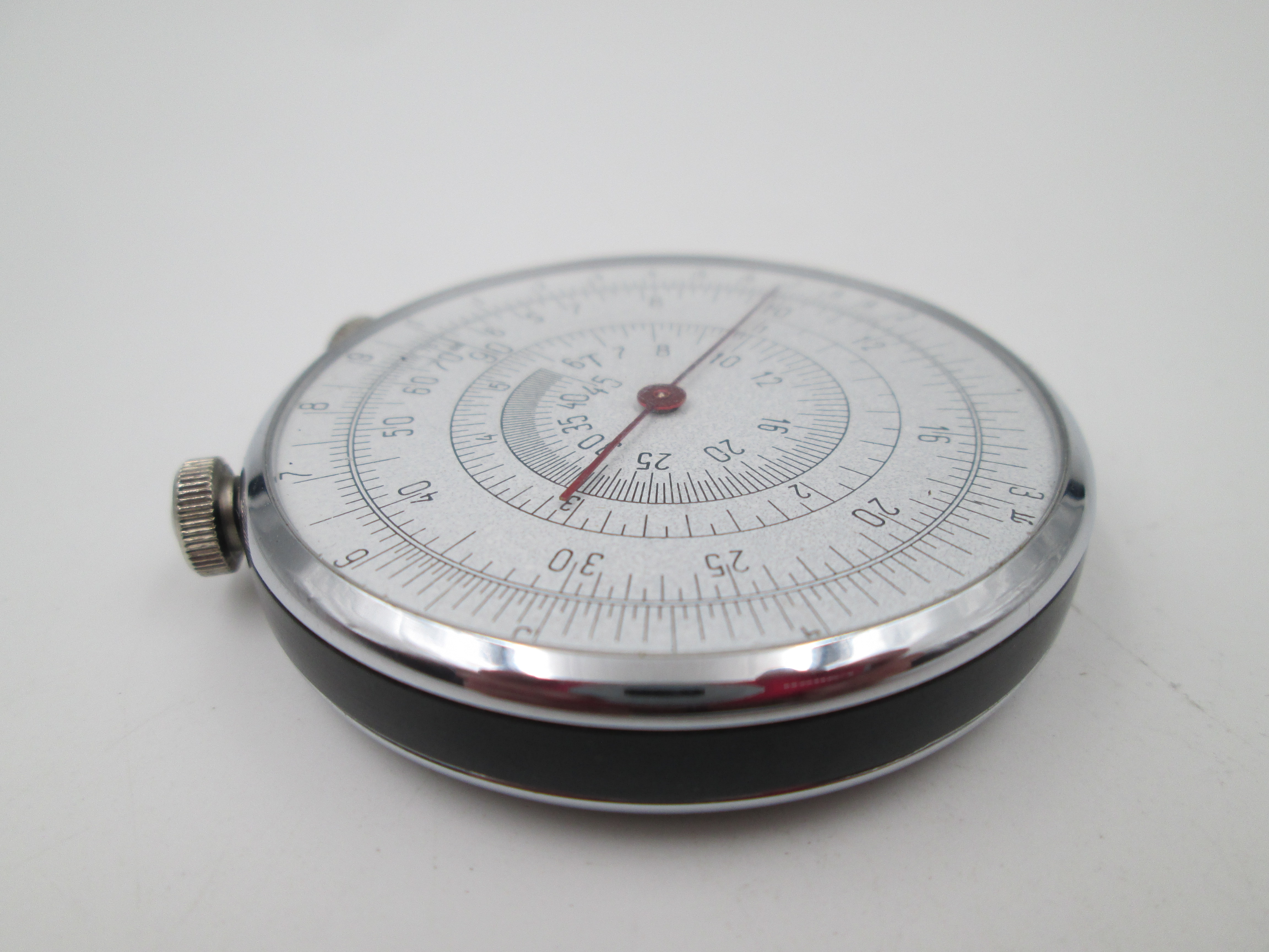 Regla de cálculo circular. Metal plateado y pavonado. Doble esfera blanca. URSS. 1960