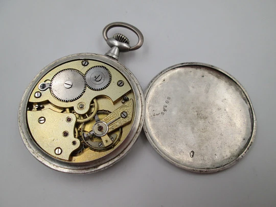 Reloj de bolsillo lepine. Plata de ley 800. Fondo decorado. Segundero. 1920