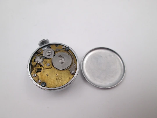 Reloj de solapa Rocar. Acero inoxidable. Cuerda manual. Dial gris. Suiza. 1930