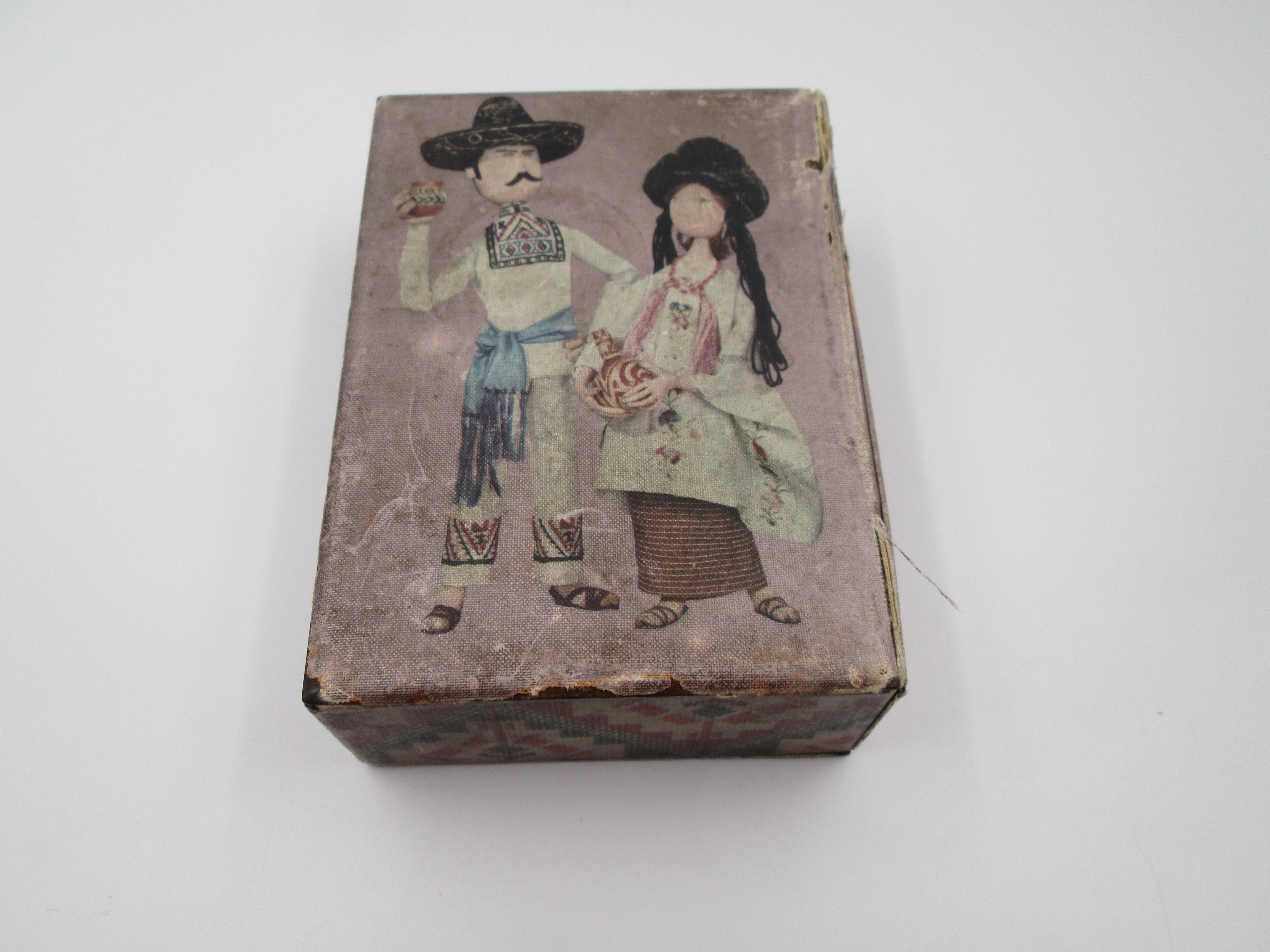 Presenta forma de libro ilustrado con imágenes de trajes tradicionales de México.