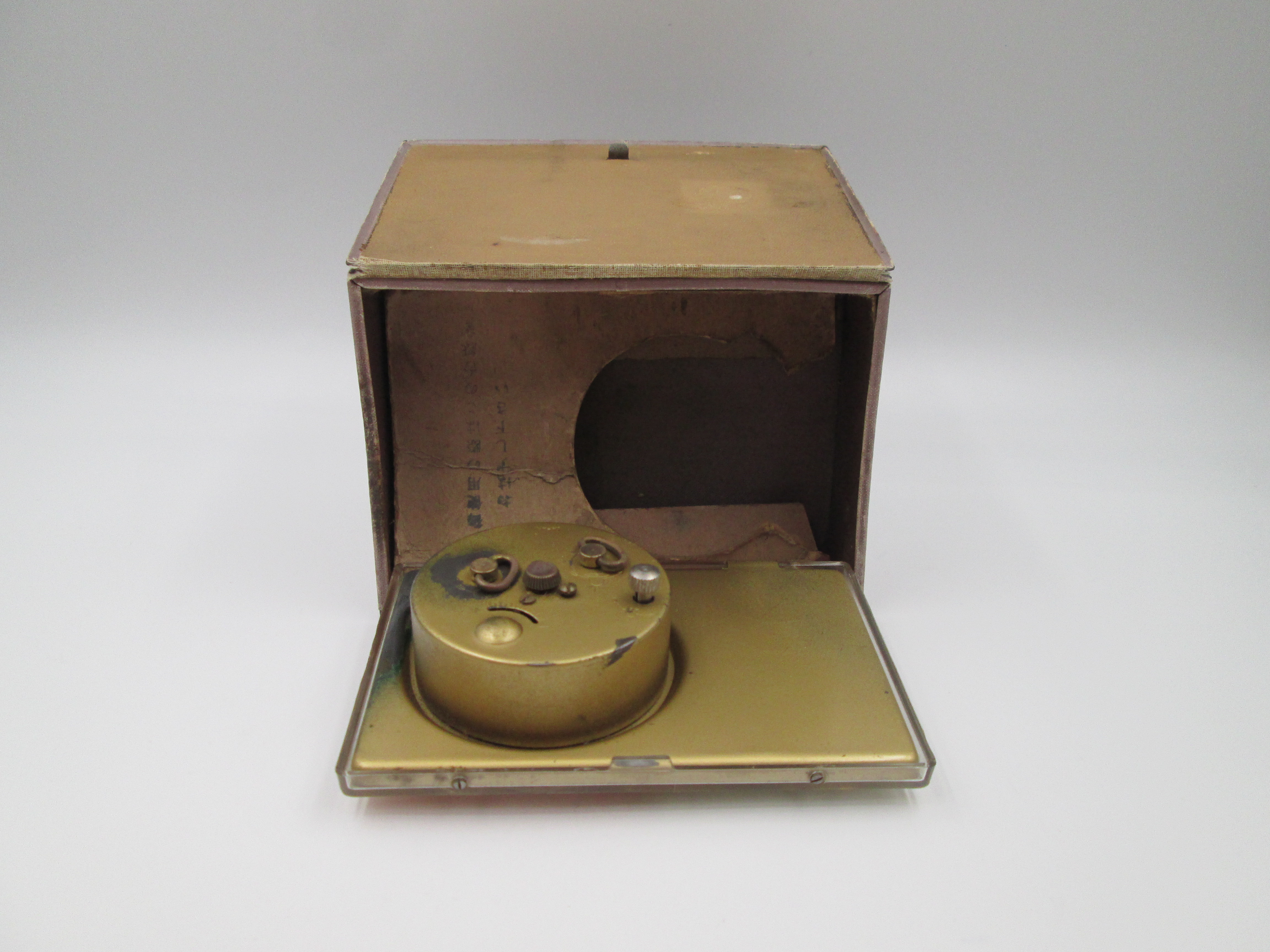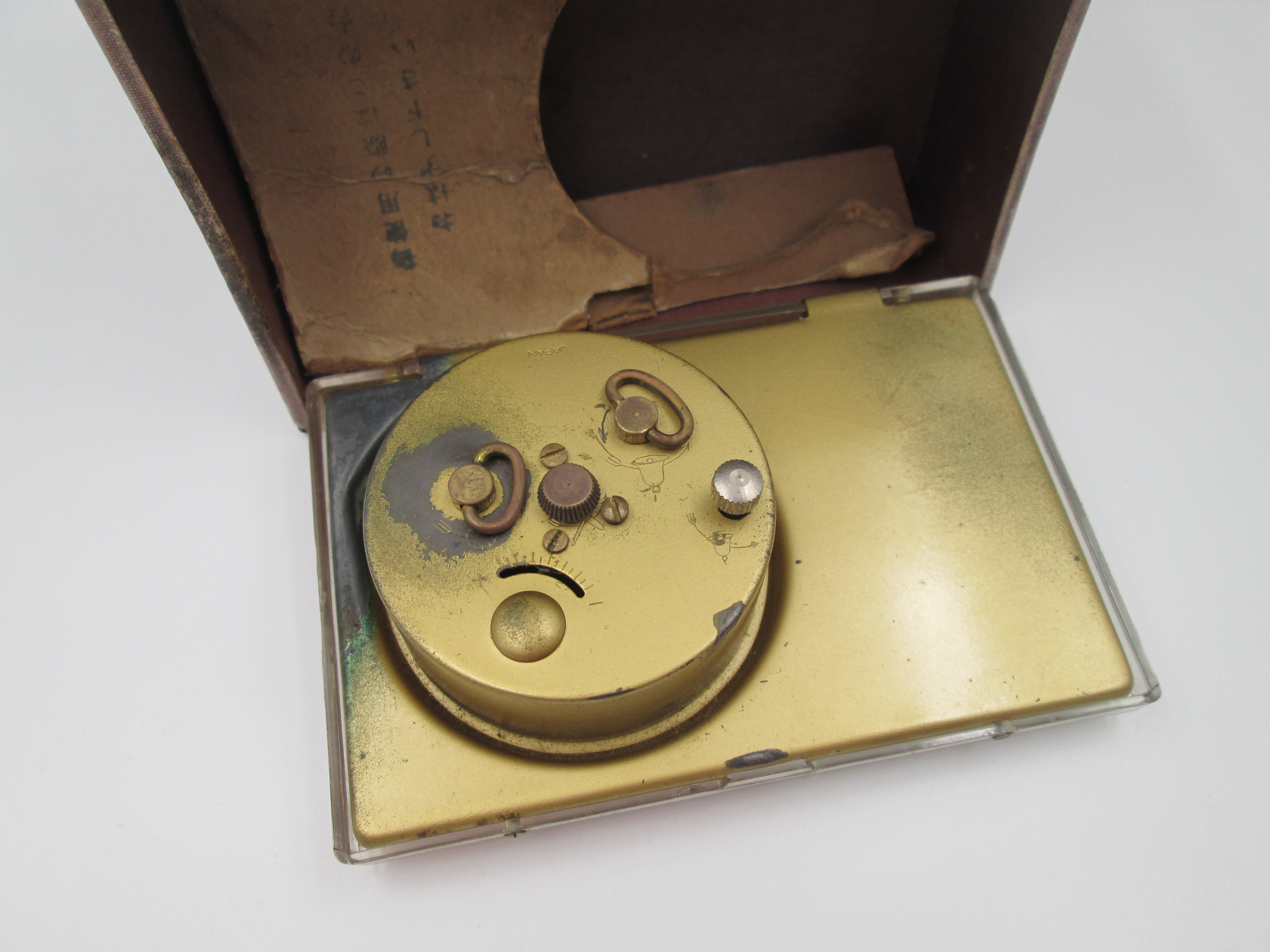Curioso reloj despertador de sobremesa / escritorio manufacturado en Japón alrededor de los años setenta.