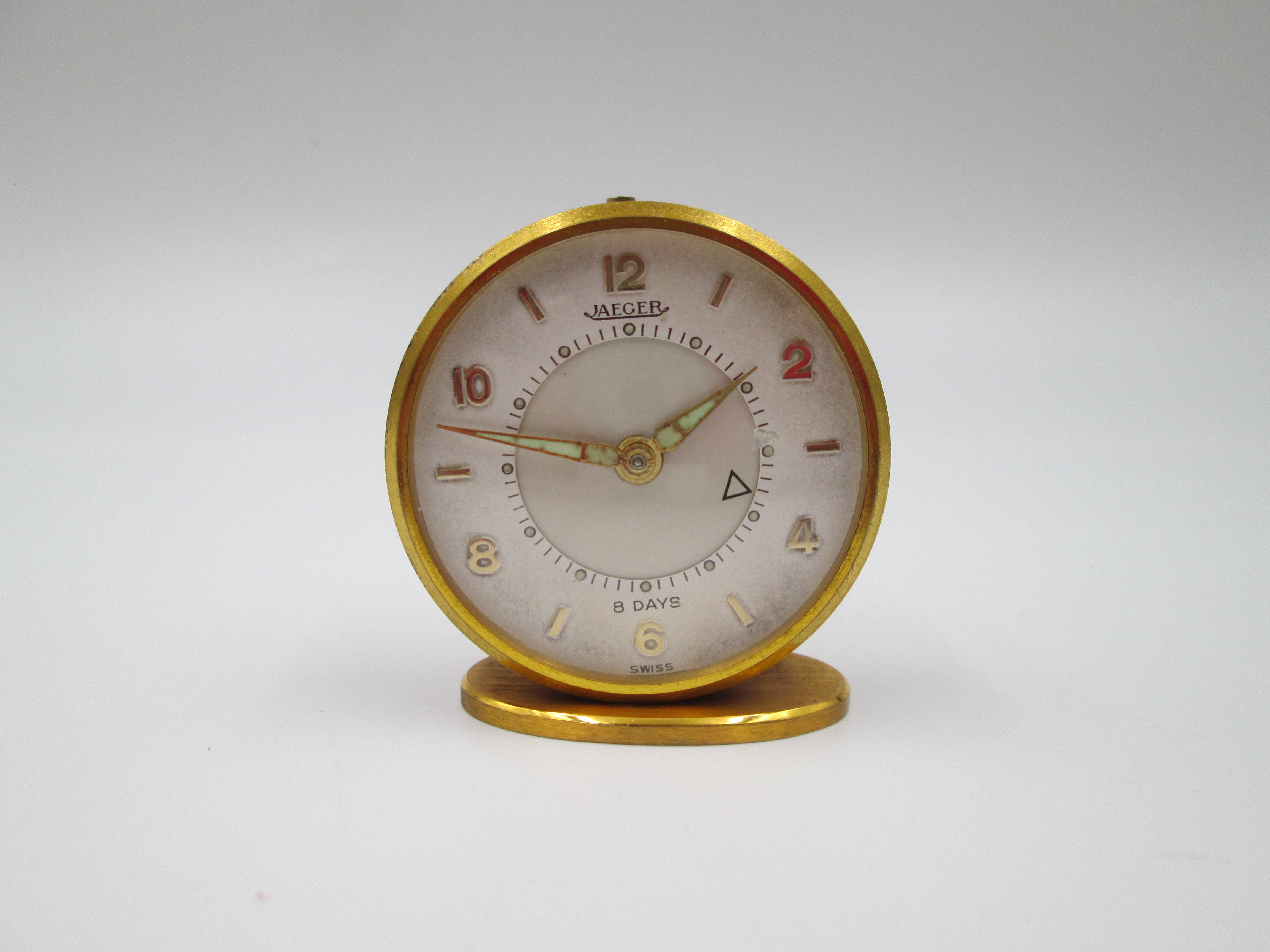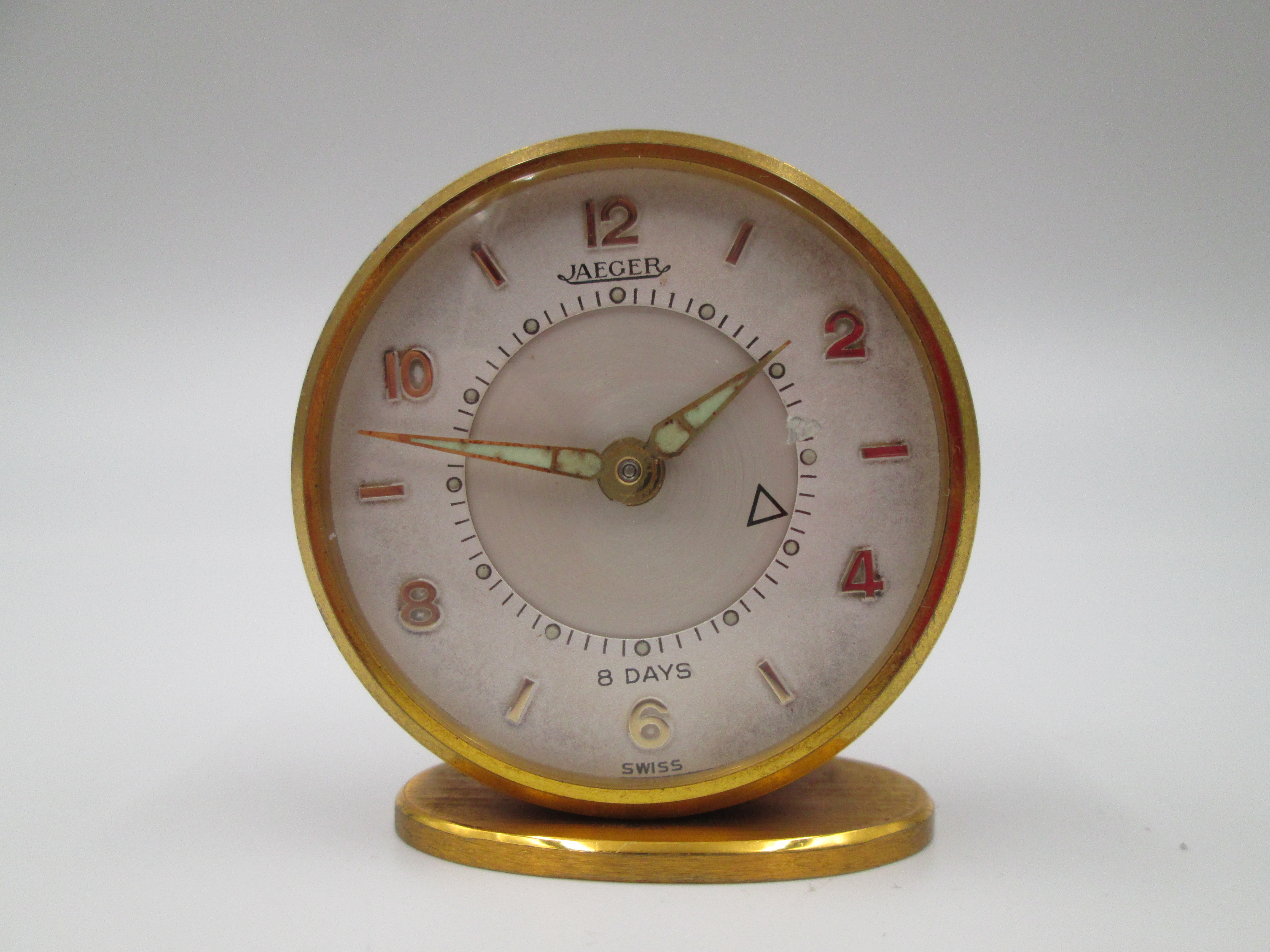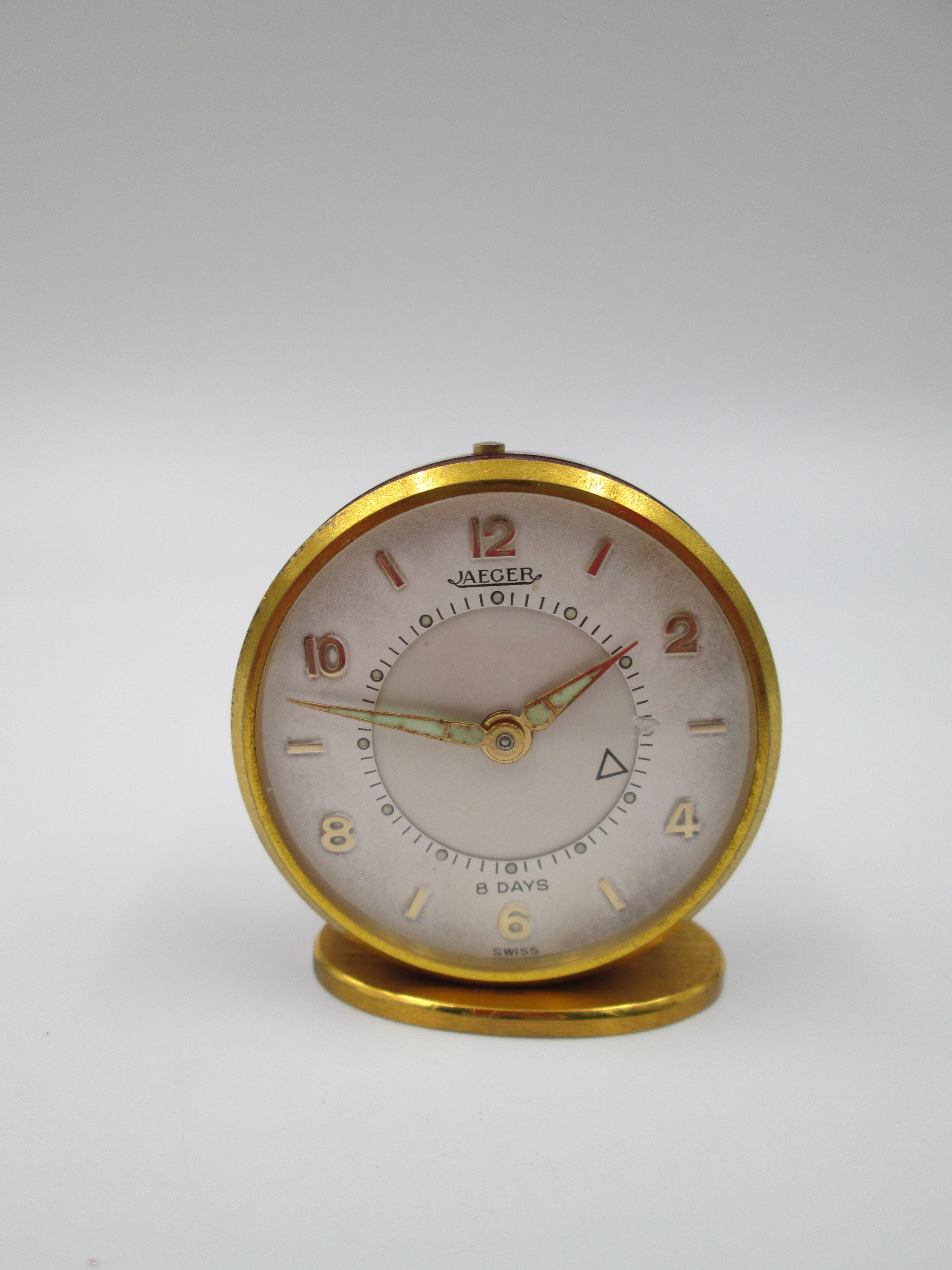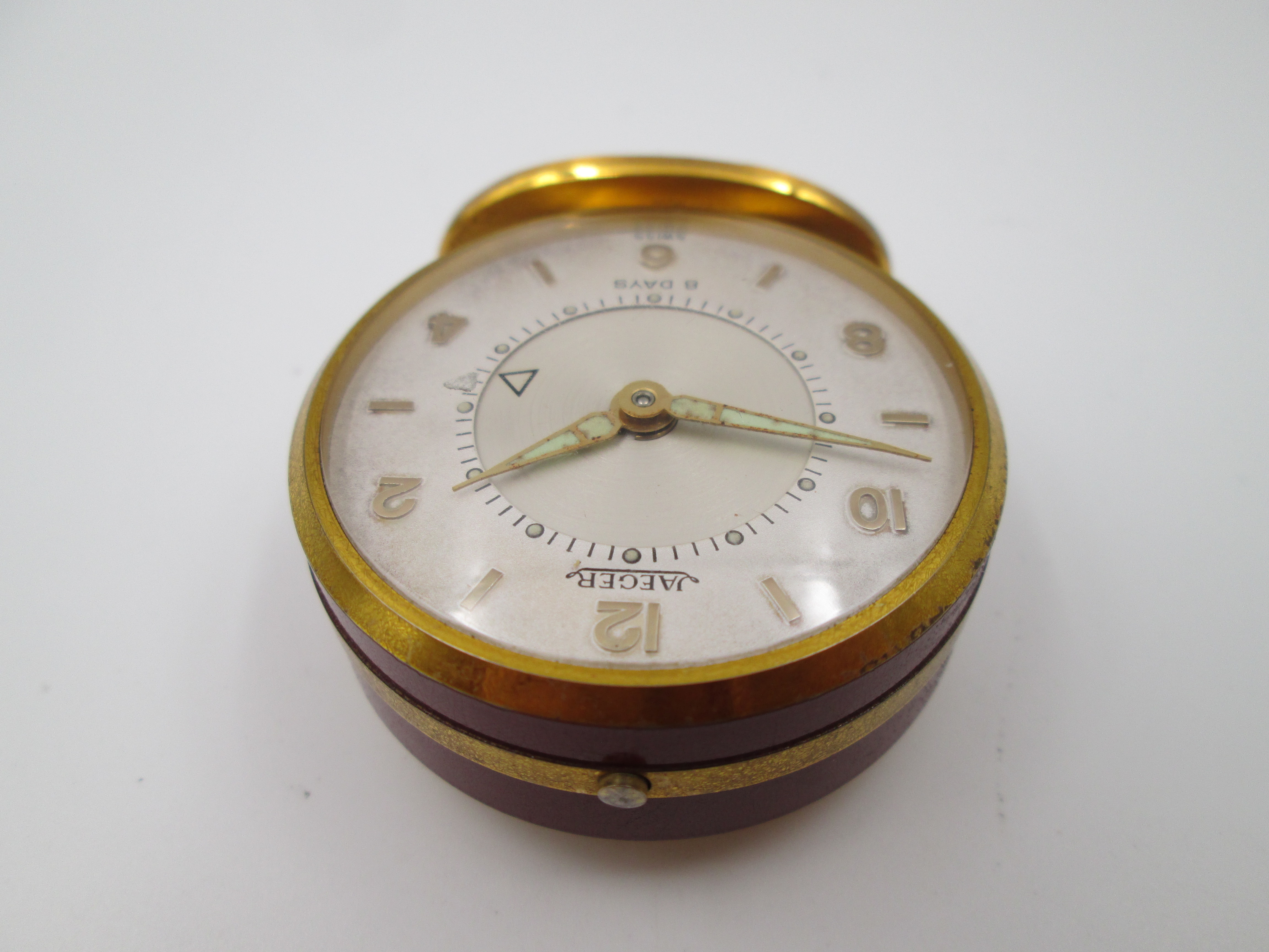 Reloj despertador de sobremesa y viaje Jaeger. Bronce y esmalte rojo. 8 días cuerda