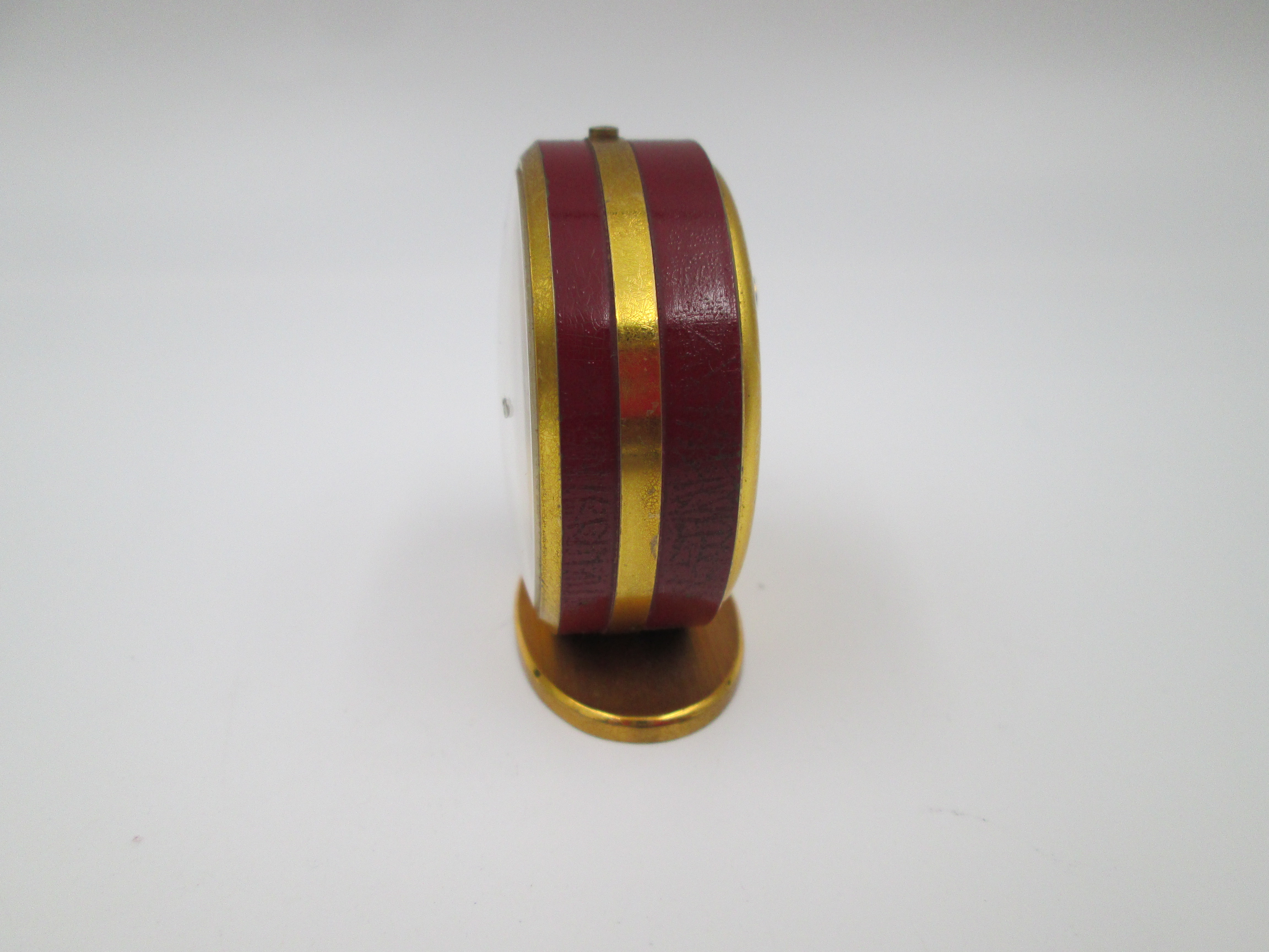 Elegante reloj despertador mecánico de sobremesa y viaje fabricado en Suiza en torno a los años setenta.