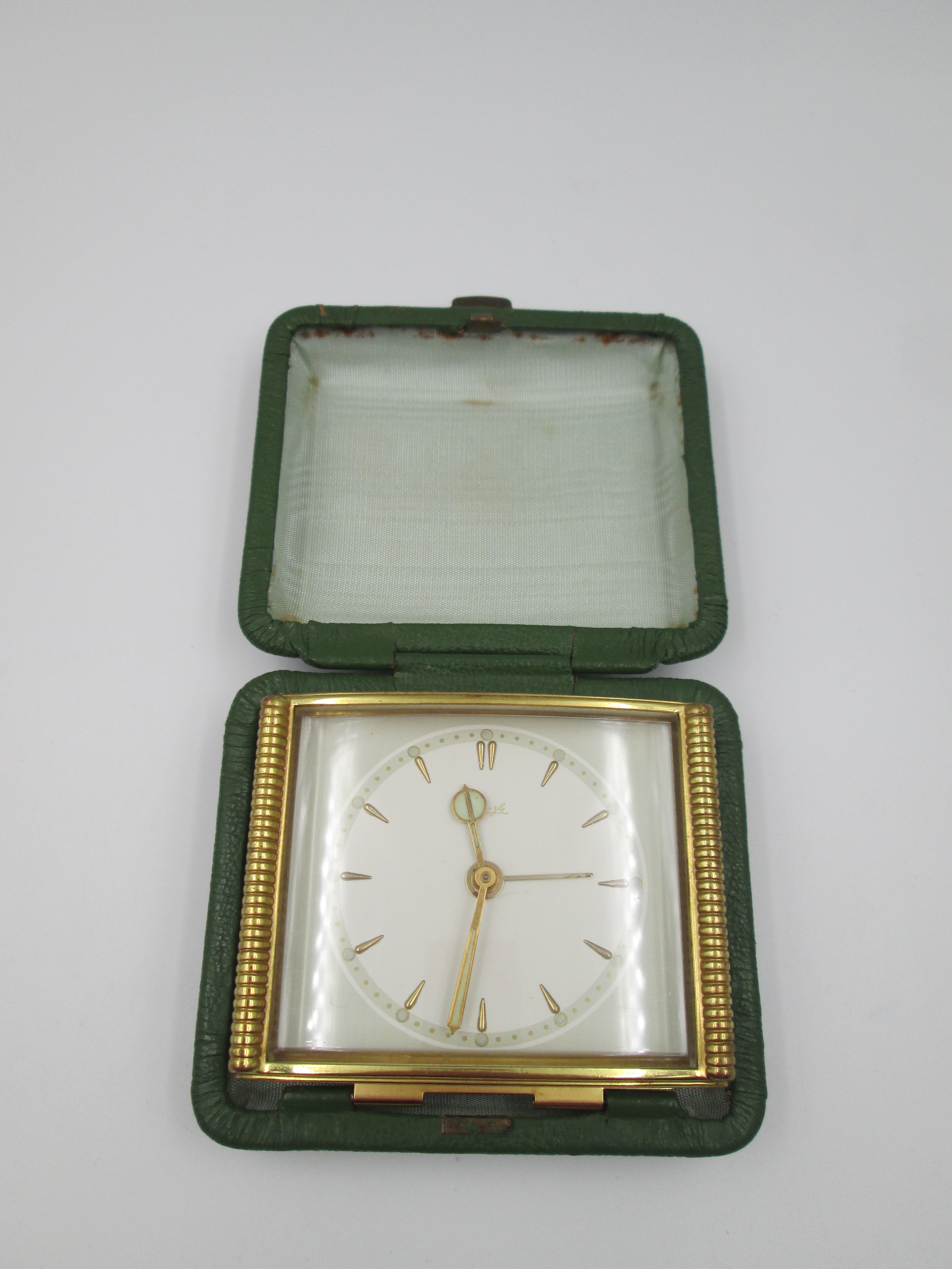 Reloj despertador de sobremesa y viaje fabricado en Alemania en torno a los años setenta.