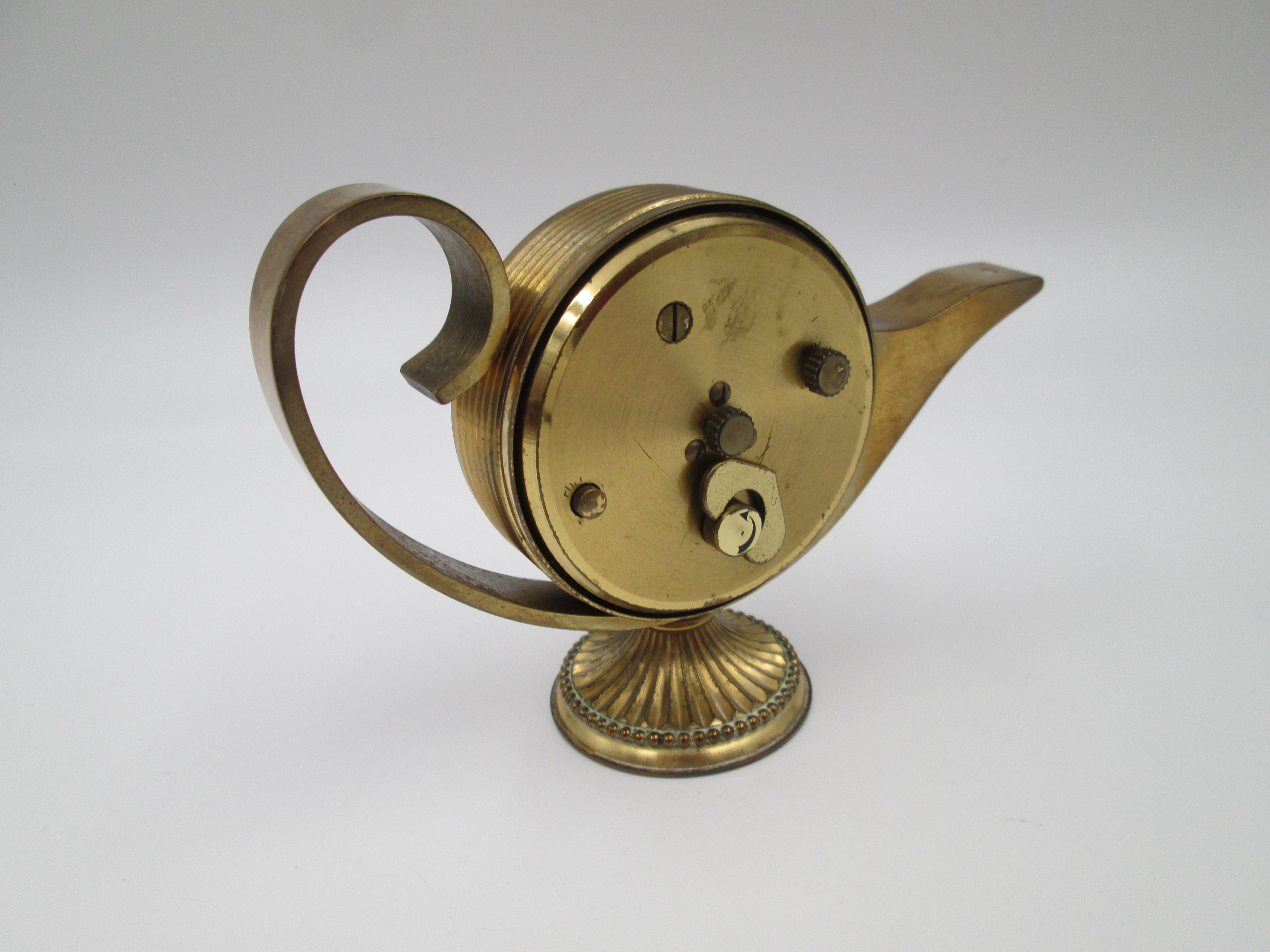 Reloj de sobremesa lámpara aceite Swiza 8 días cuerda con alarma. Bronce. 1970