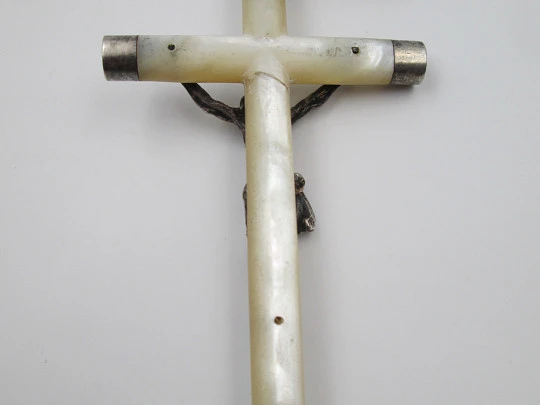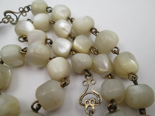 Rosario nácar y plata vermeil. Corona María filigrana y crucifijo gran tamaño
