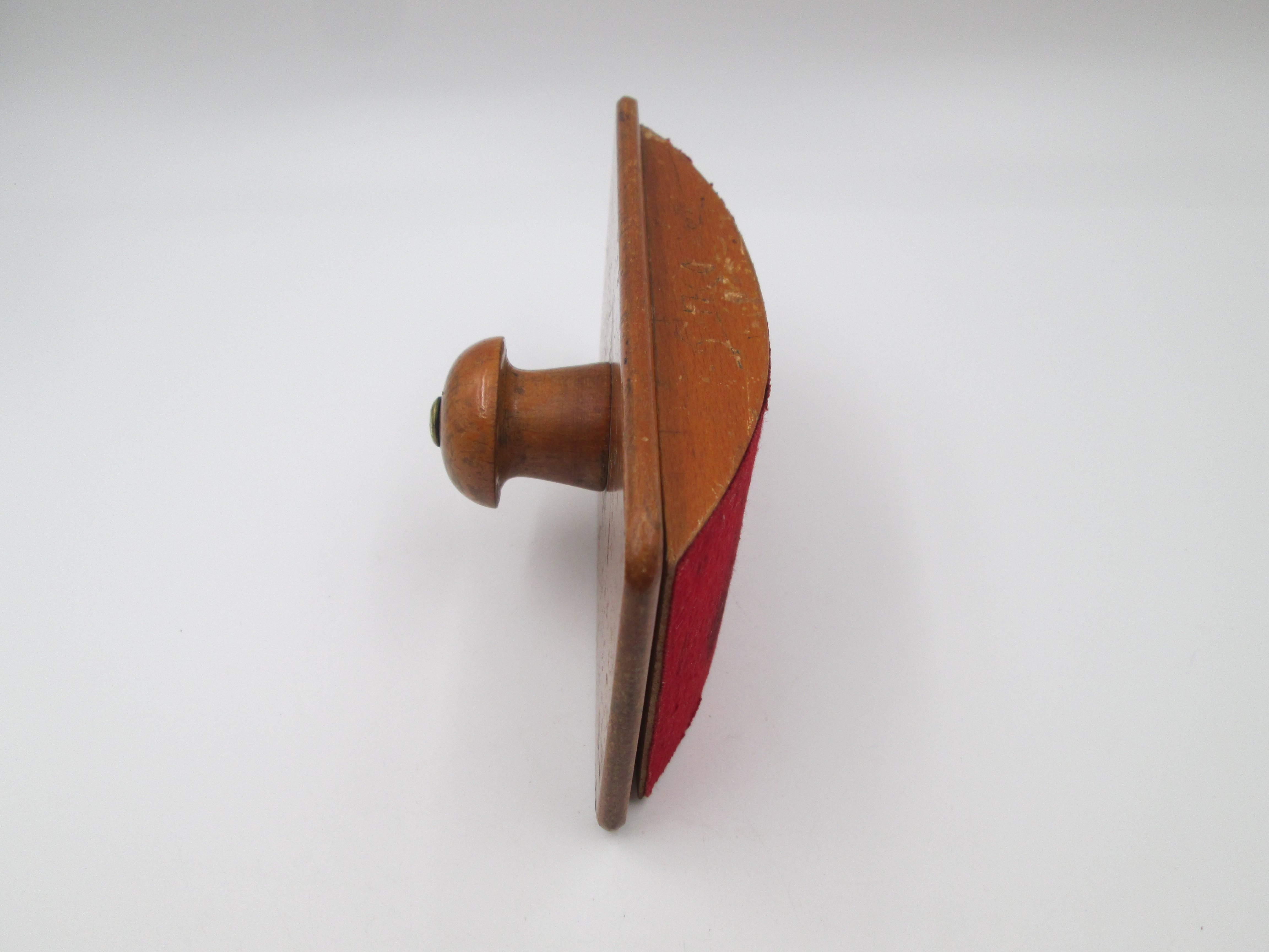 Secante de escritorio y despacho. Madera, bronce y tela absorbente roja. Europa. 1950