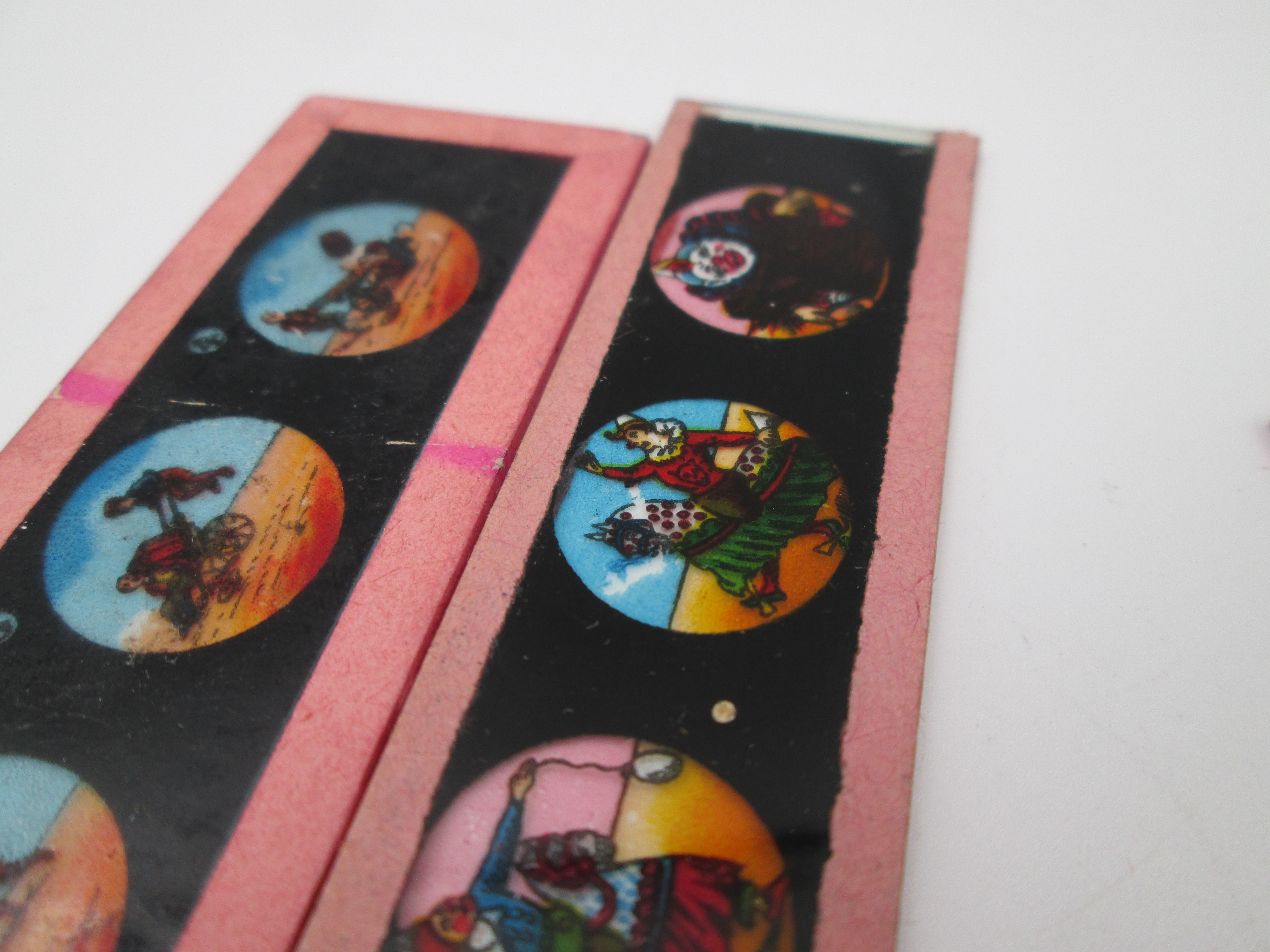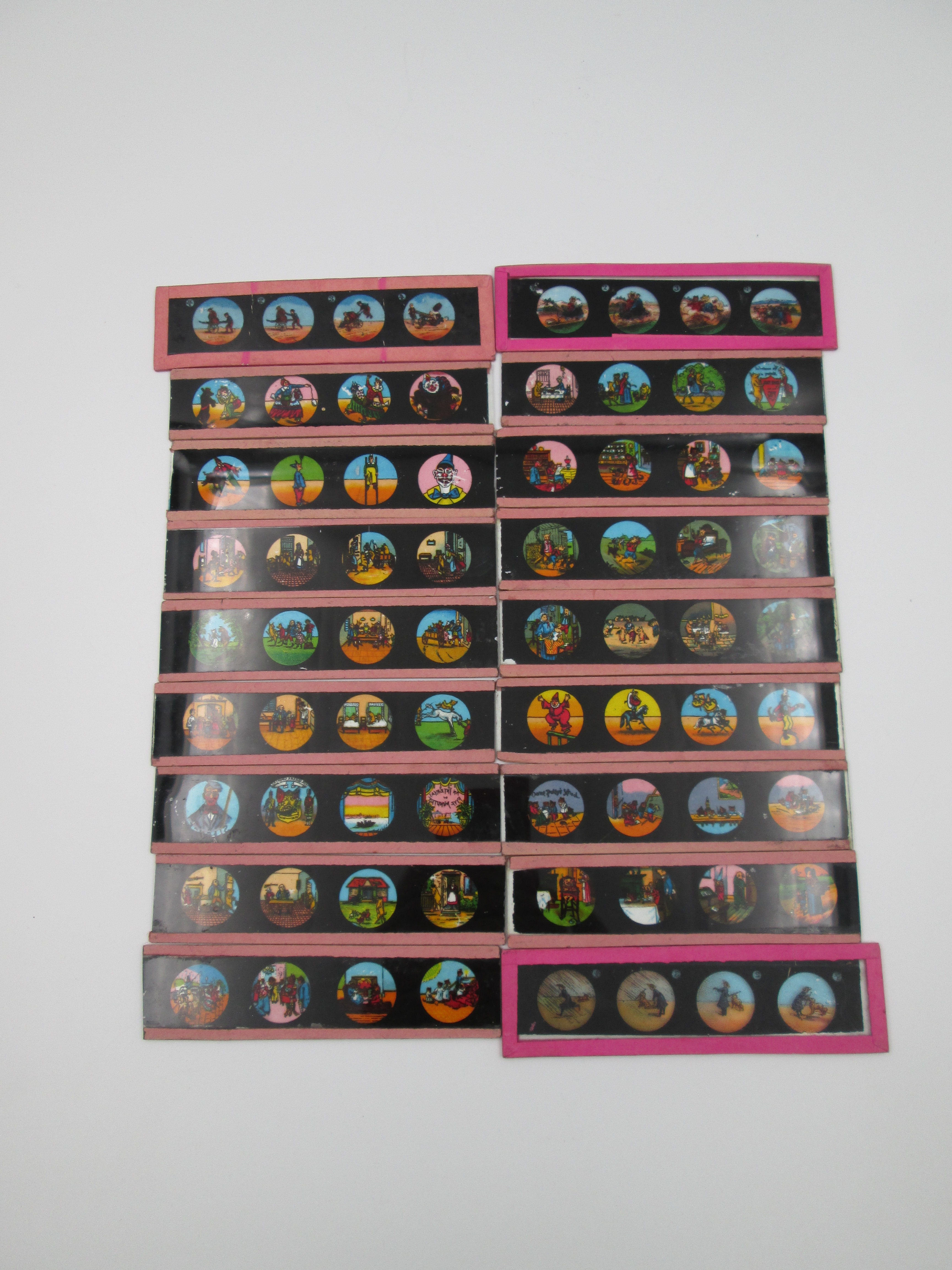 Set de cristales para linterna mágica comercializados en Alemania en torno a la década de 1890.