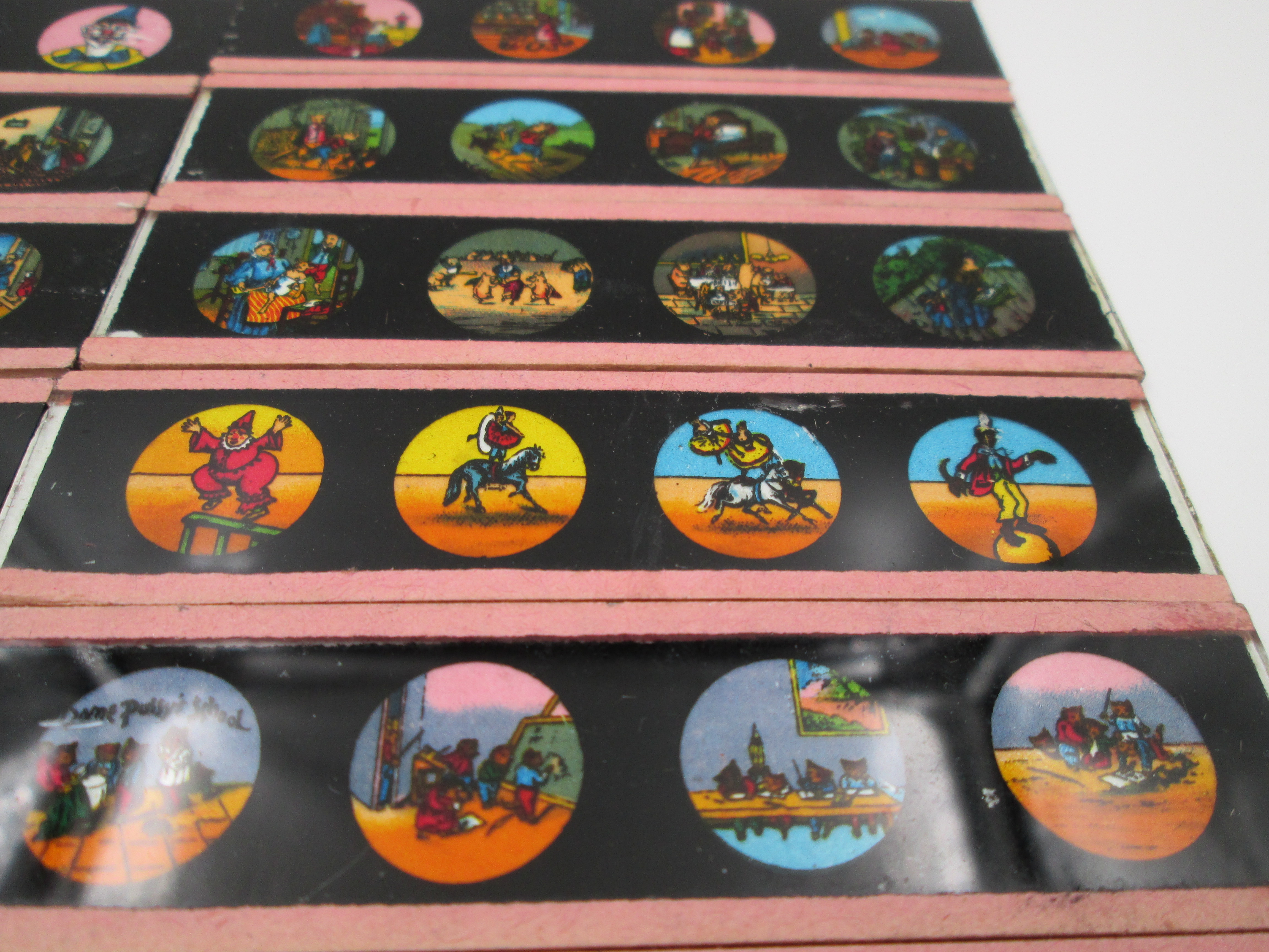 Set 18 cristales pequeño tamaño para linterna mágica. Escenas infantiles color. Alemania