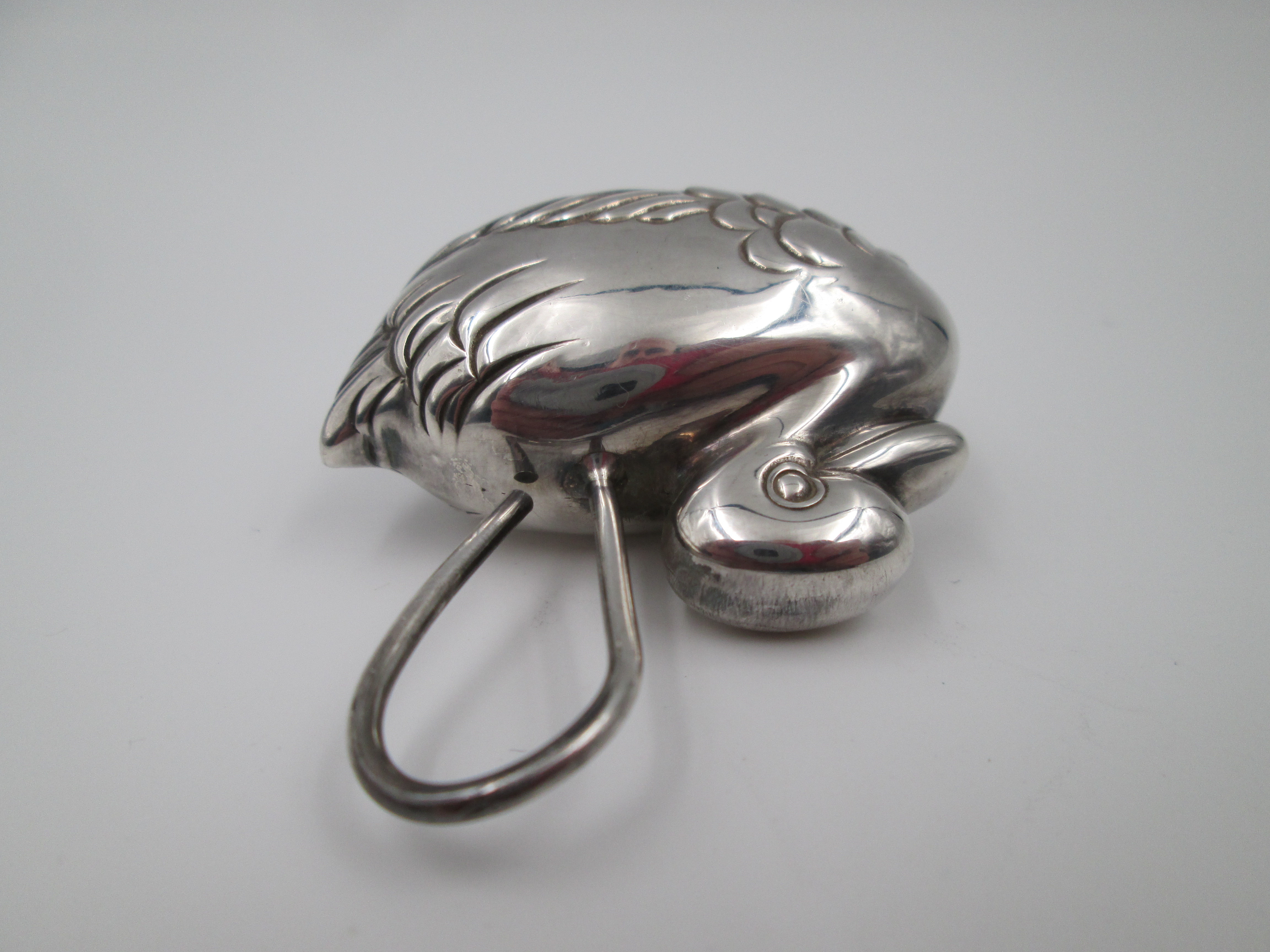 La unidad viene realizada en plata de ley contrastada de 925 milésimas y representa la figura de un pato nadando.
