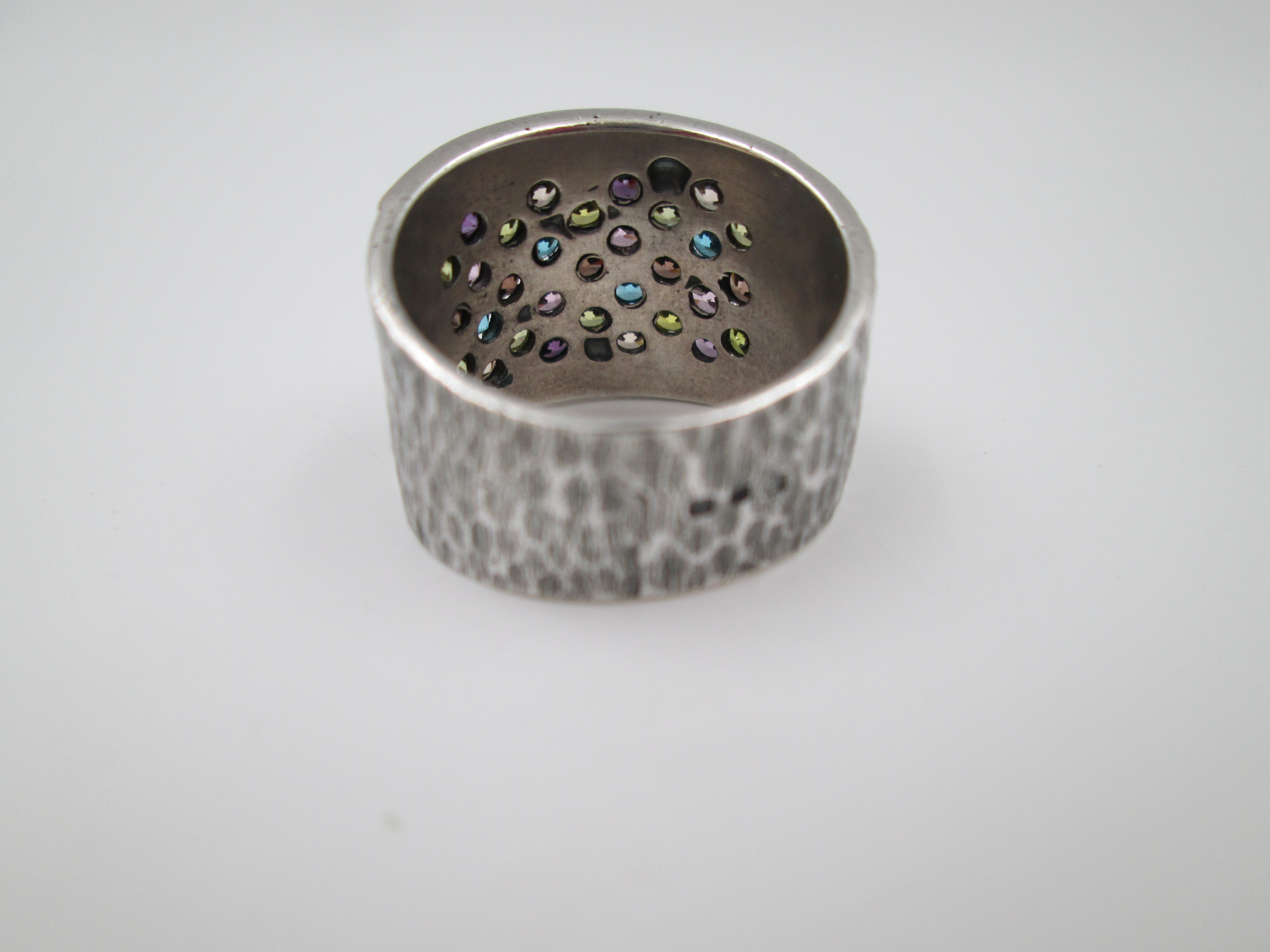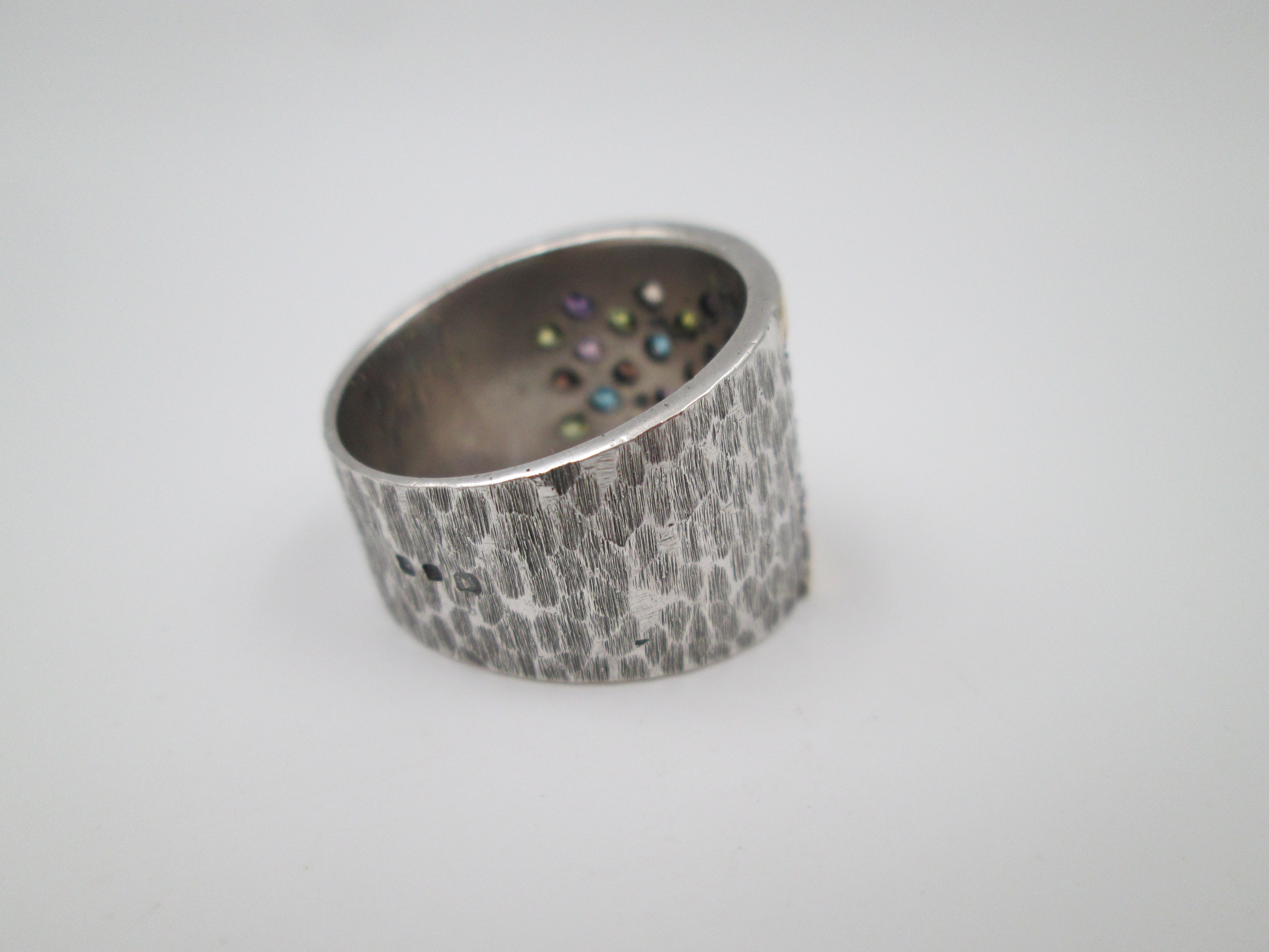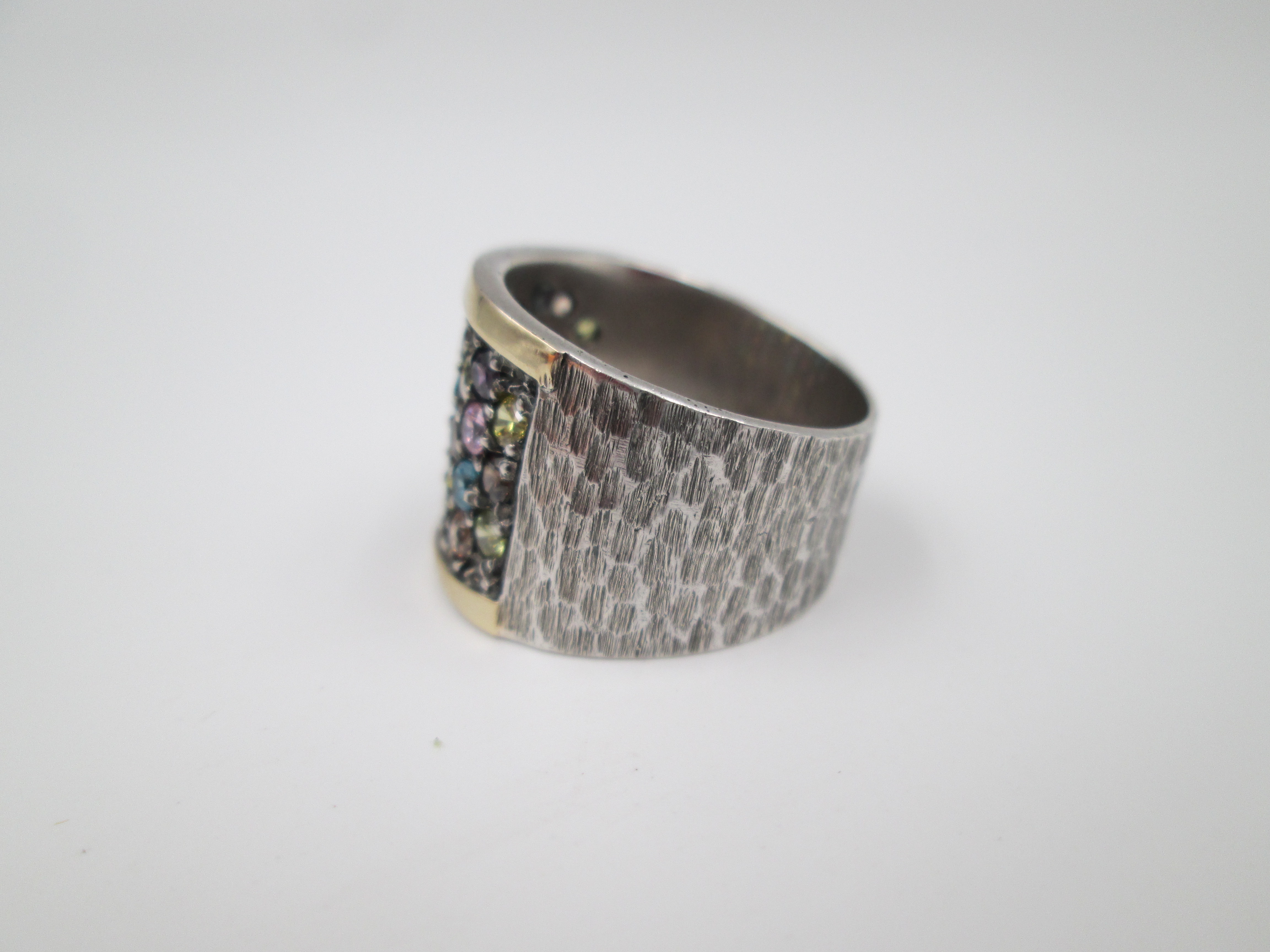 Sortija ancha Tutti Frutti para mujer. Plata de ley y oro amarillo. Martele. Portugal. 2000