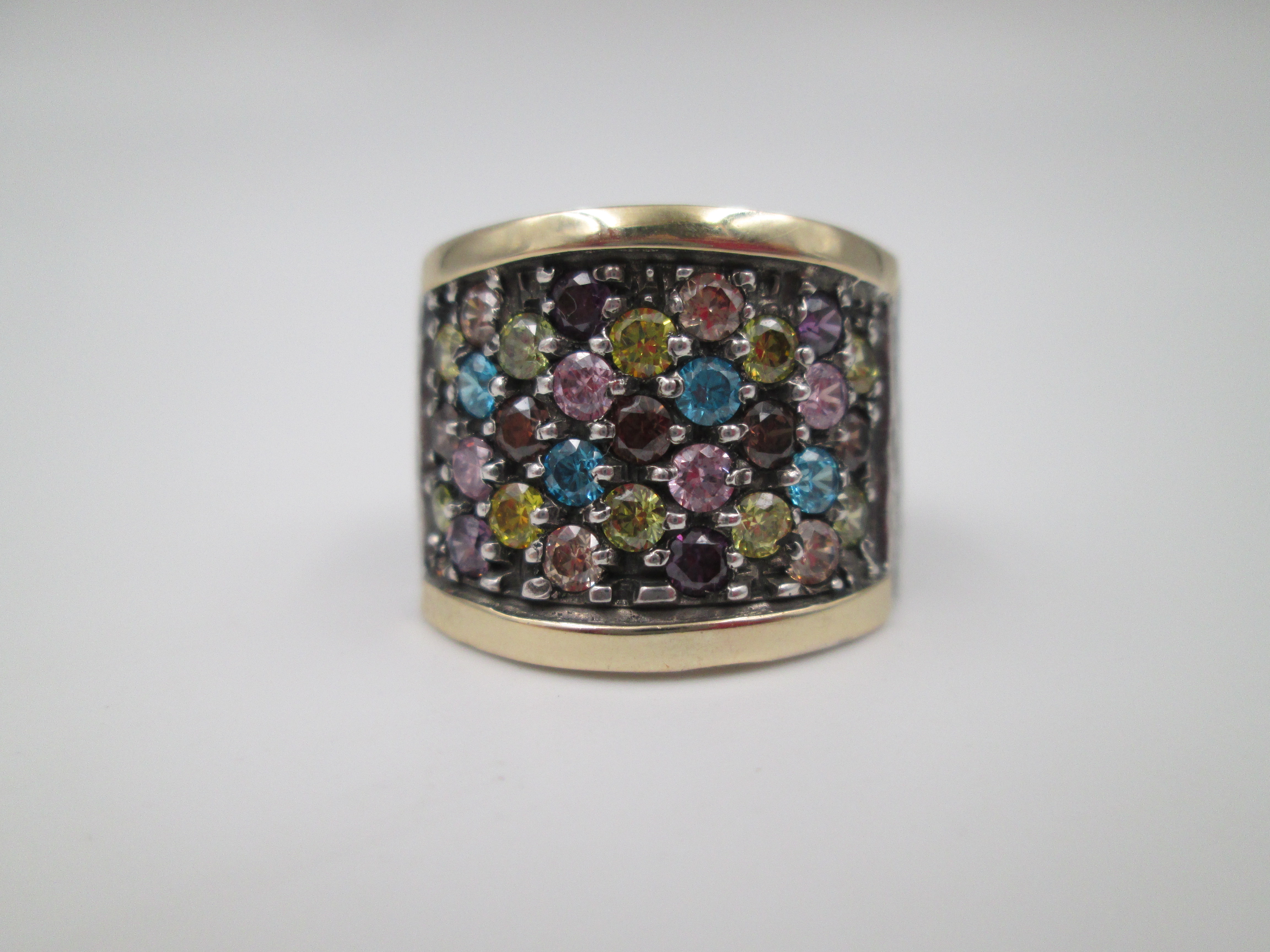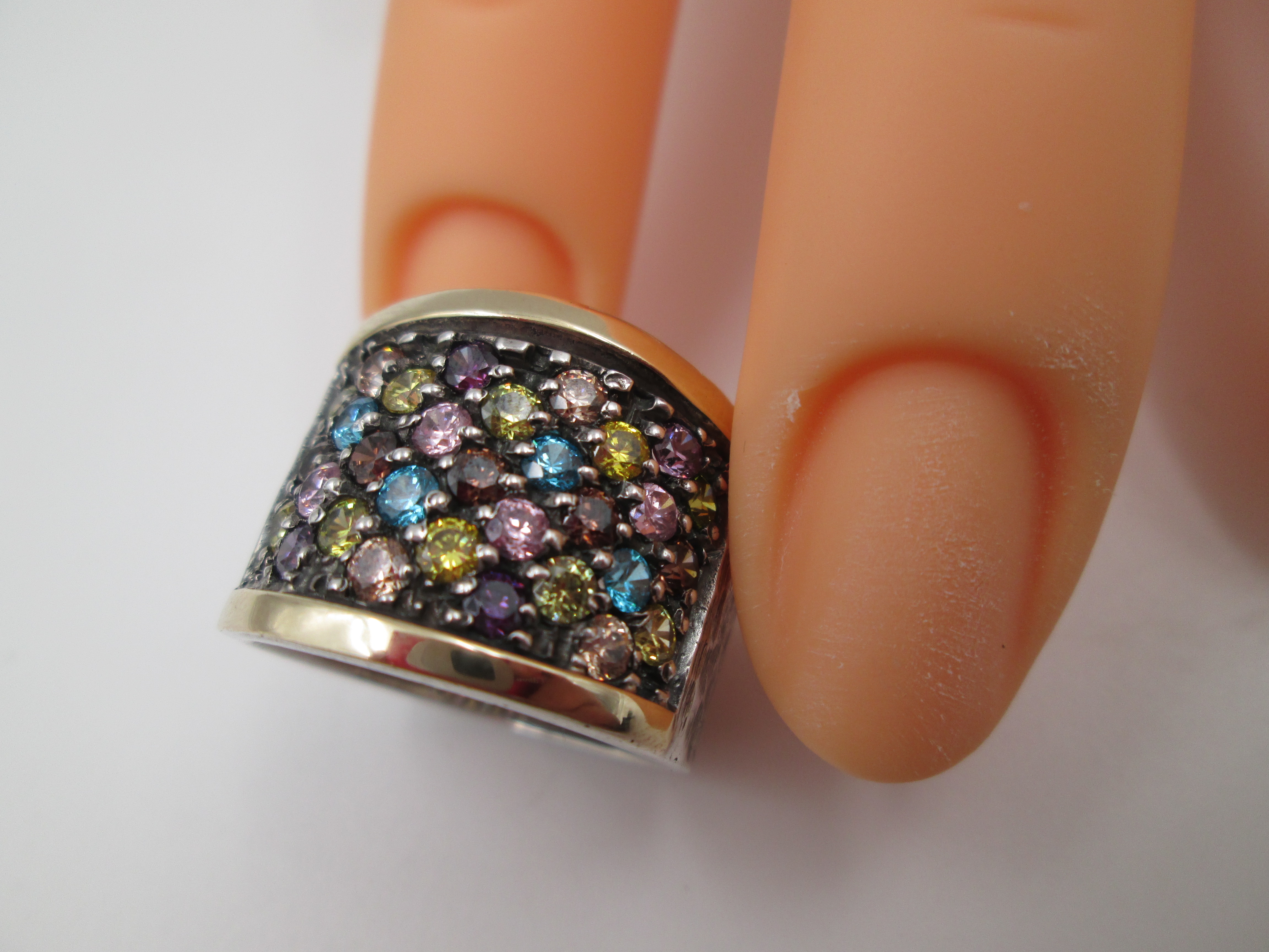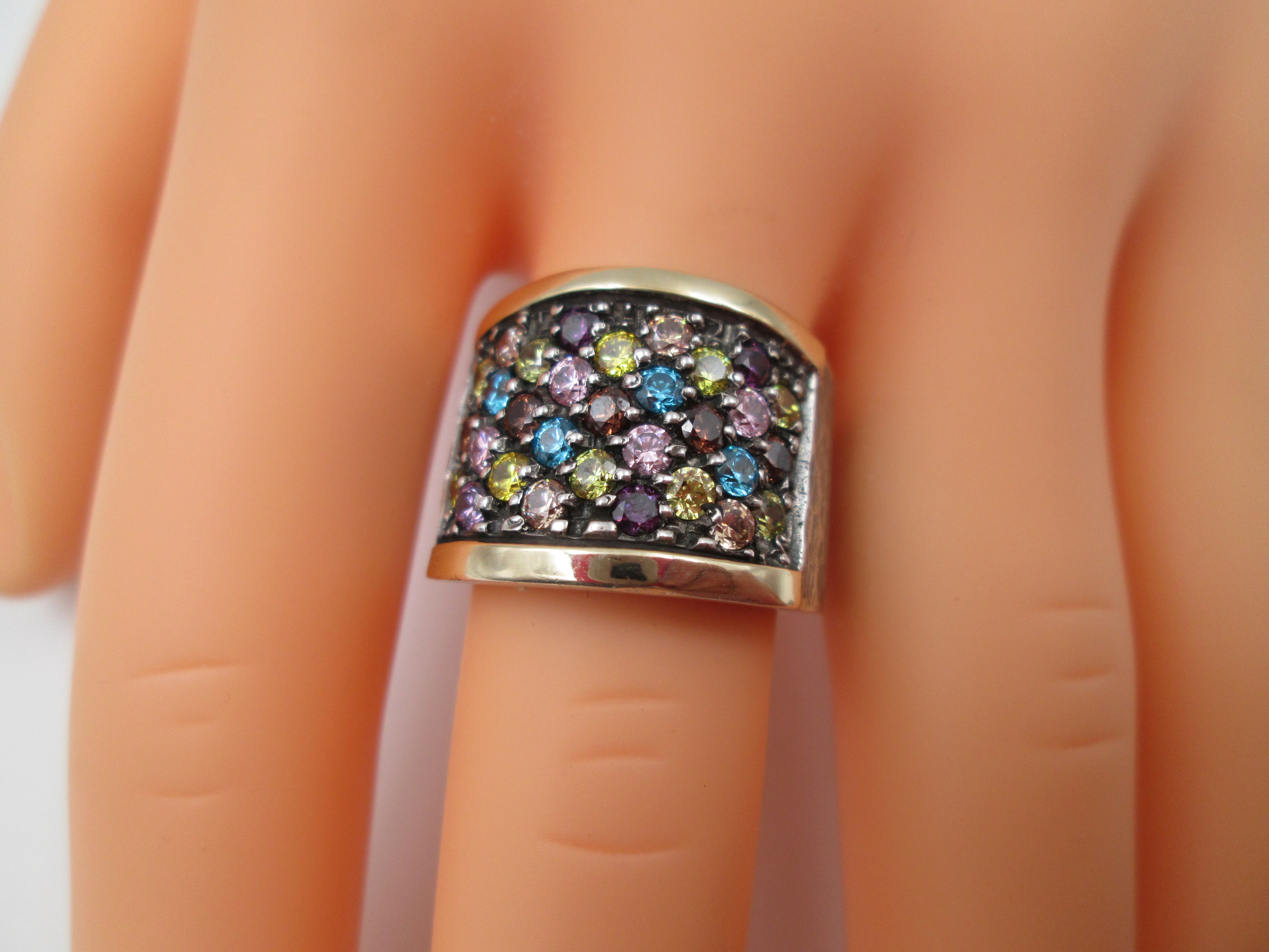 Sortija ancha Tutti Frutti para mujer. Plata de ley y oro amarillo. Martele. Portugal. 2000