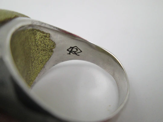 La unidad, correspondiente a la talla 17, viene realizada en plata de ley contrastada de 925 milésimas y laminada en oro en la parte superior.
