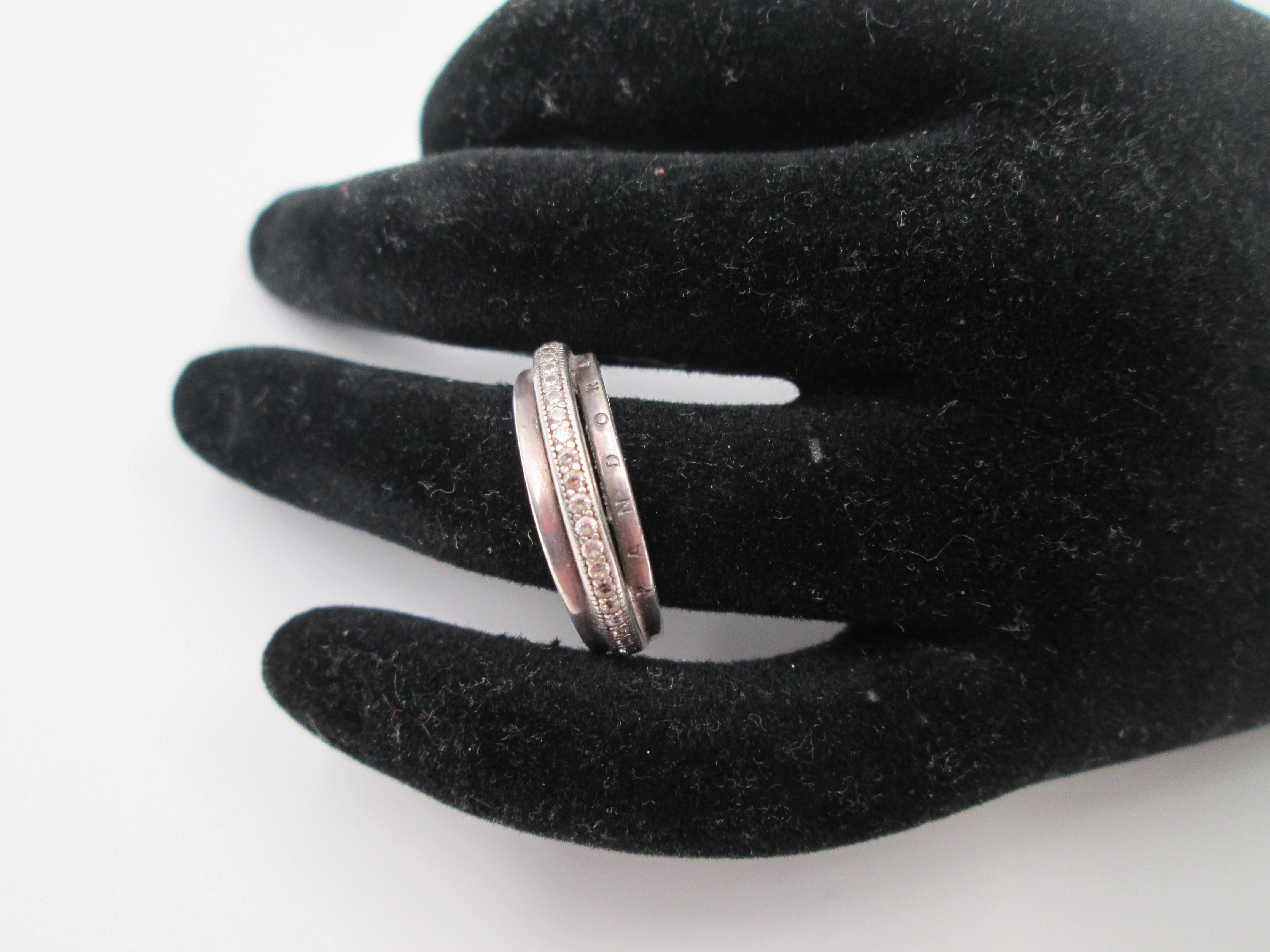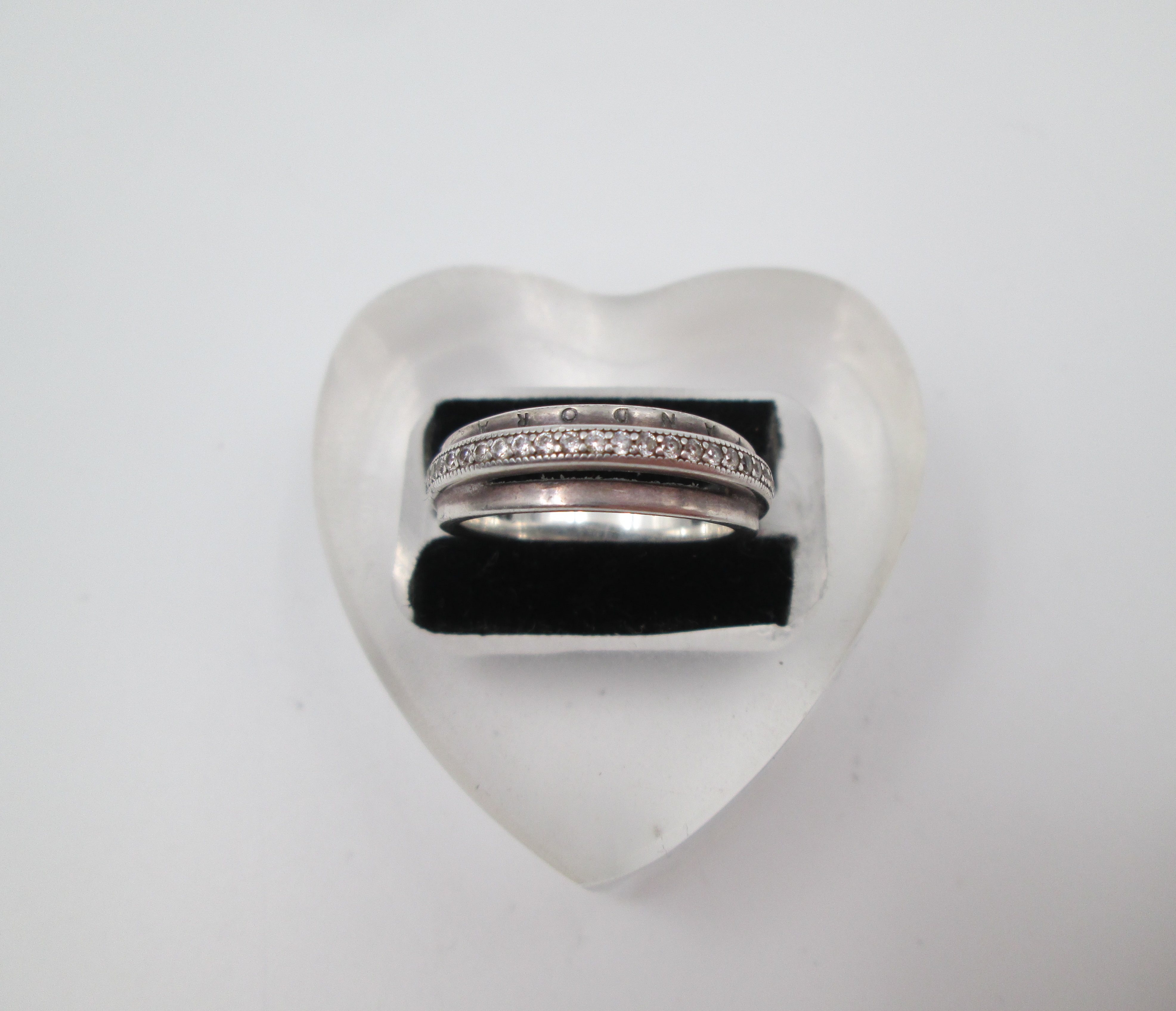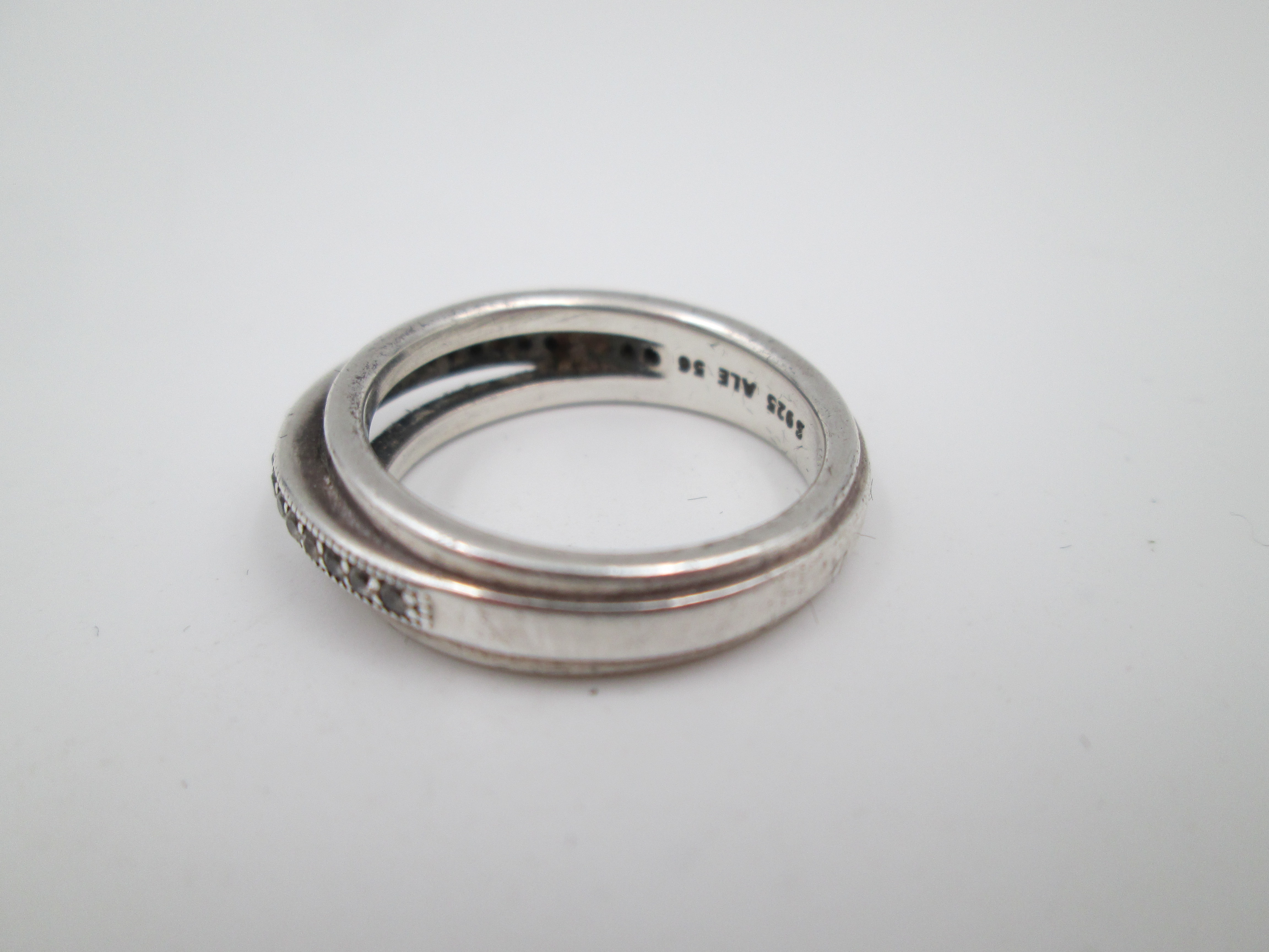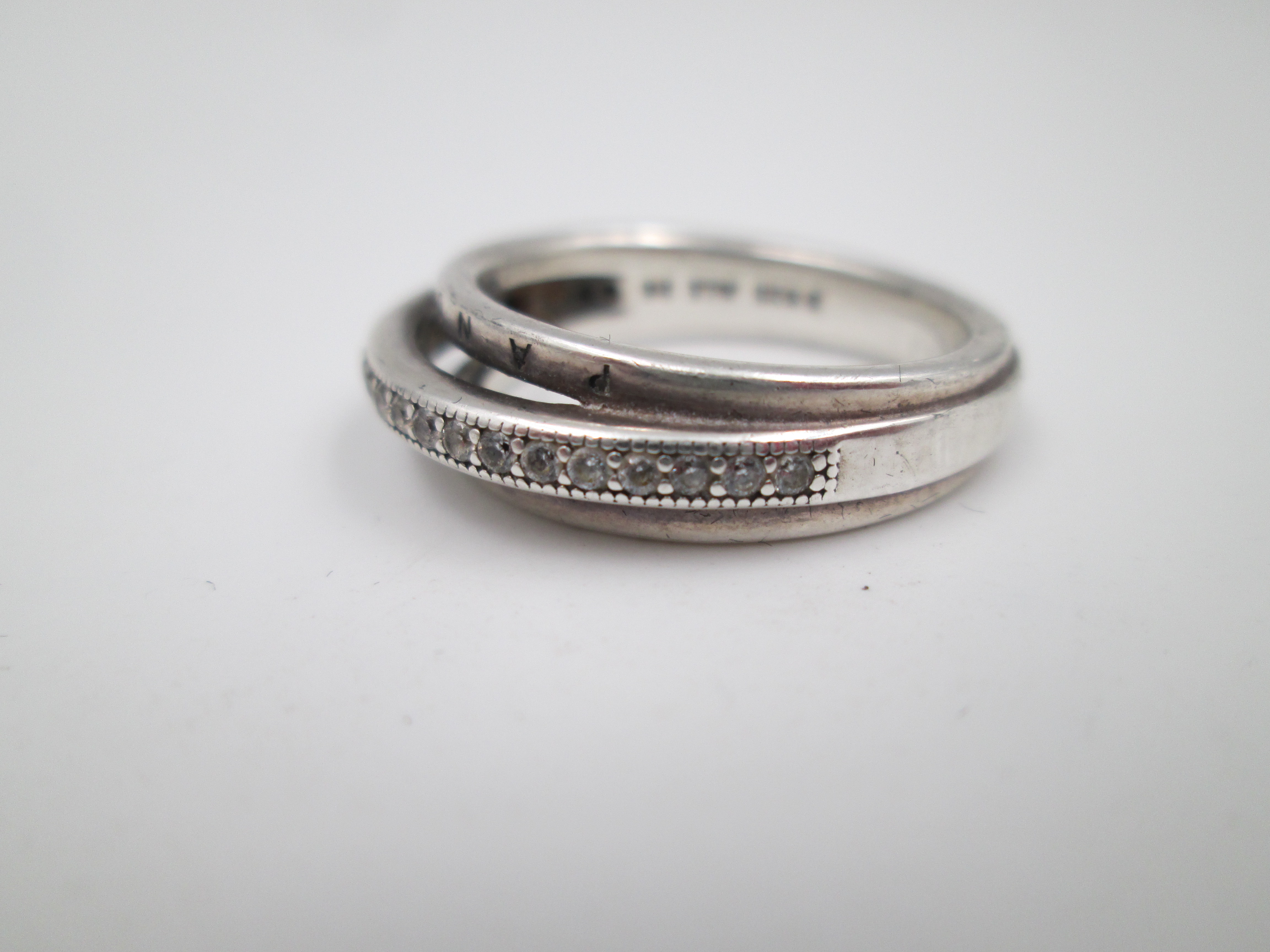 Sortija para mujer Pandora. Plata de ley 925 y pedrería blanca. Dinamarca. 2000
