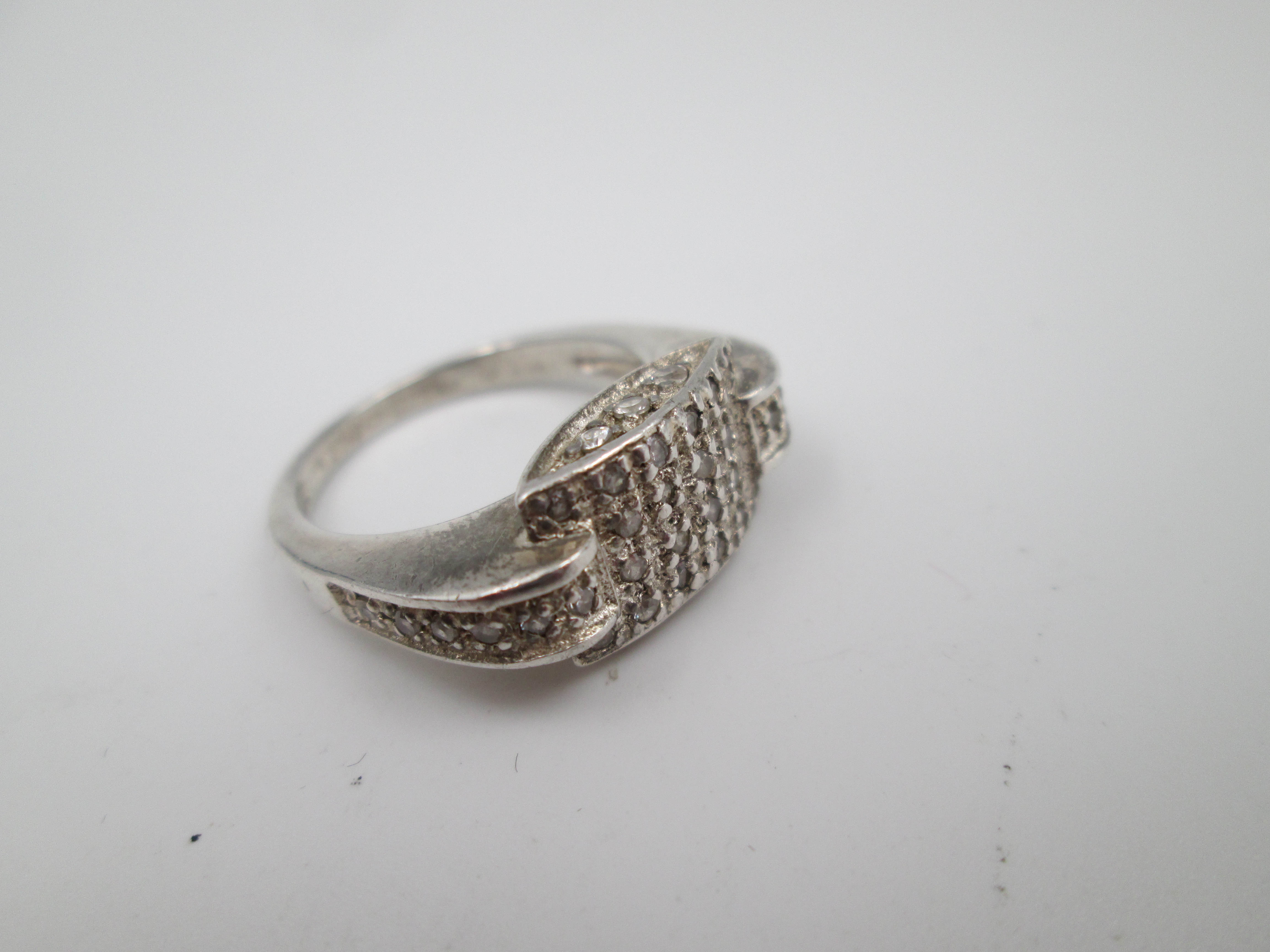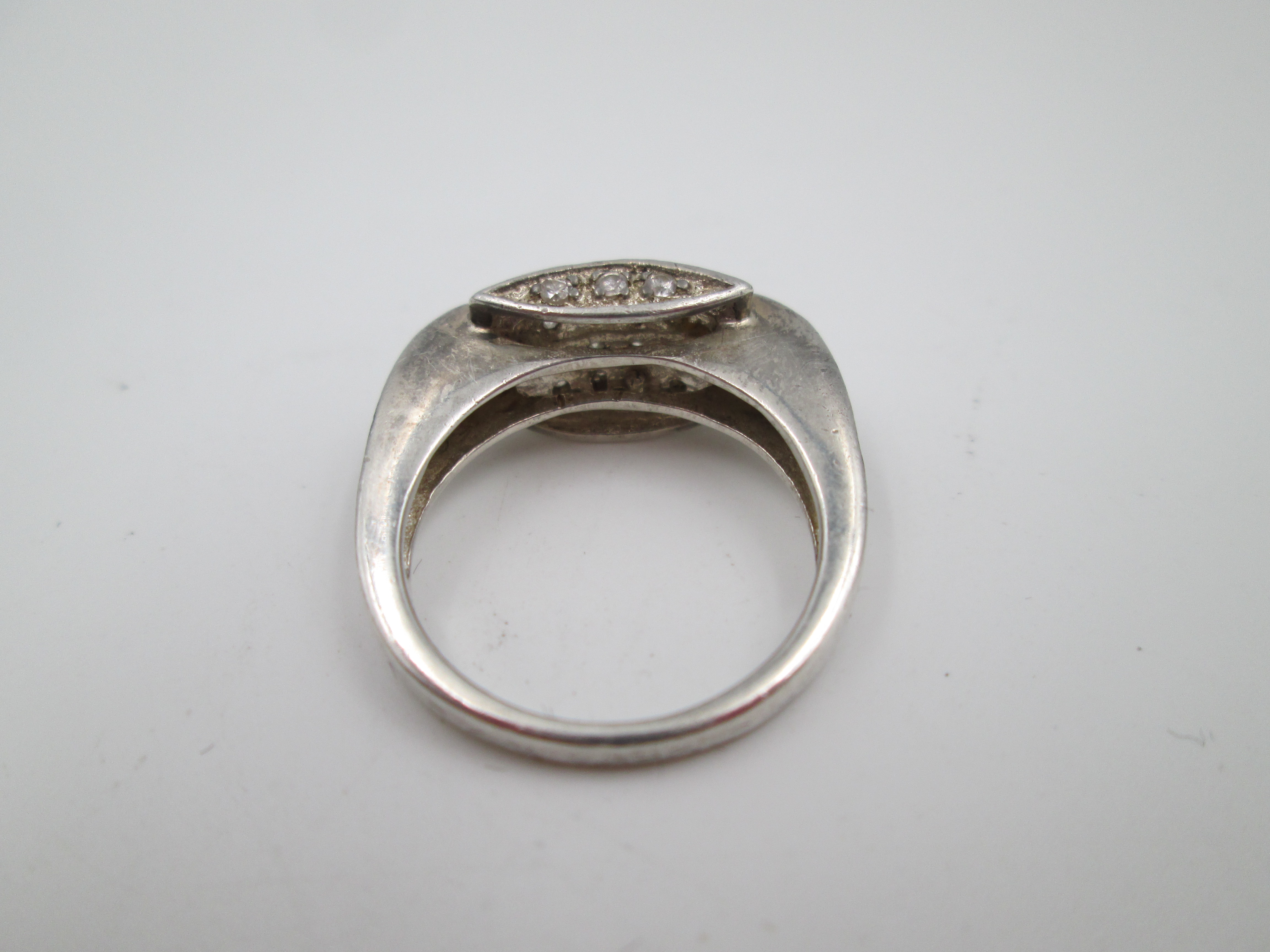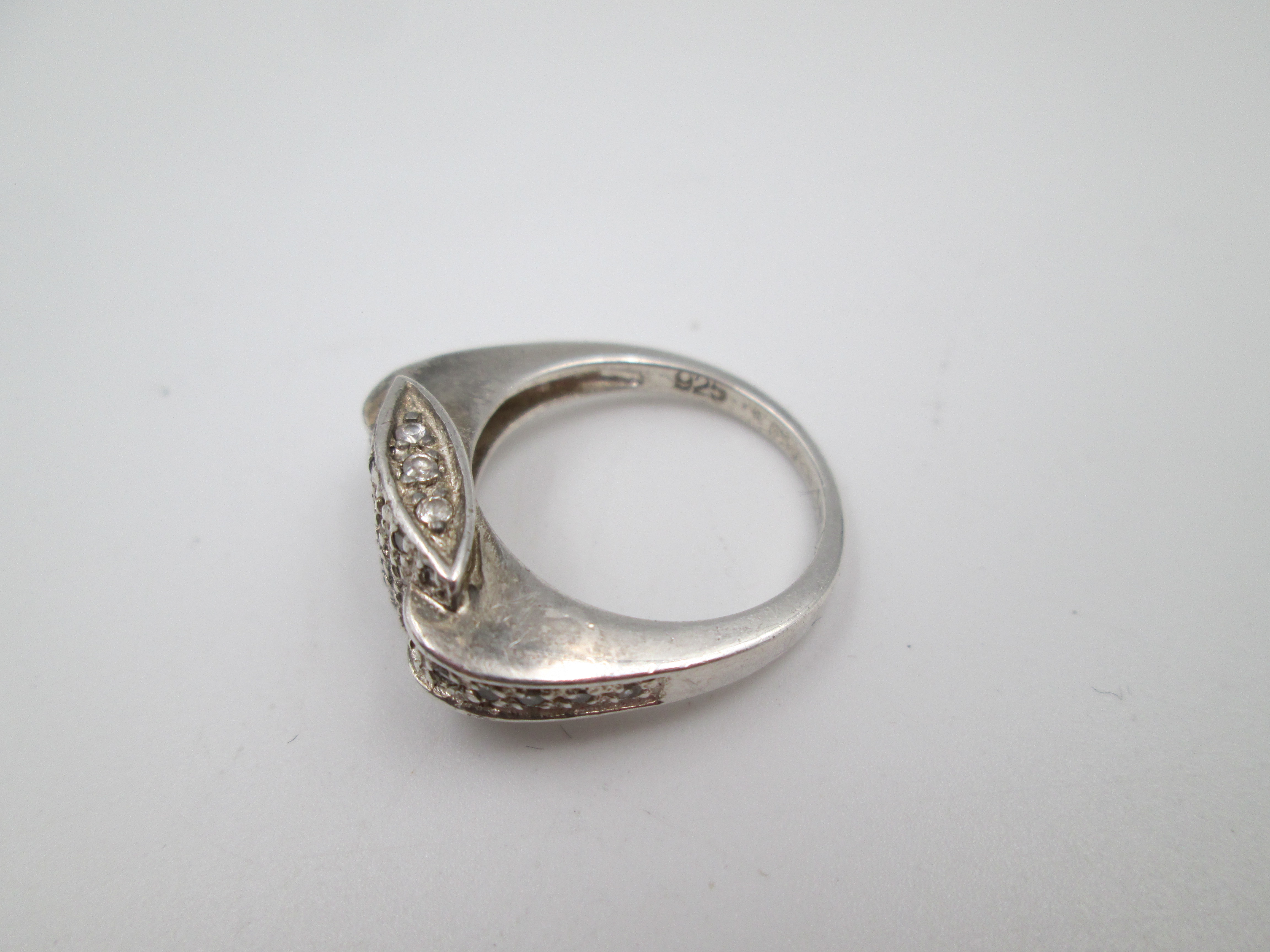 Sortija para mujer. Plata de ley 925 y adornos de pedrería blanca. Europa. 1990