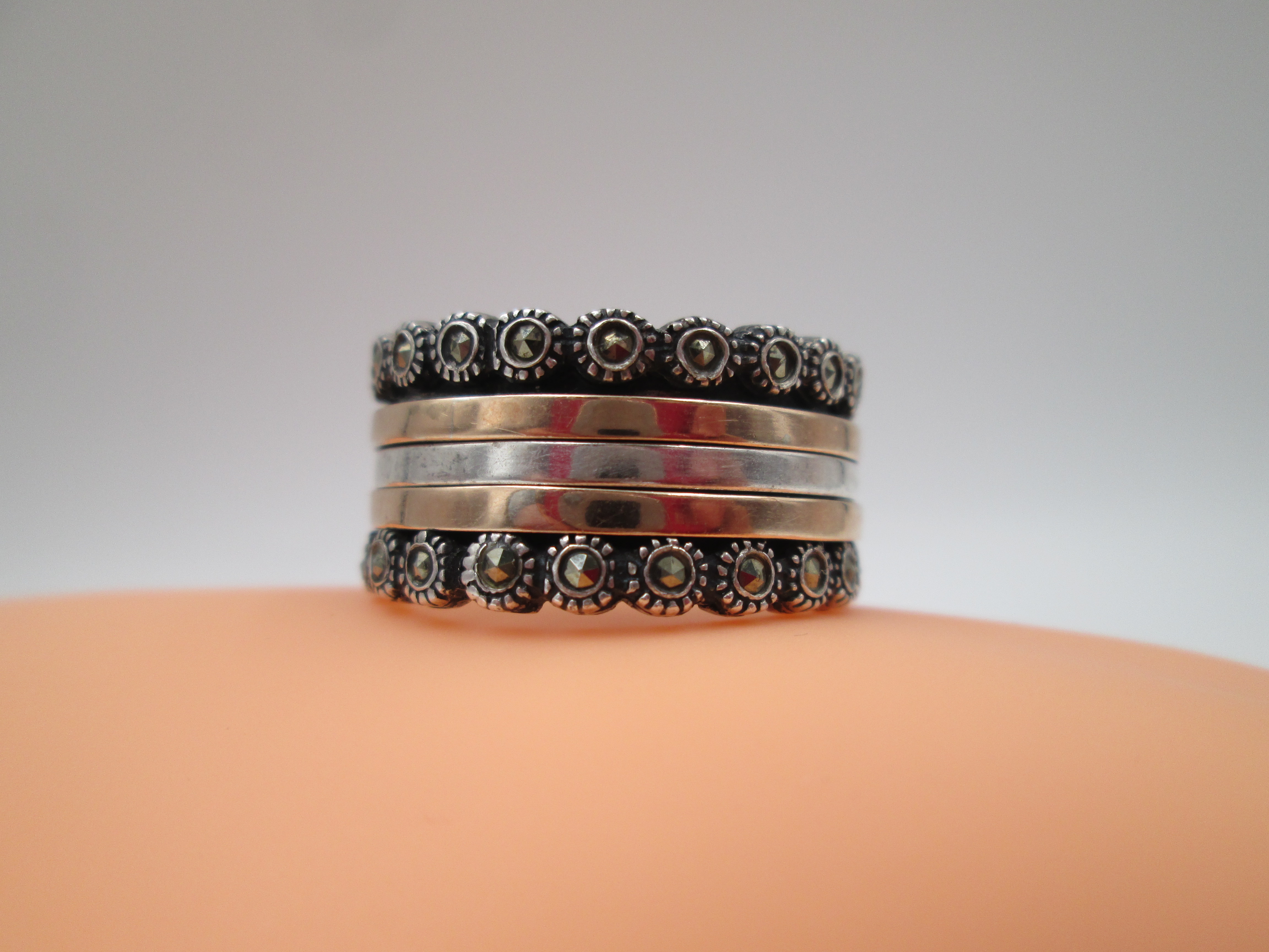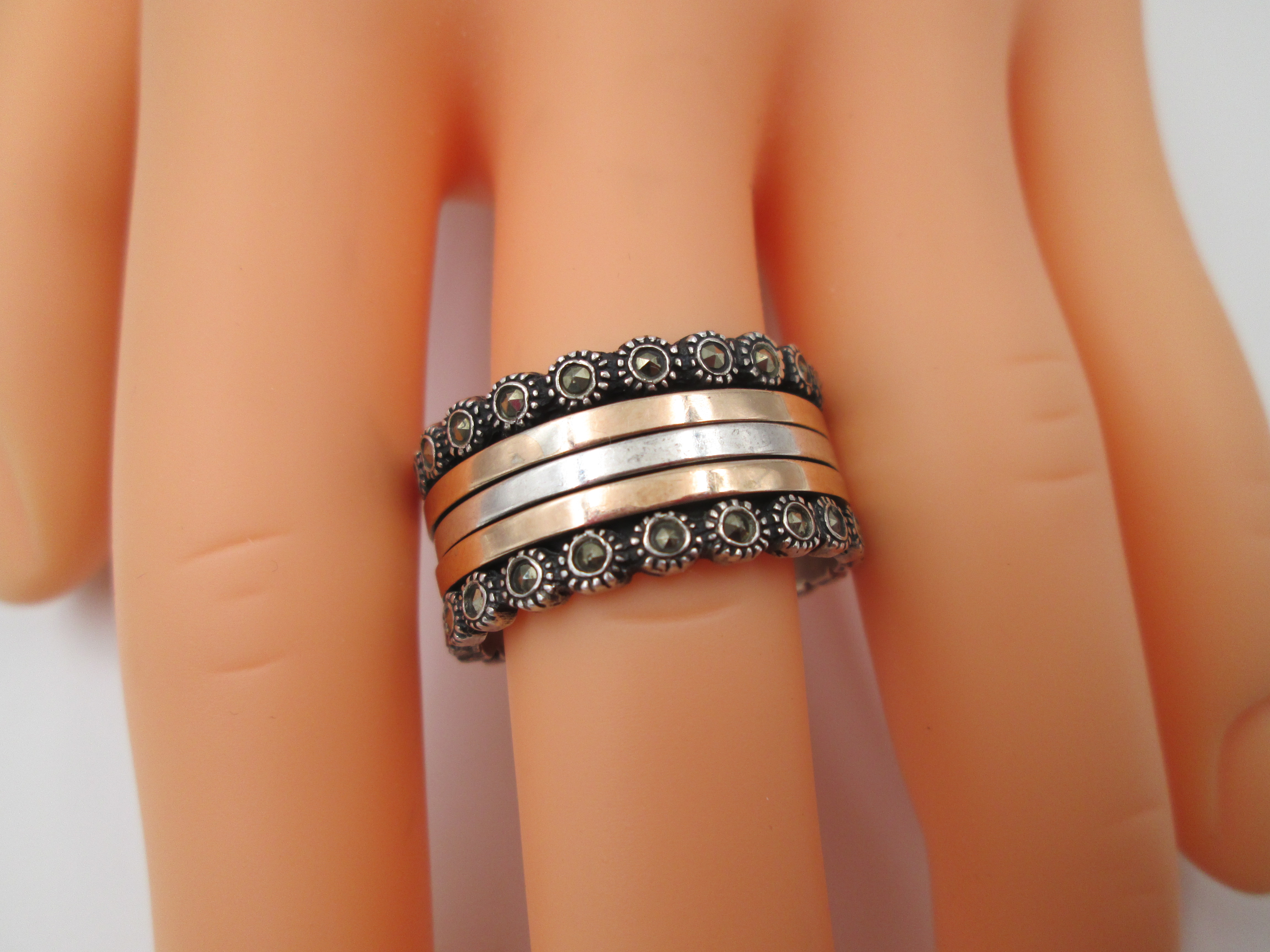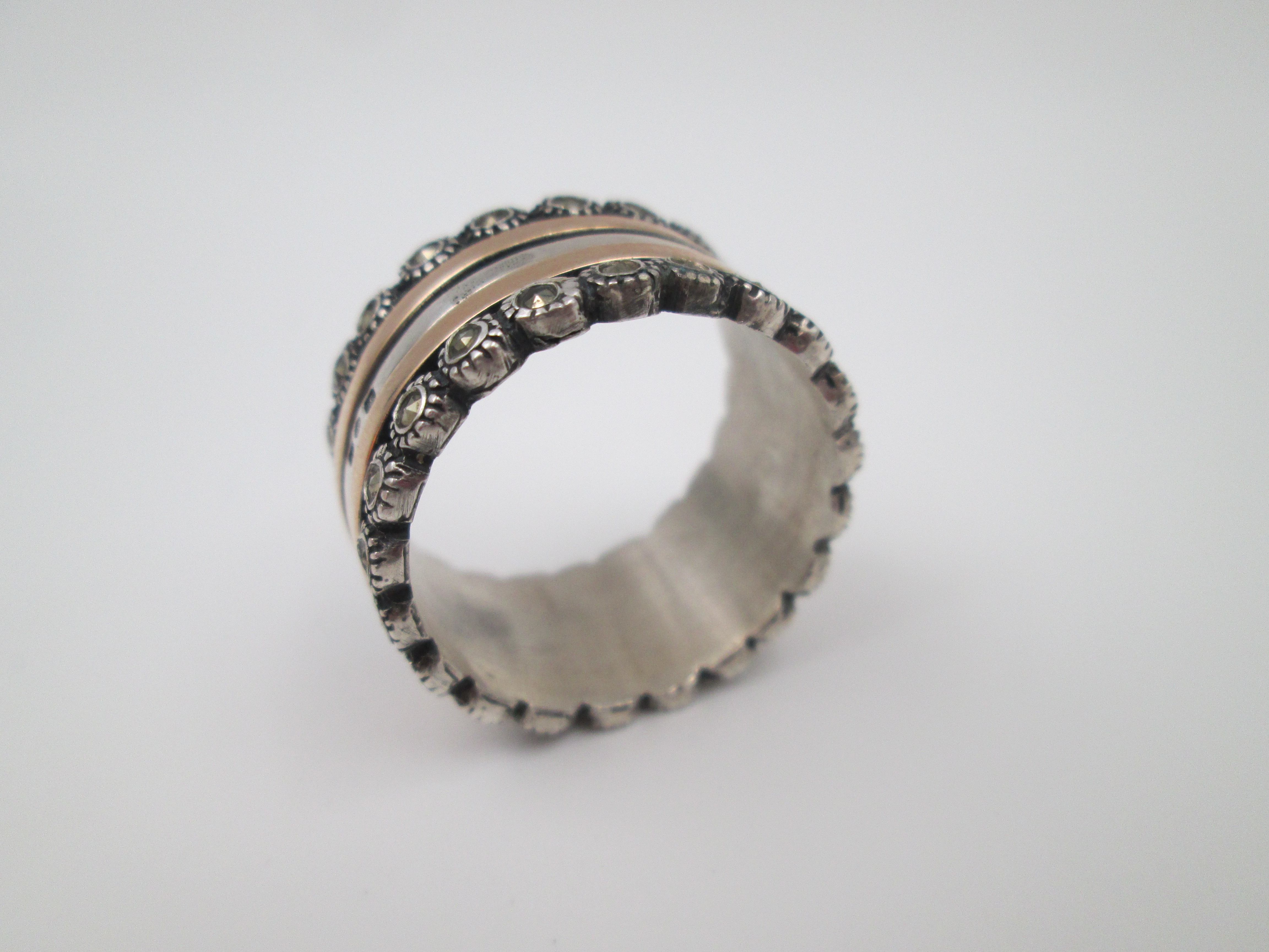 Sortija unisex giratoria. Plata de ley 925, oro rosa 9k y gemas marquesitas. Portugal