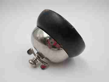Timbre de mesa / hotel / despacho. Metal plateado y madera. Cuerda. 1950