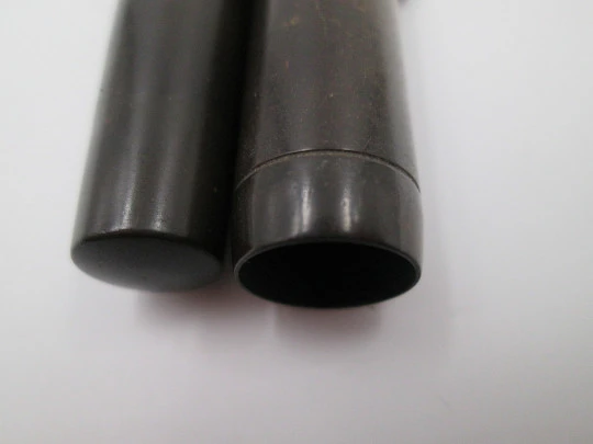 La pluma viene realizada en ebonita negra y trabaja por sistema de palanca lateral.
